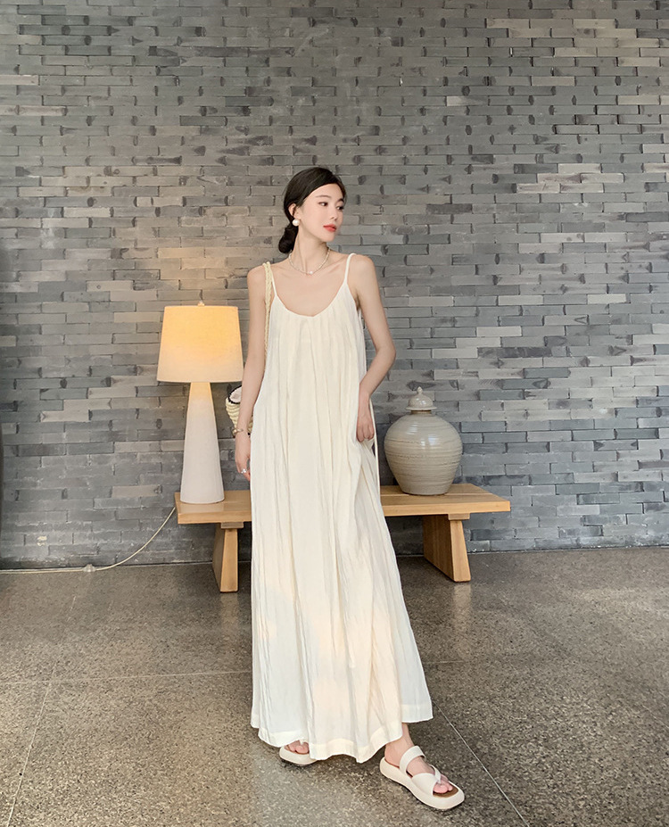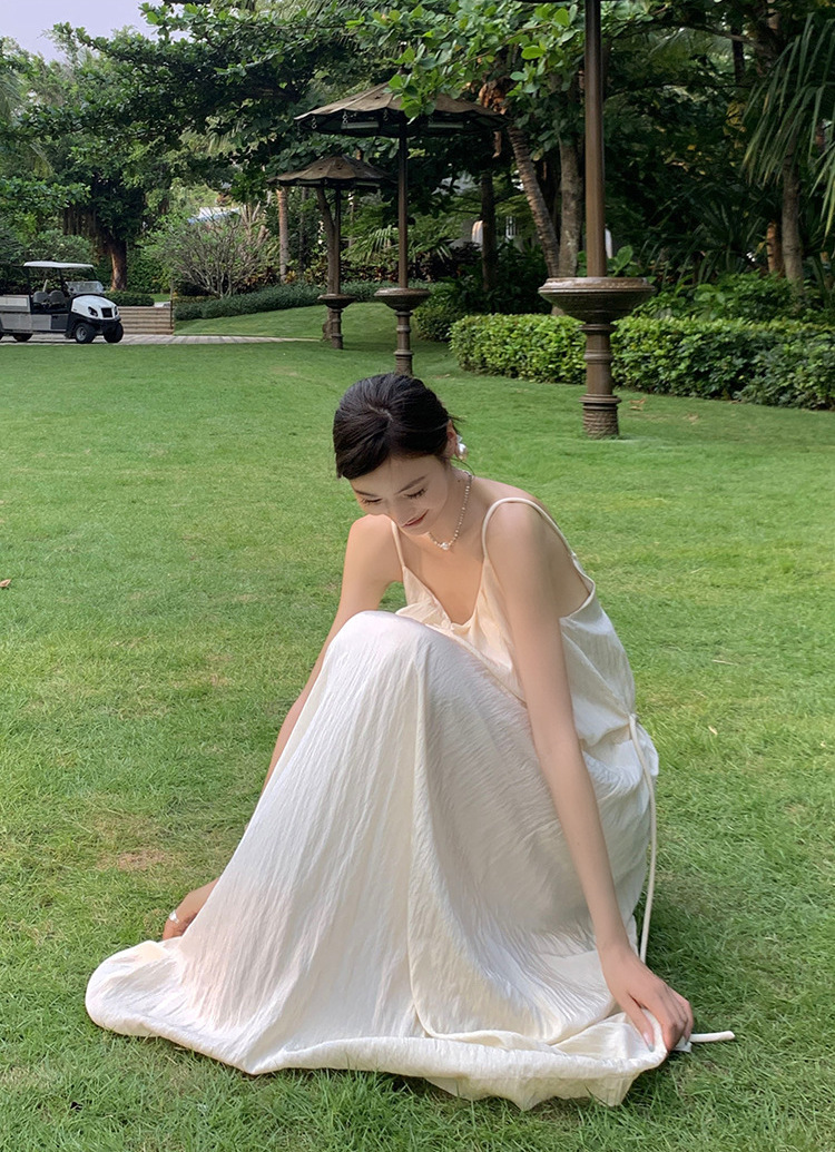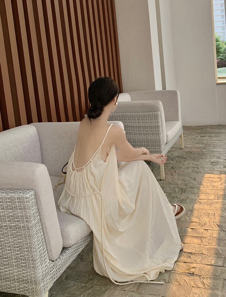 優雅宜人的長洋裝,背部設計大開放式,給人綻放自我的自由感