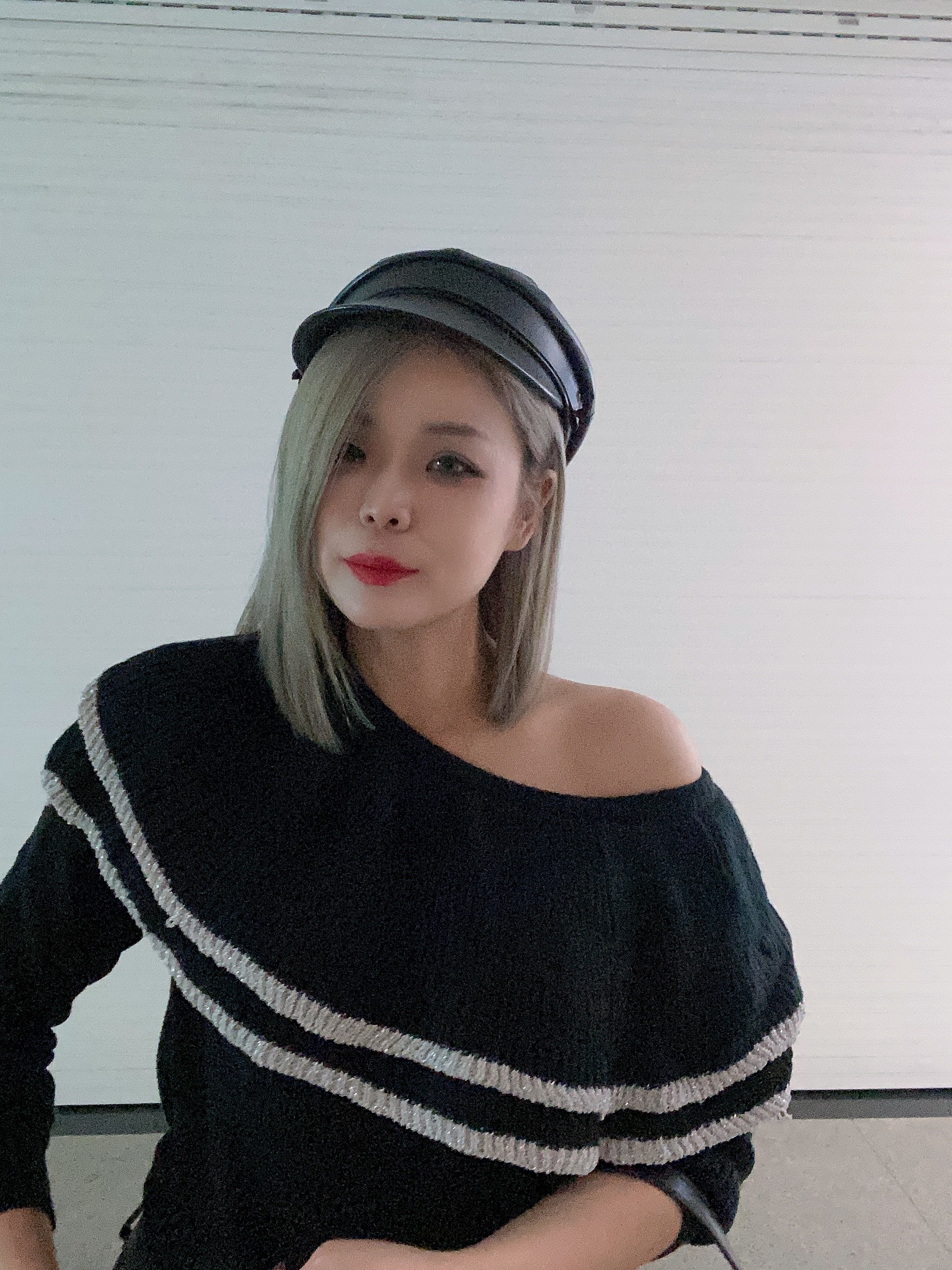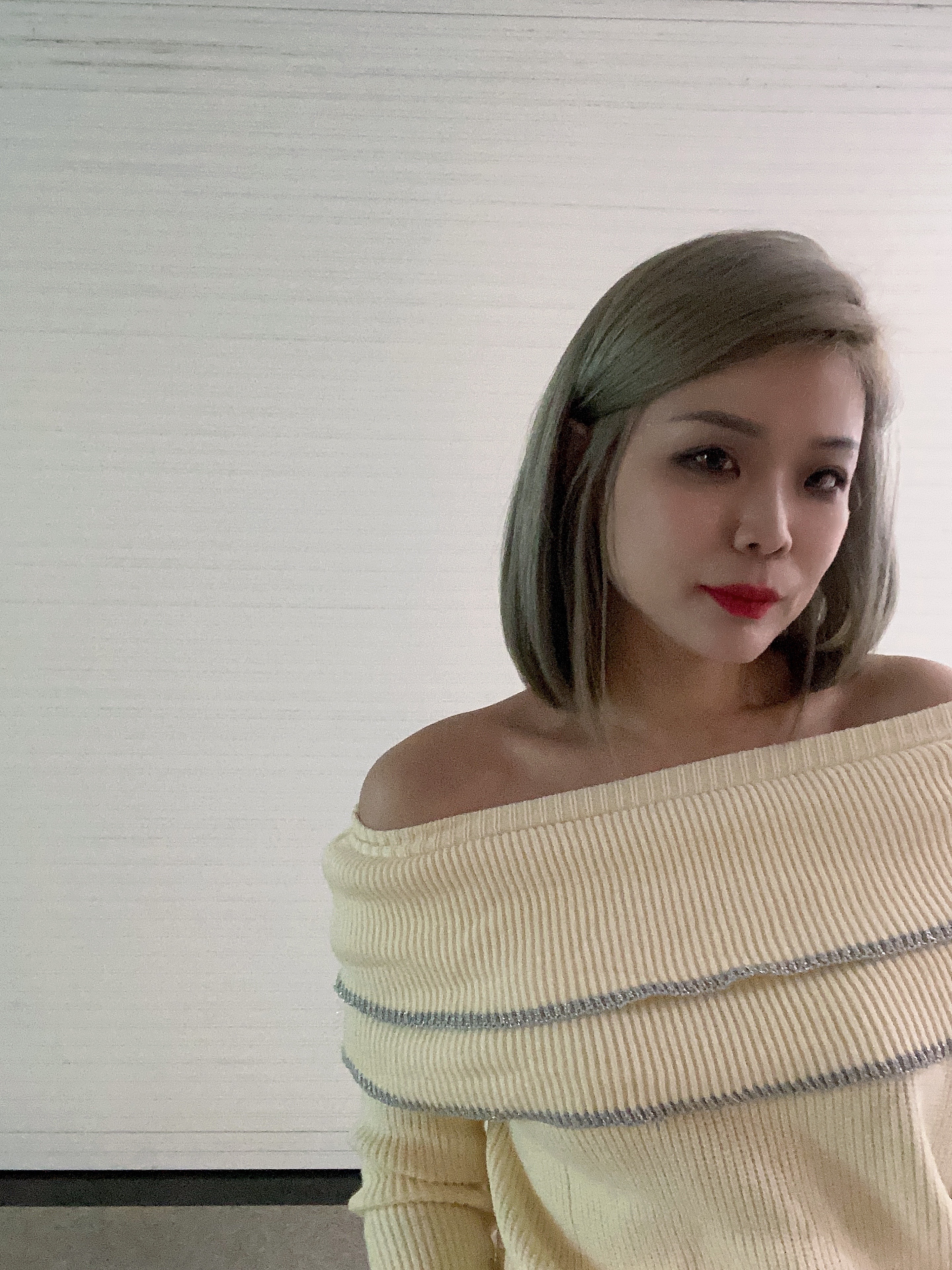 一字領露肩設計,展現性感迷人的線條。
