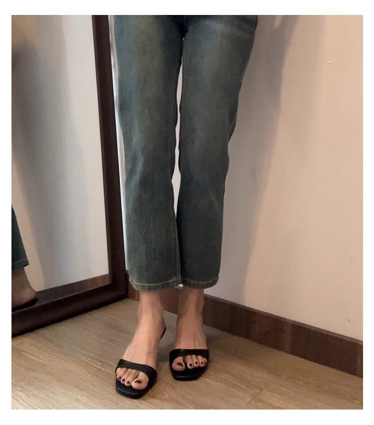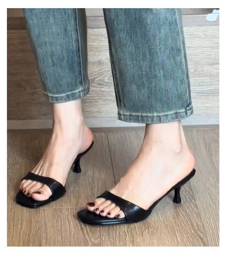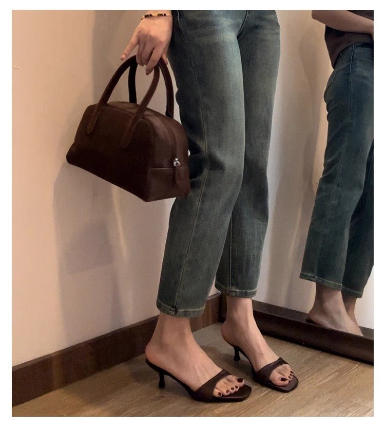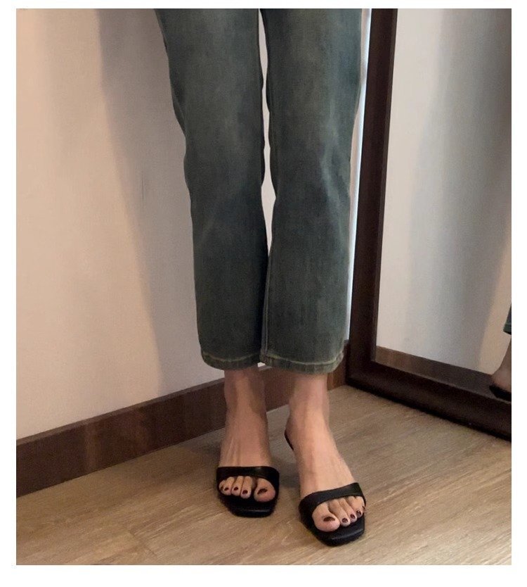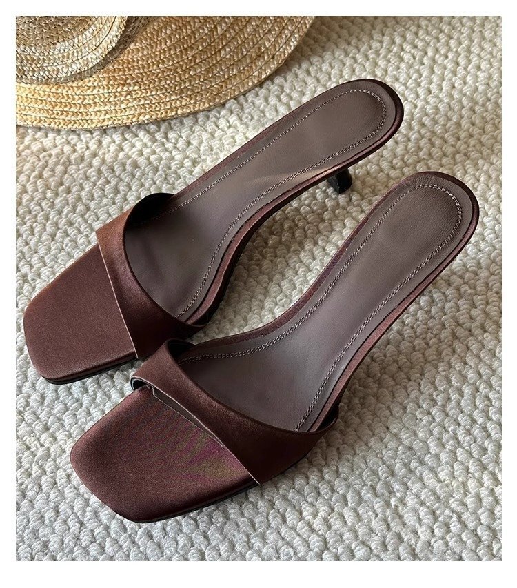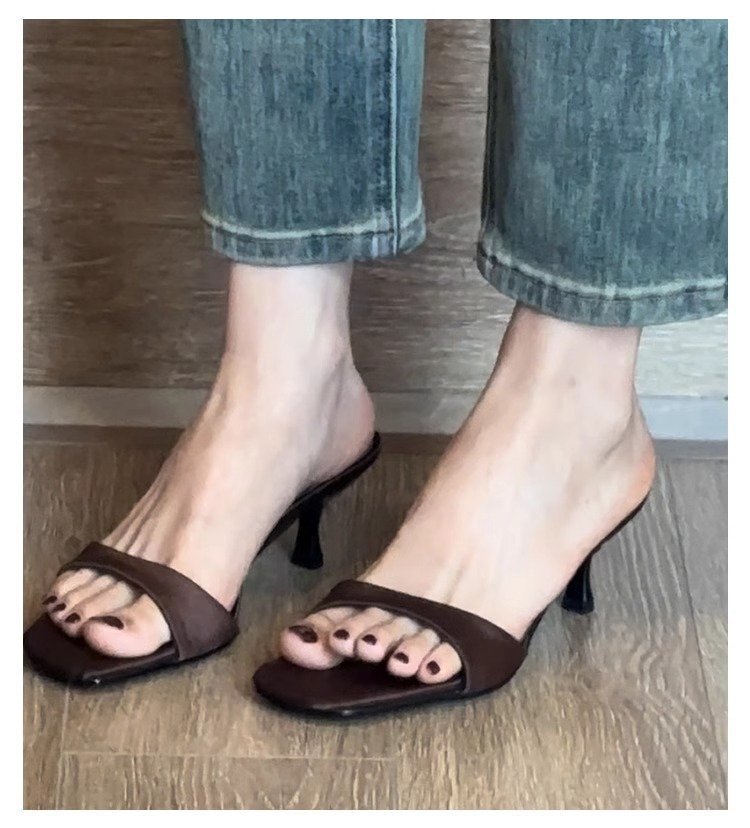 方頭低跟 怎麼穿都氣質跟拖(34-39)(黑皮/咖絲)