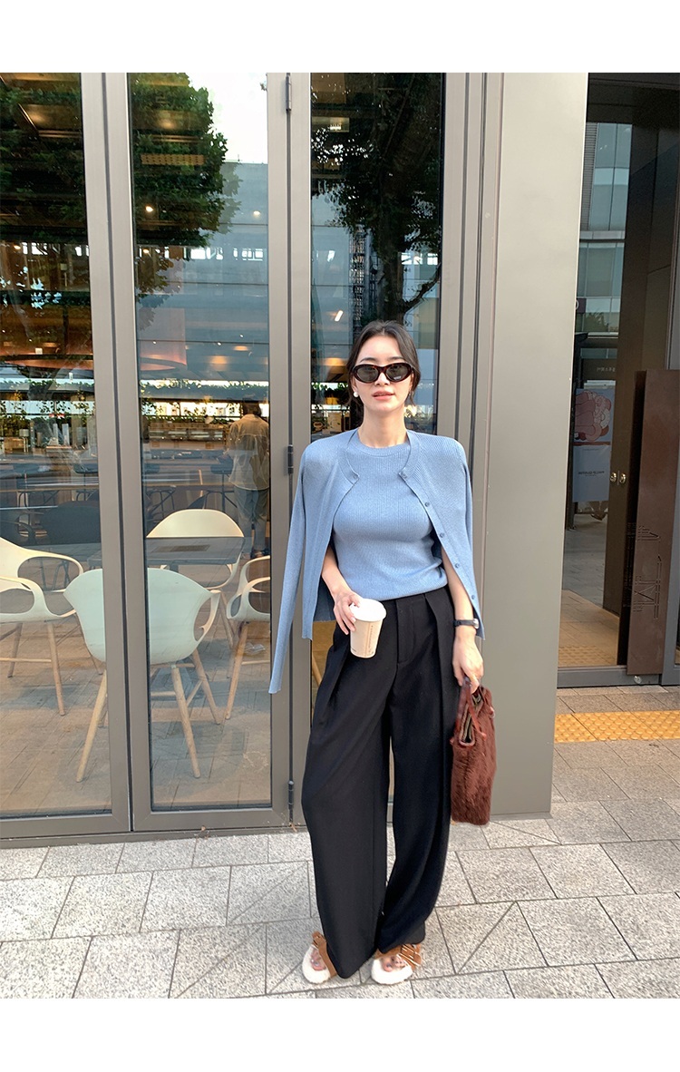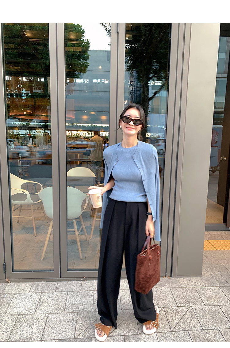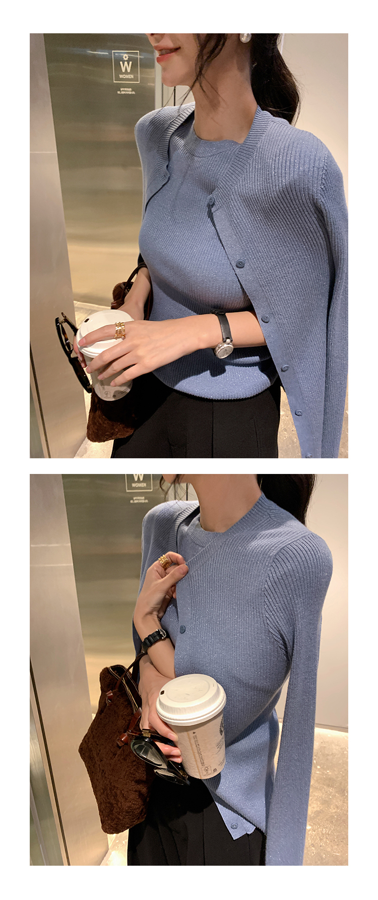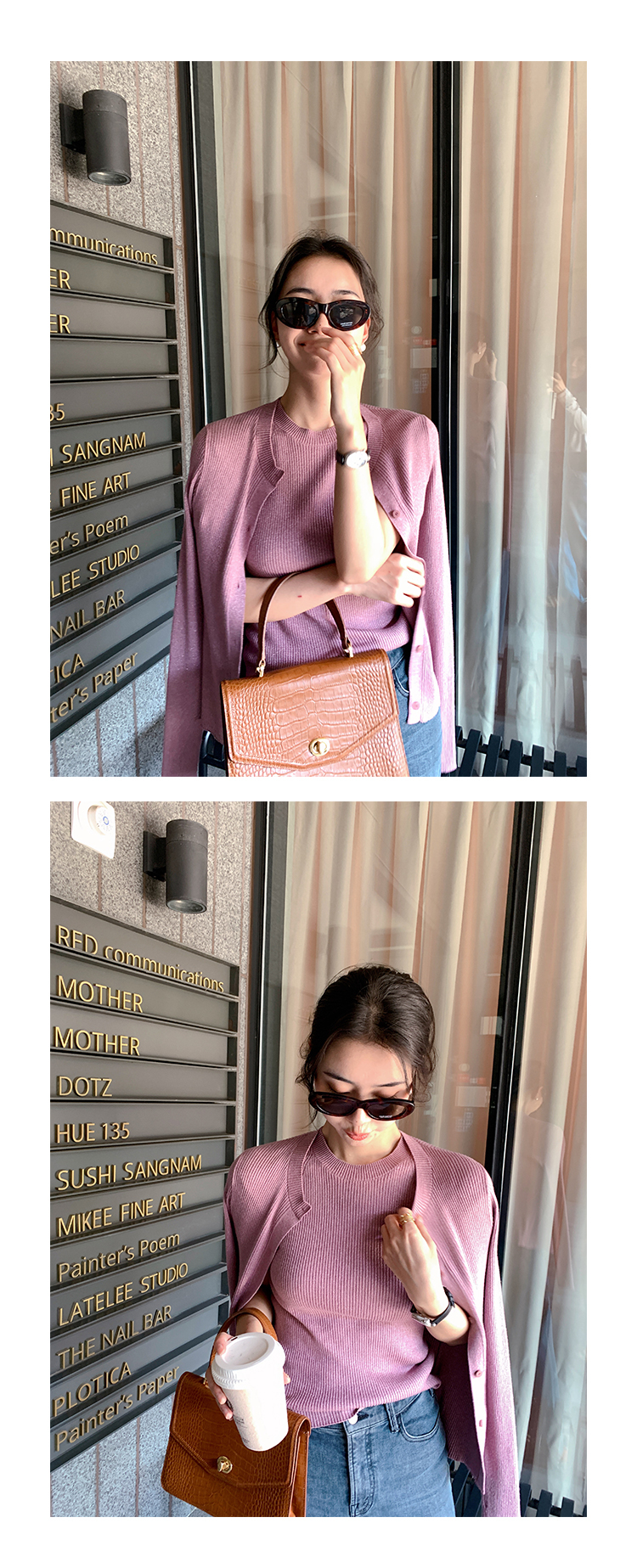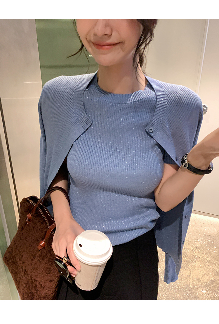 挺版針織+外套(2件組)(粉/藍/米)