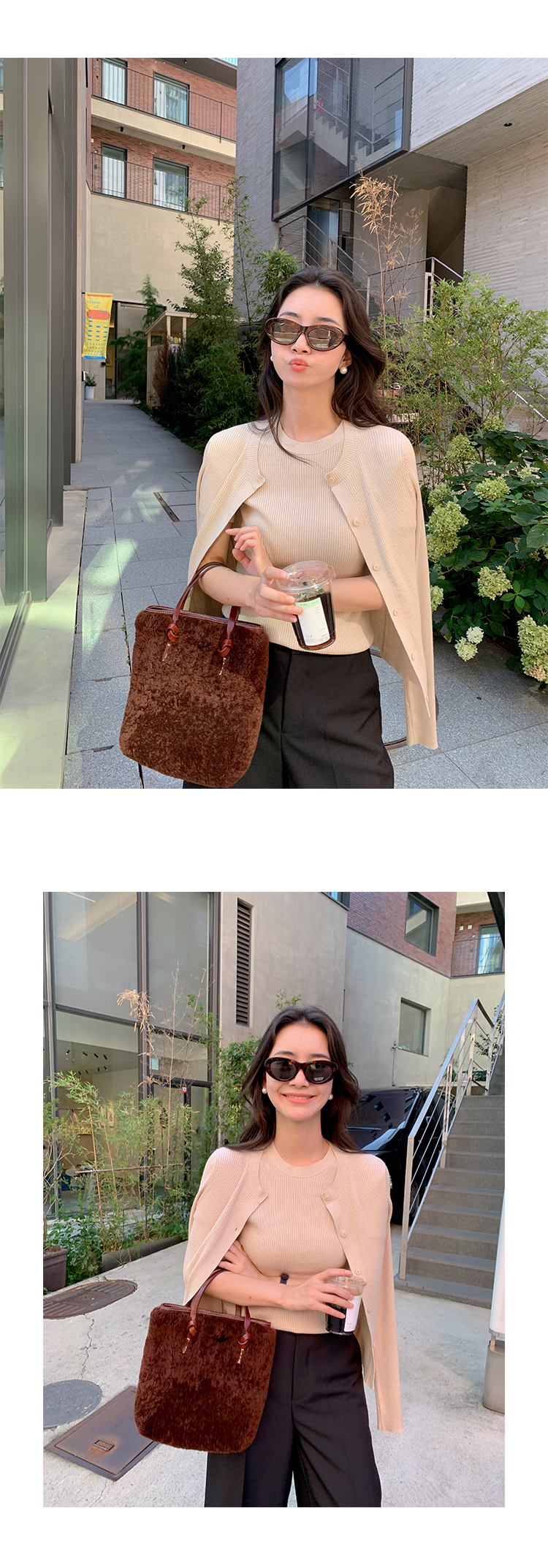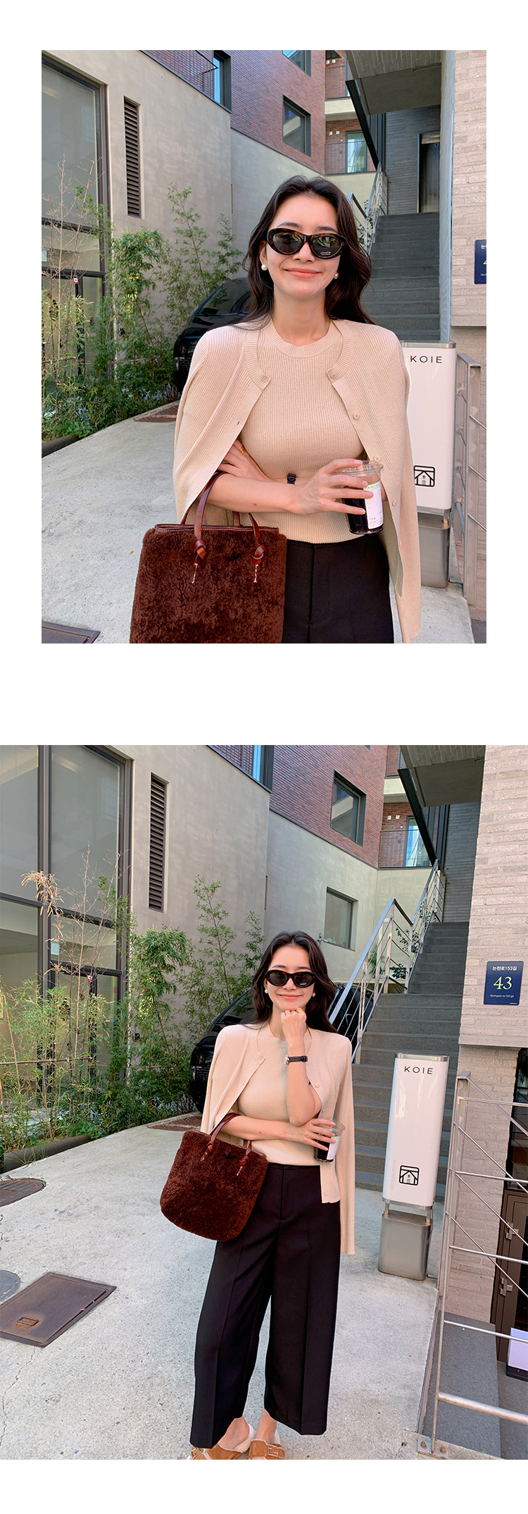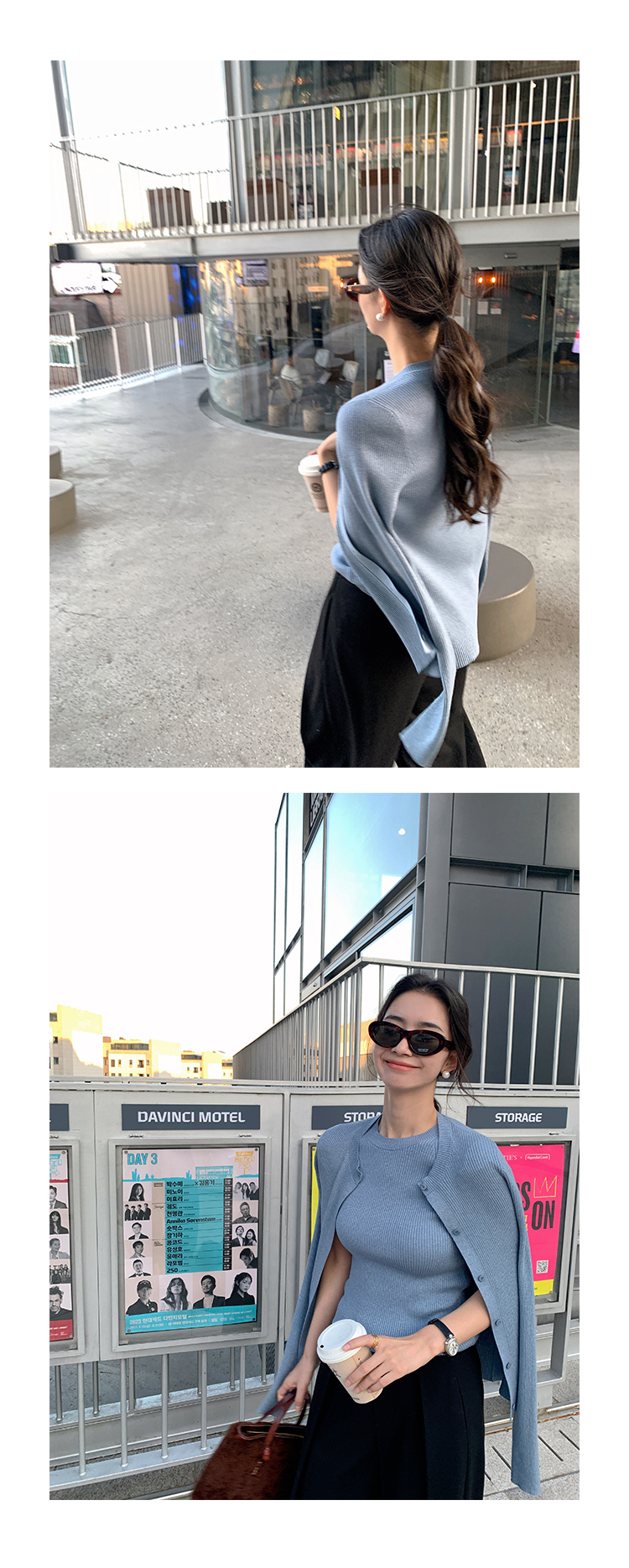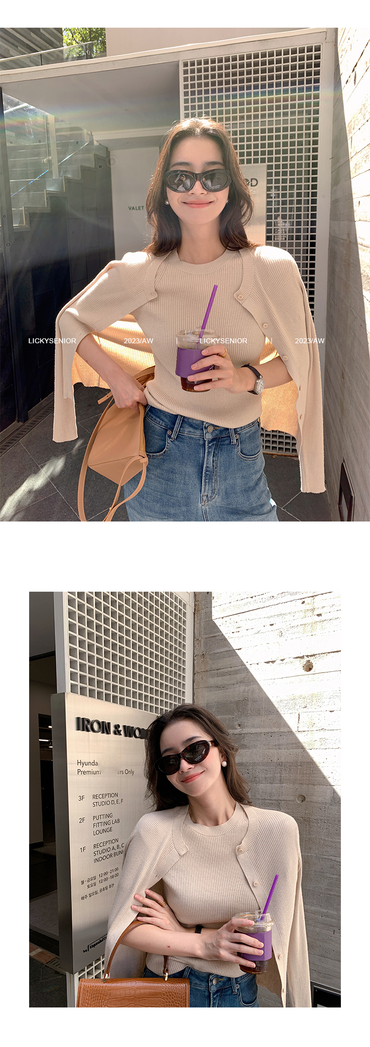 挺版針織+外套(2件組)(粉/藍/米)