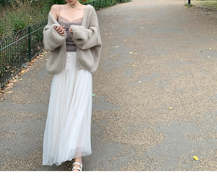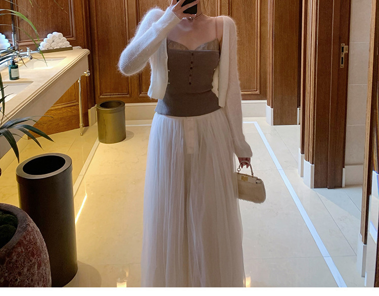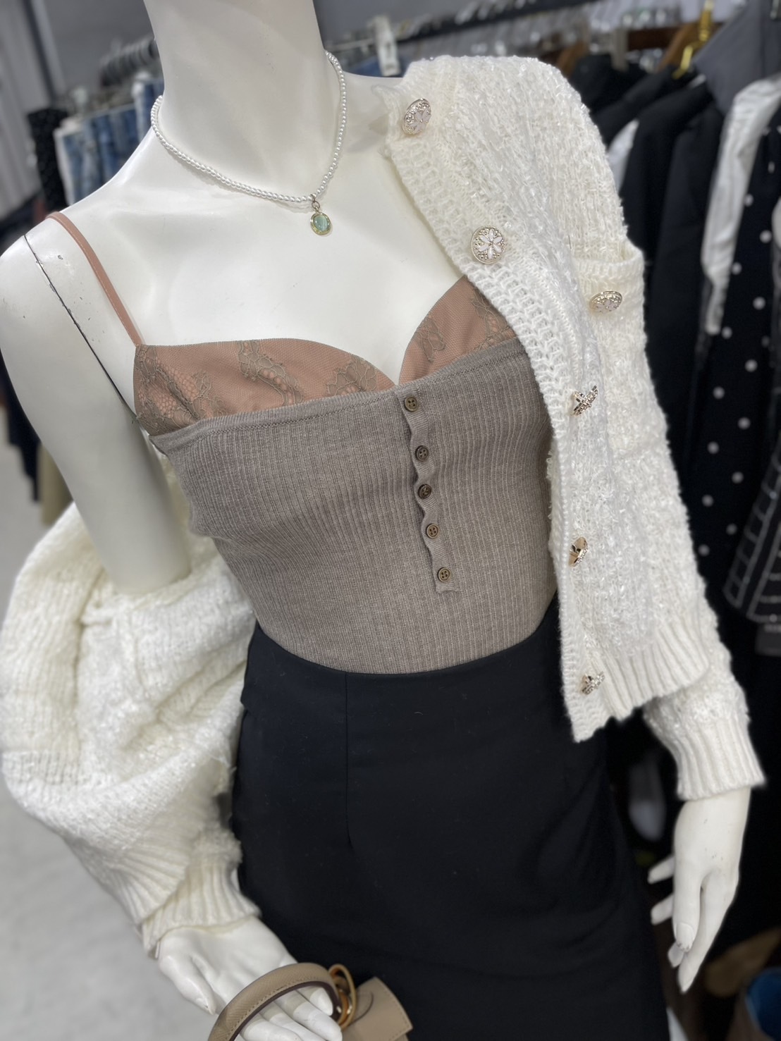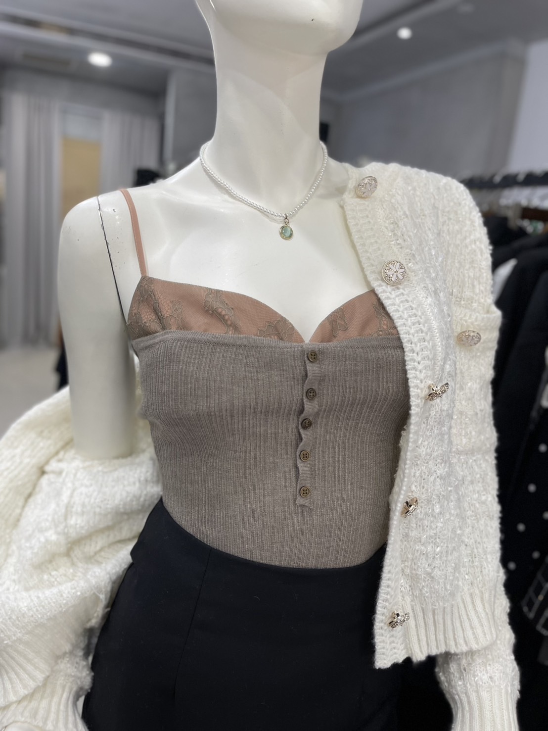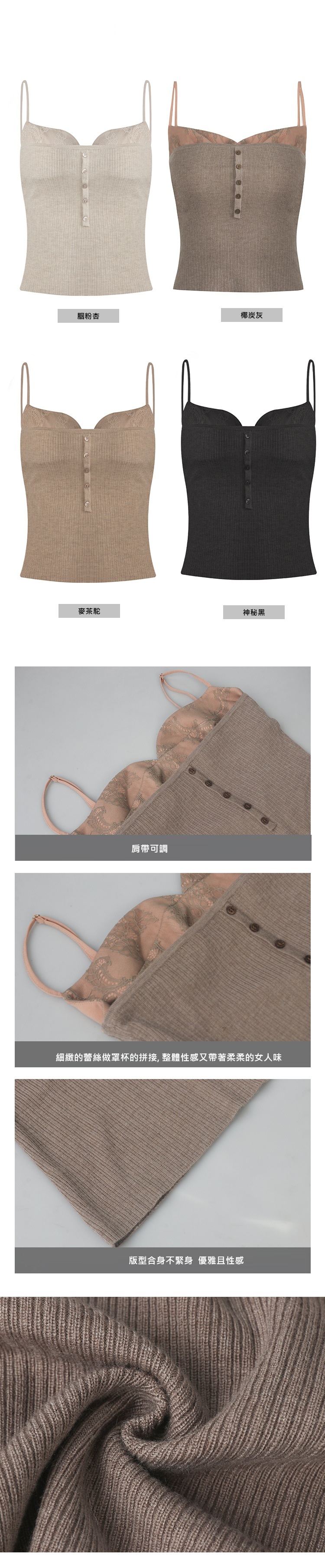 慵懶性感 蕾絲羊毛細肩帶上衣