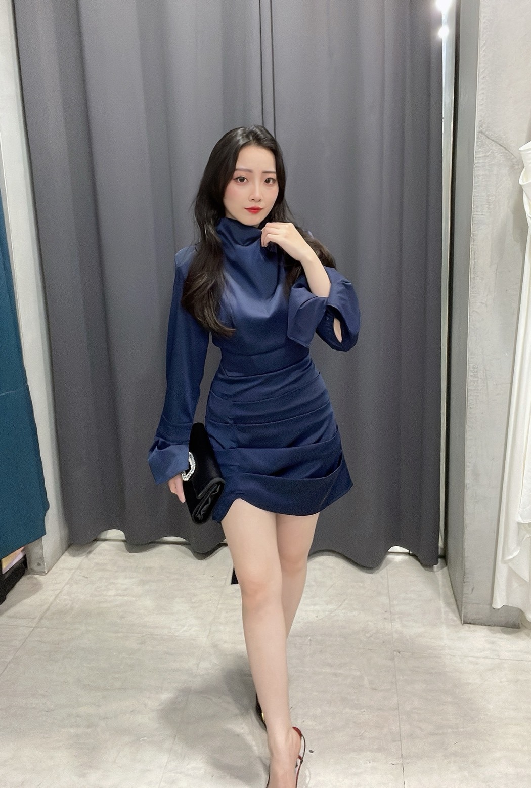 立體剪裁 綢緞飄帶修身洋裝