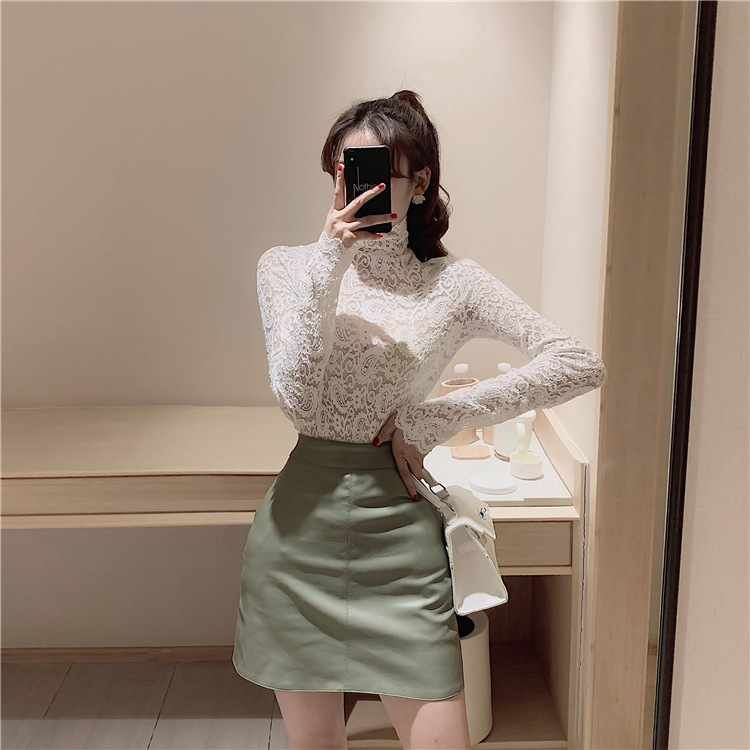 親膚柔軟 彈性蕾絲簍空上衣(綠/黑/白/杏)