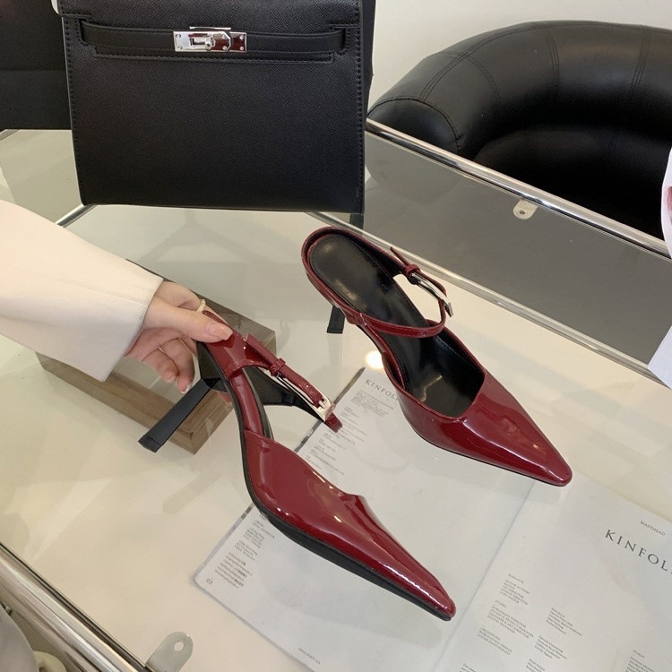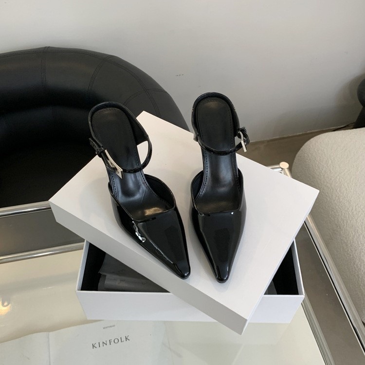 一字帶 俐落尖頭跟拖(35-40)(漆皮/緞面)