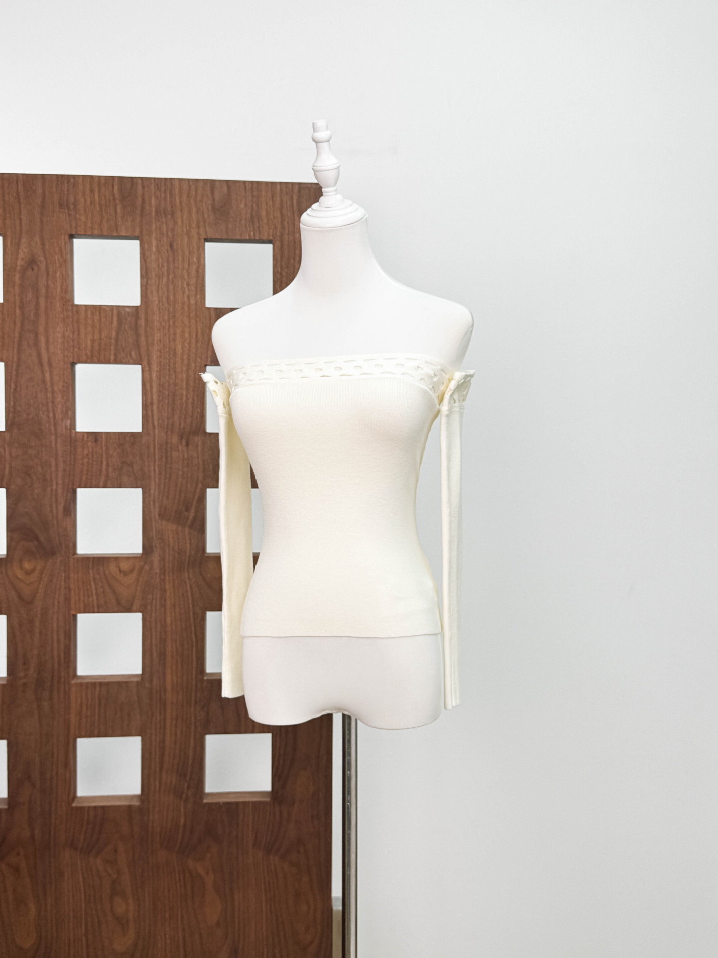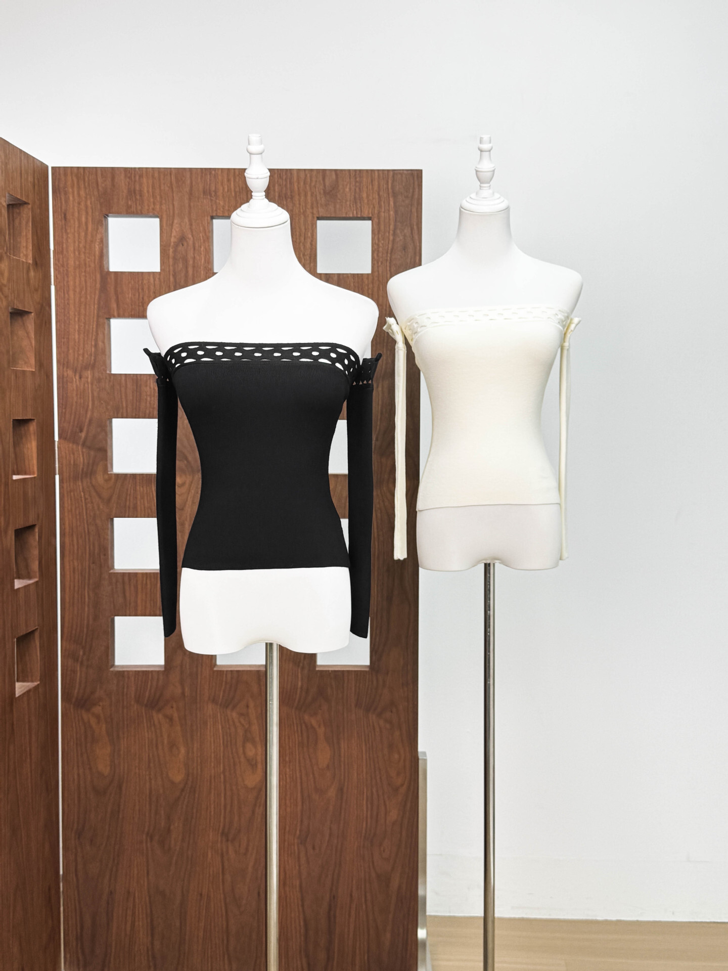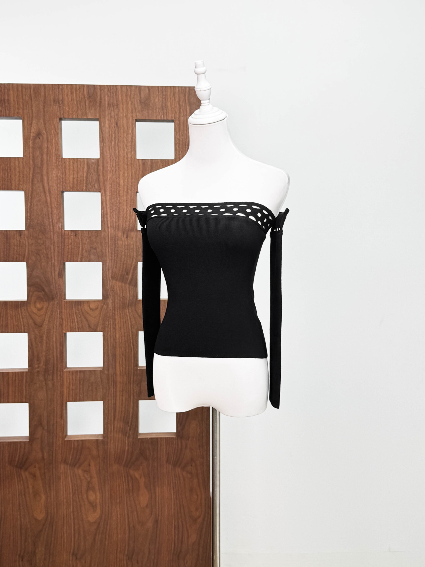 幾何簍空一字領上衣(黑/白)