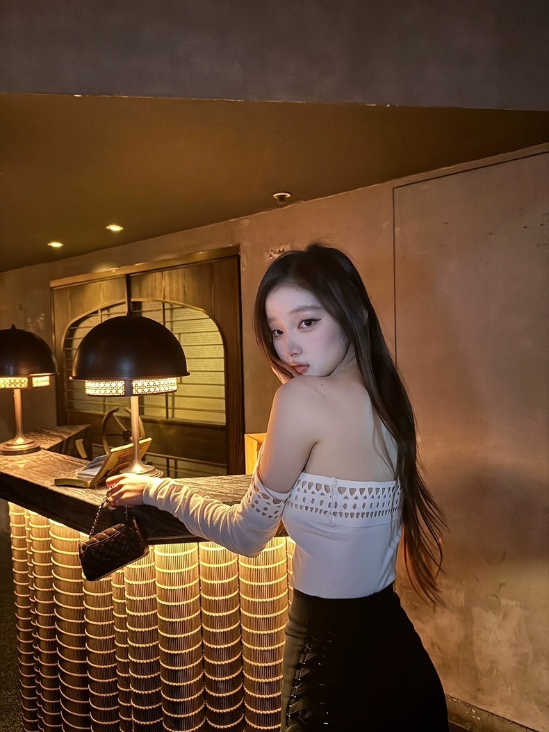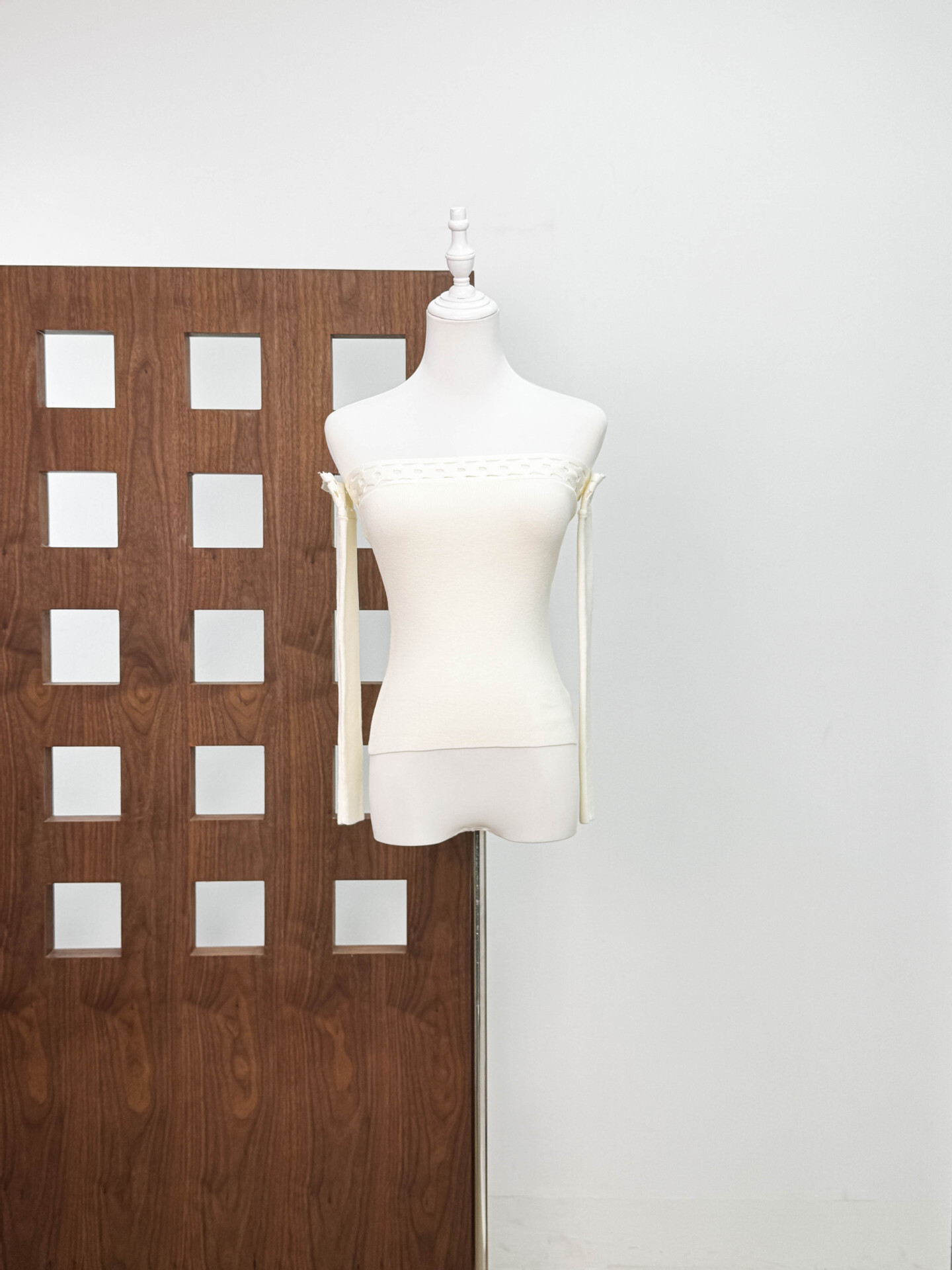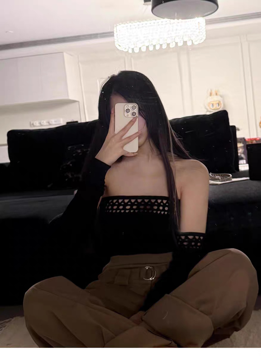 幾何簍空一字領上衣(黑/白)