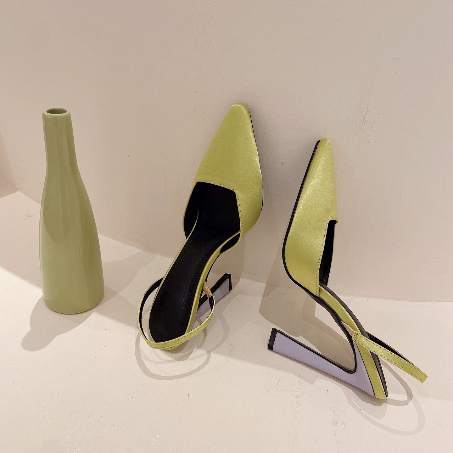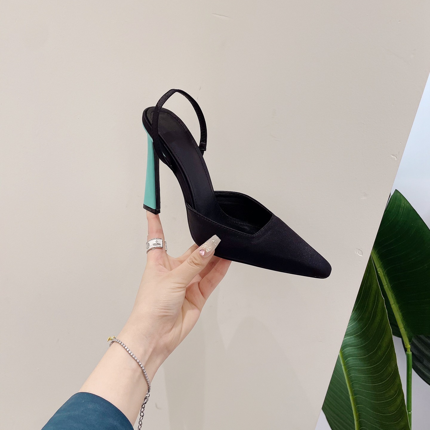 獨特的撞色設計,引人注目。別緻的緞面材質質感優越,穿著舒適。高挑的鞋跟增添魅力,是晚宴或正式場合的絕佳之選。多尺碼選擇適合不同腳型,百搭設計能輕易搭配多種服飾。