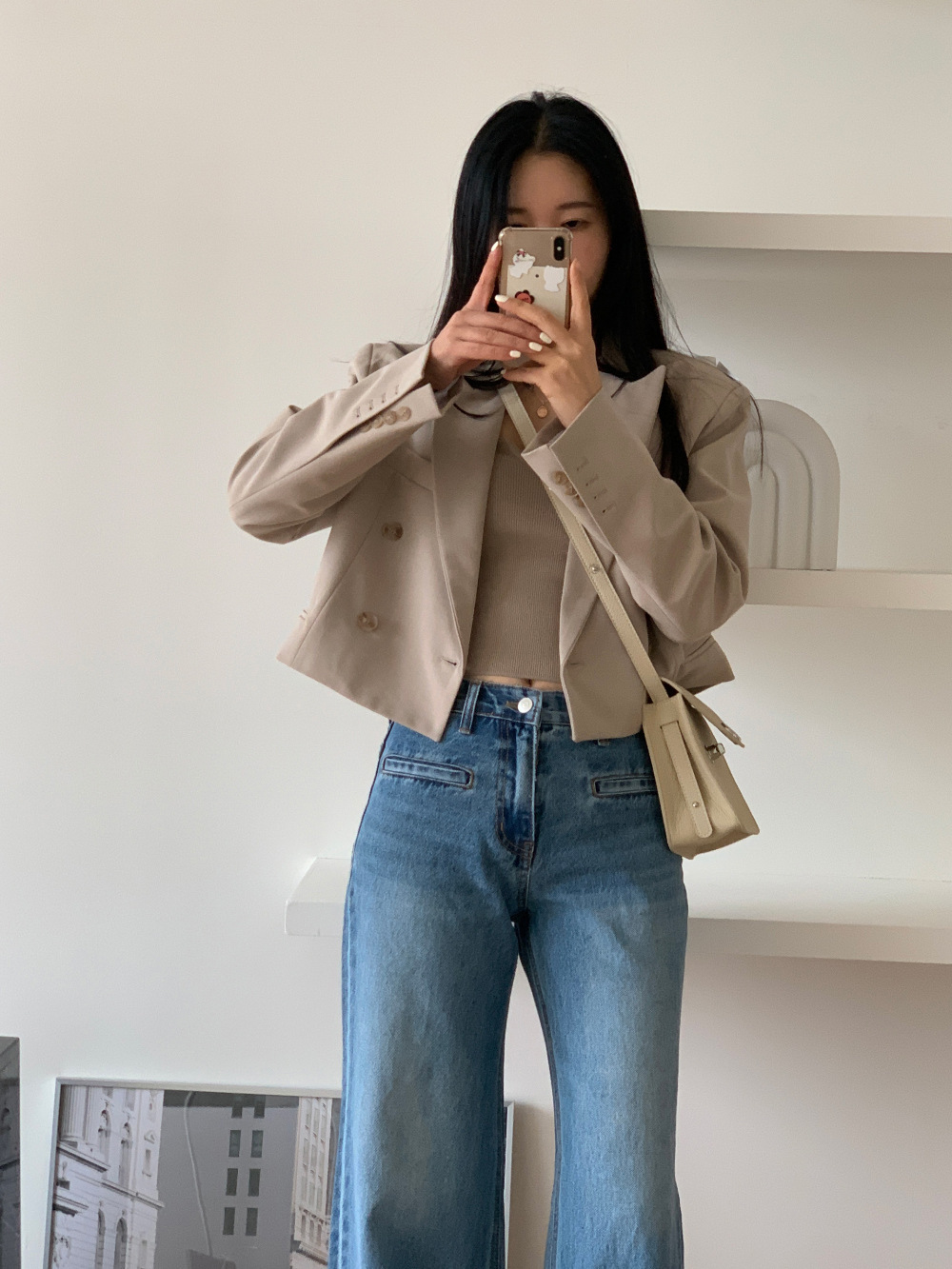 前口袋 高腰直筒牛仔褲