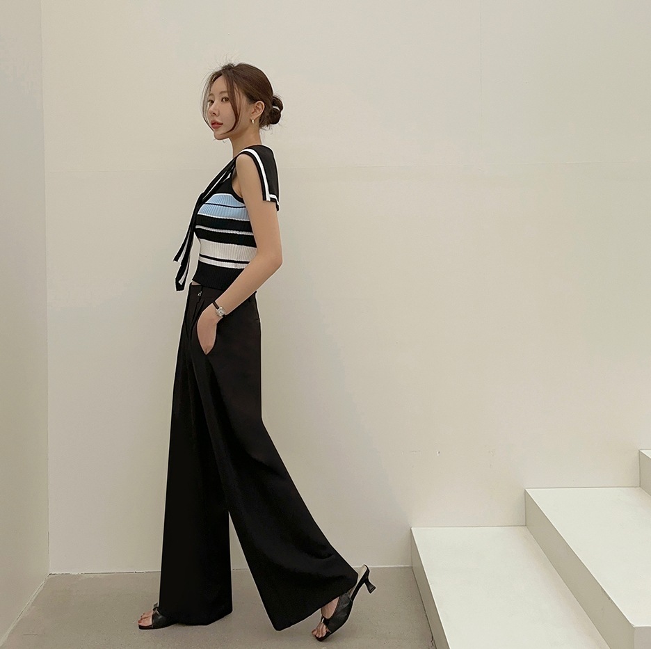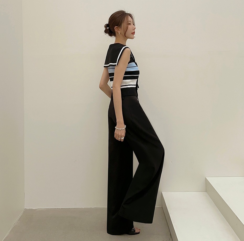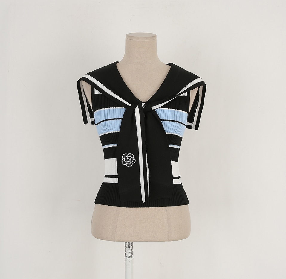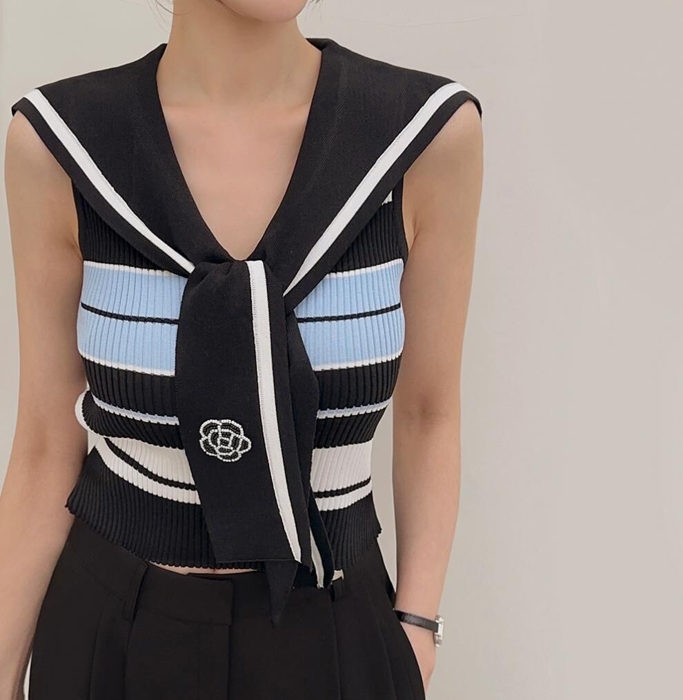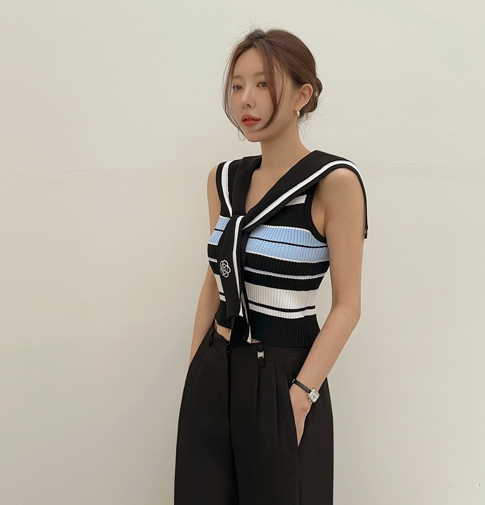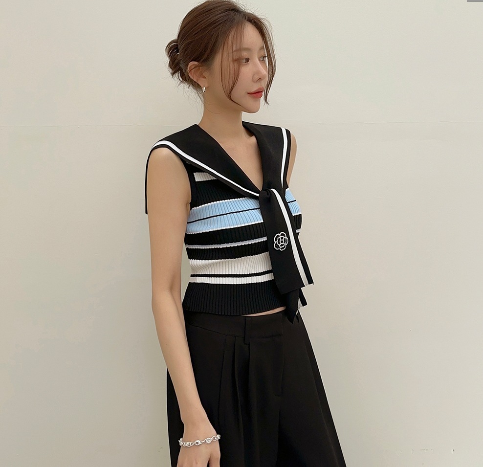 韓國高貨 海軍領冰絲上衣
