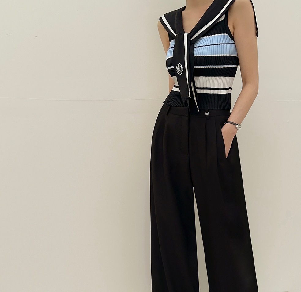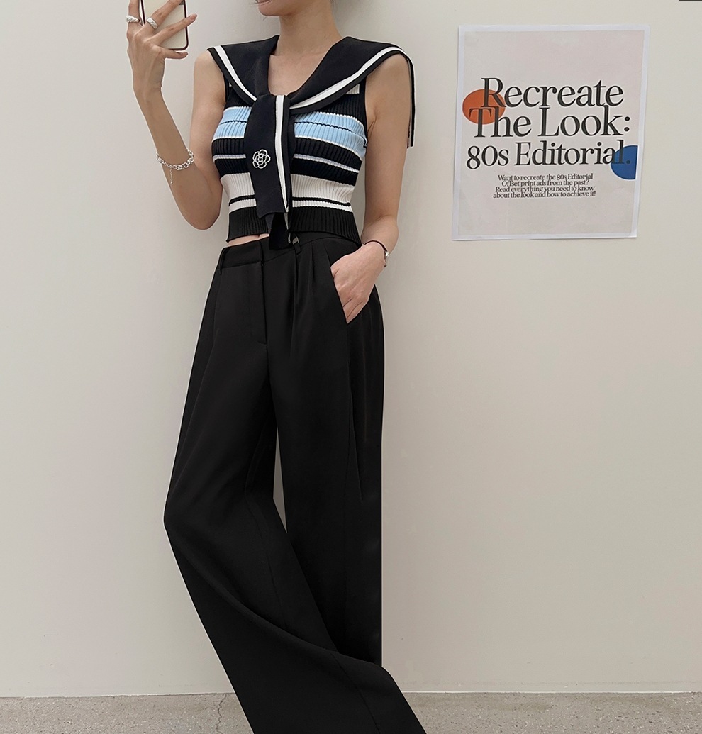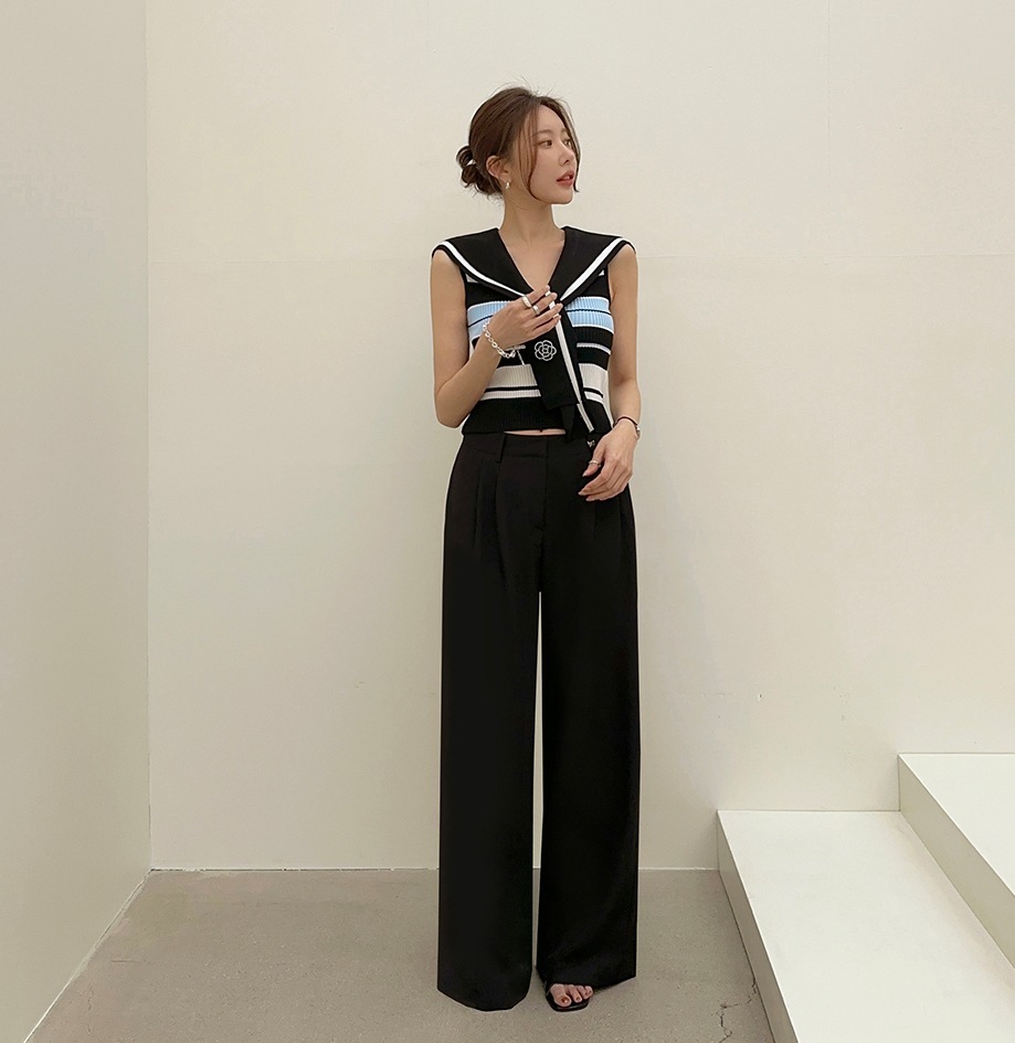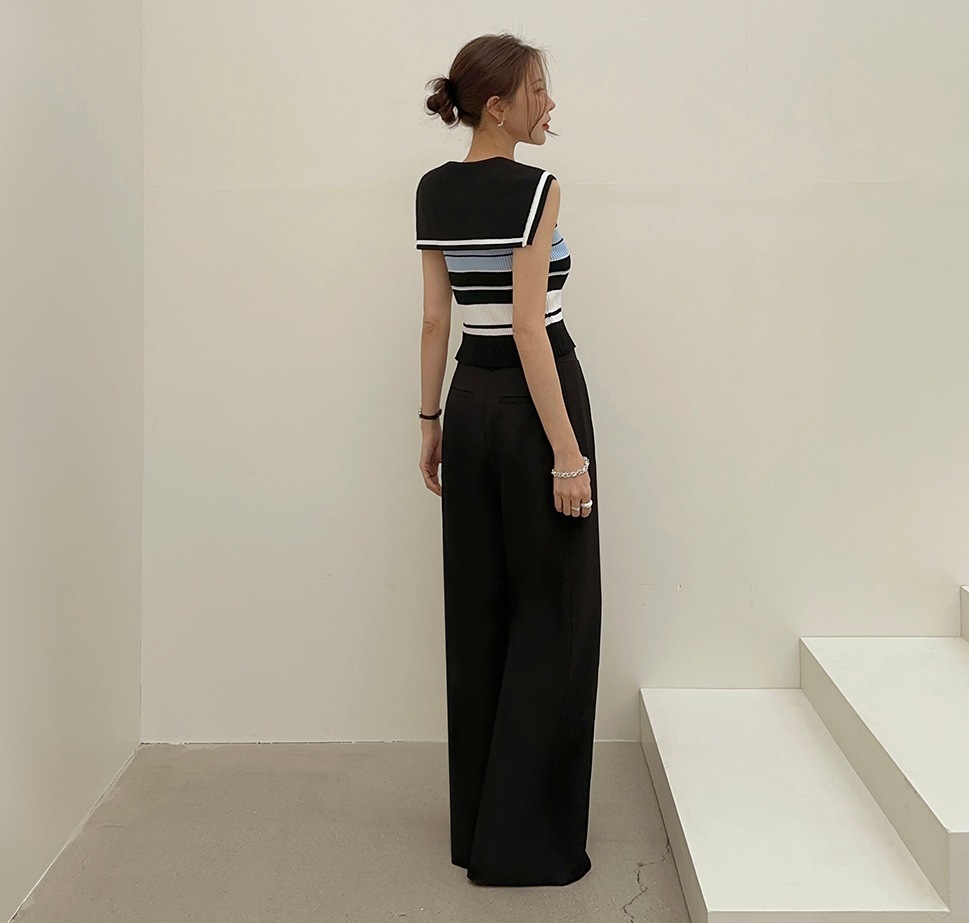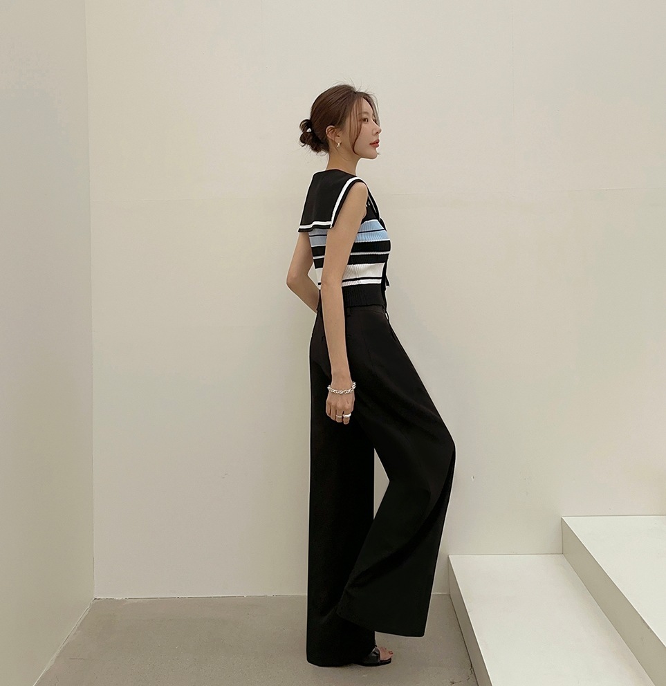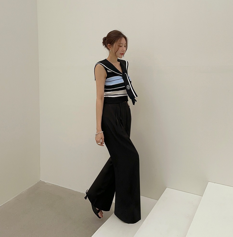 韓國高貨 海軍領冰絲上衣