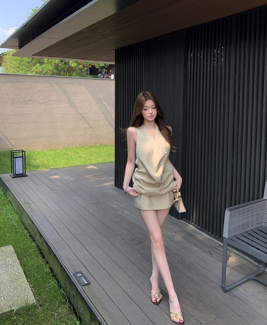 率性廢土風 垂墜盪領+迷你短褲裙(2件組)