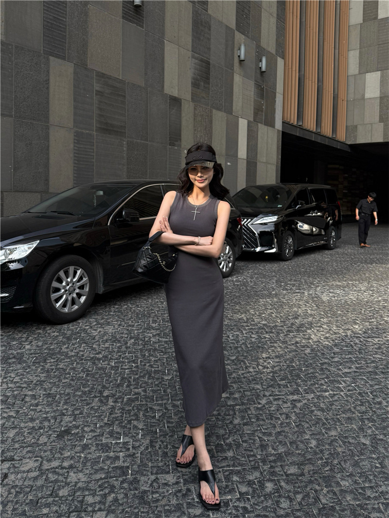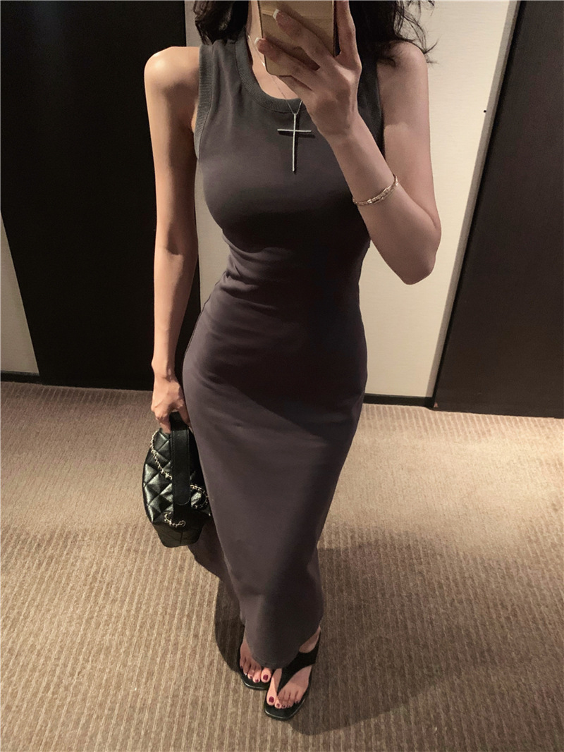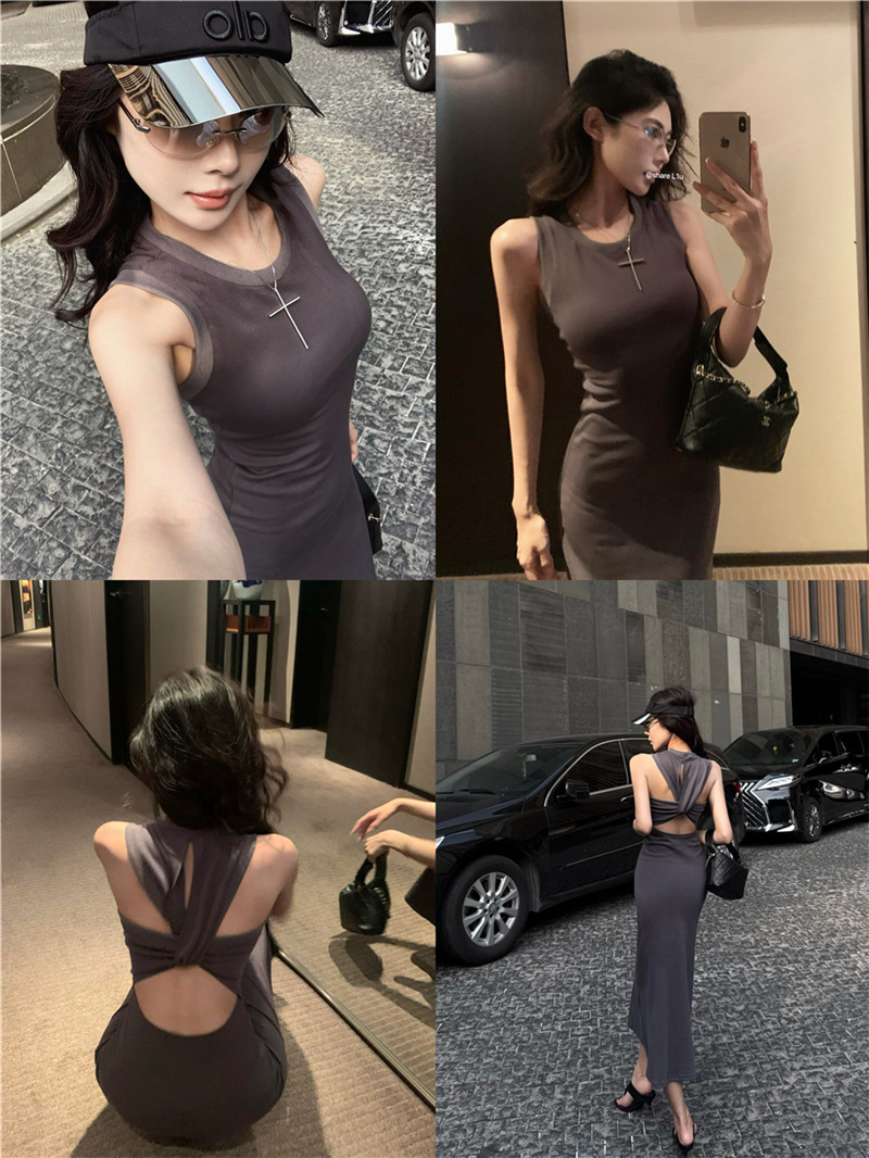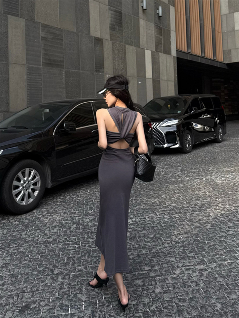 休閒性感 扭轉露背棉質長洋裝