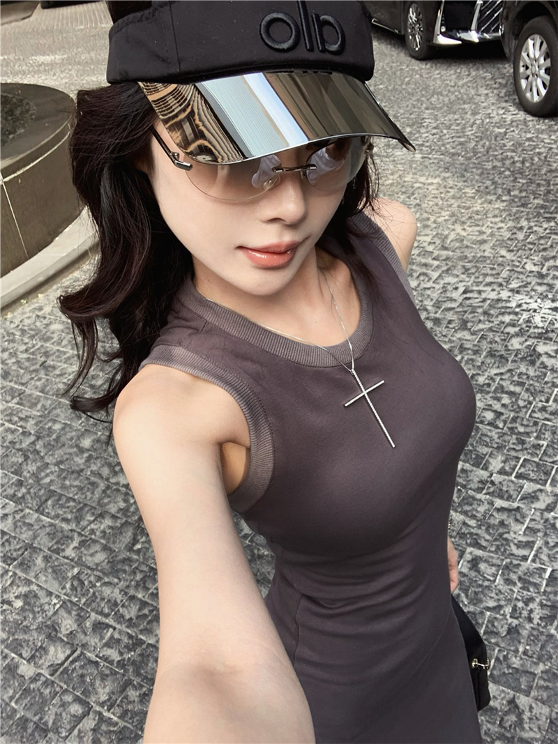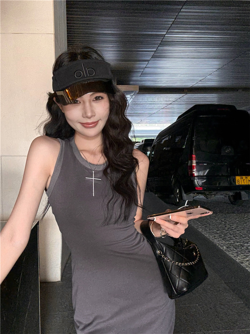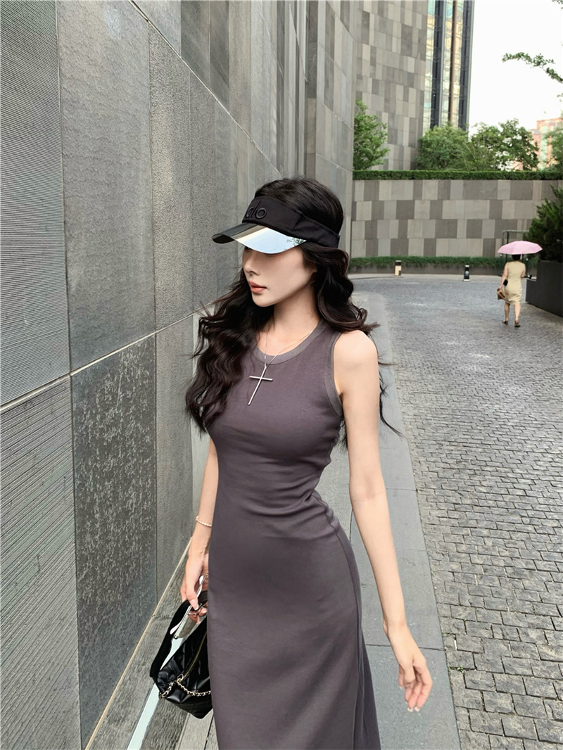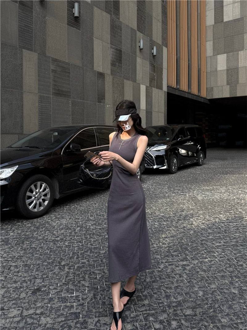 休閒性感 扭轉露背棉質長洋裝