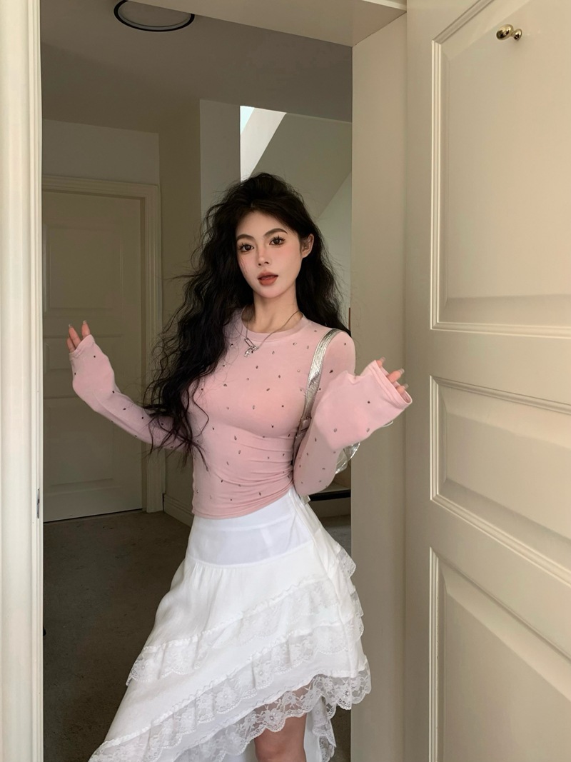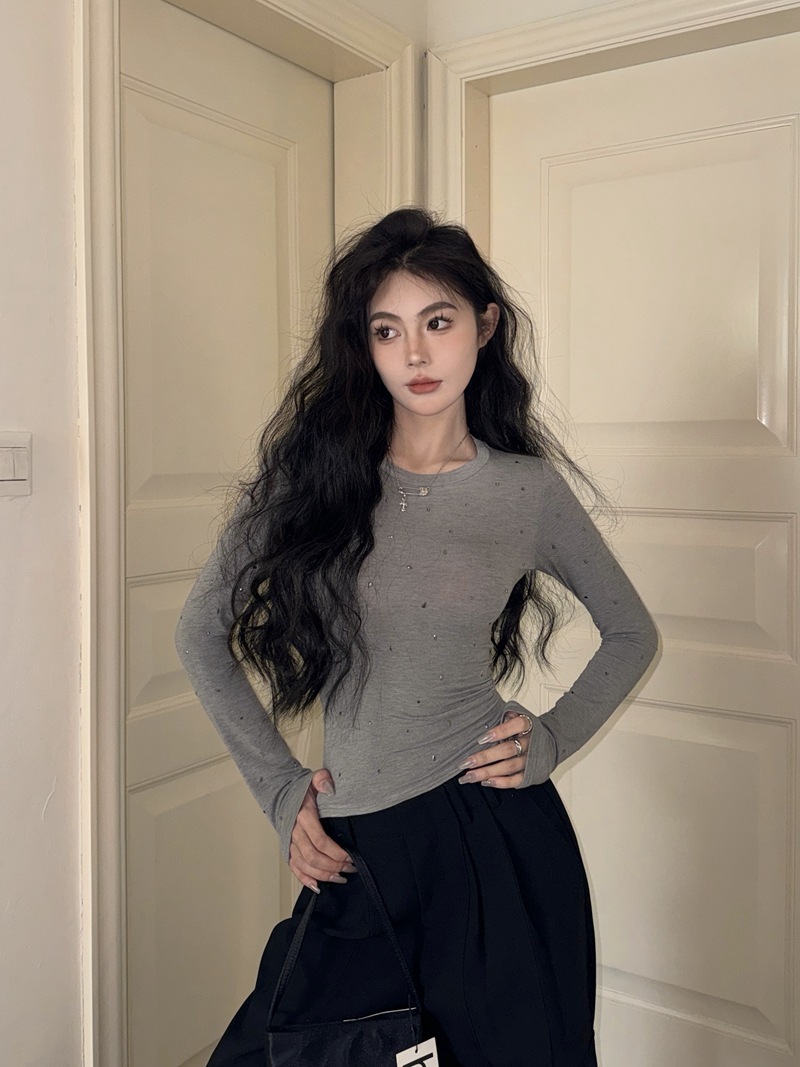 彩虹碎鑽 棉質薄上衣(粉/灰)