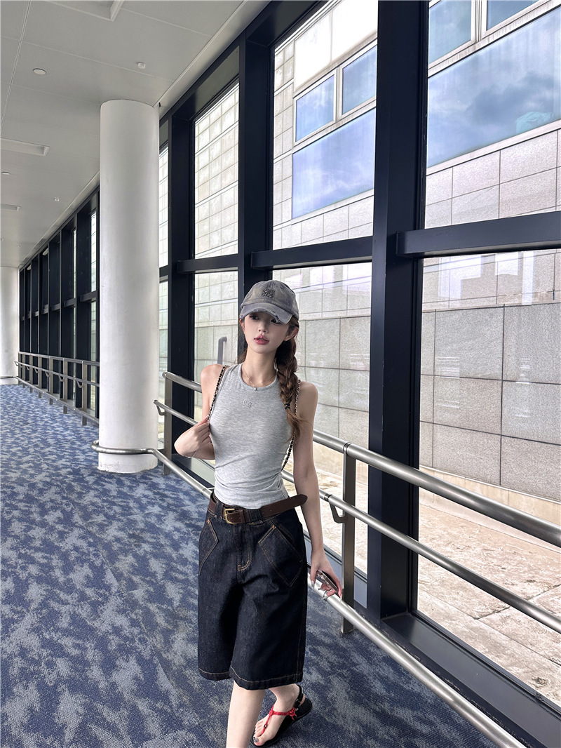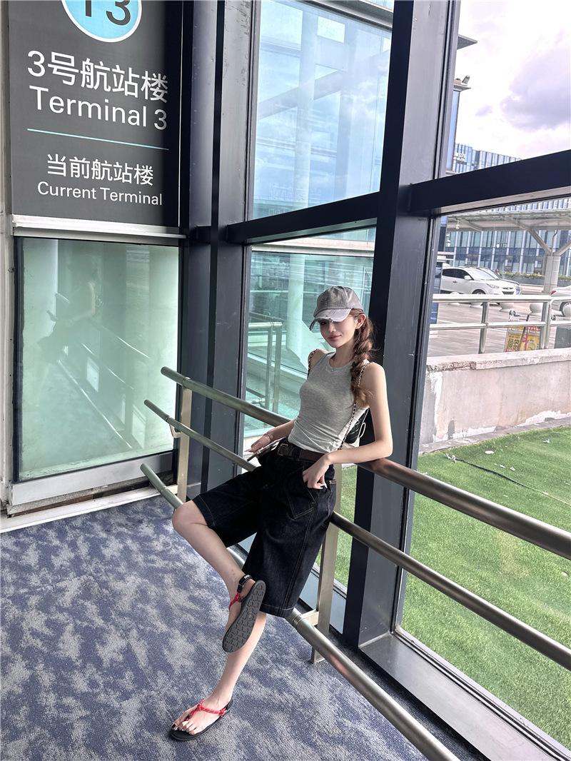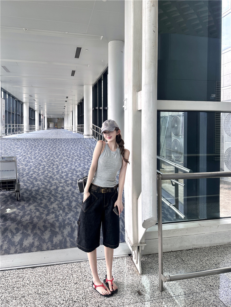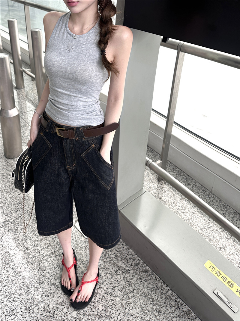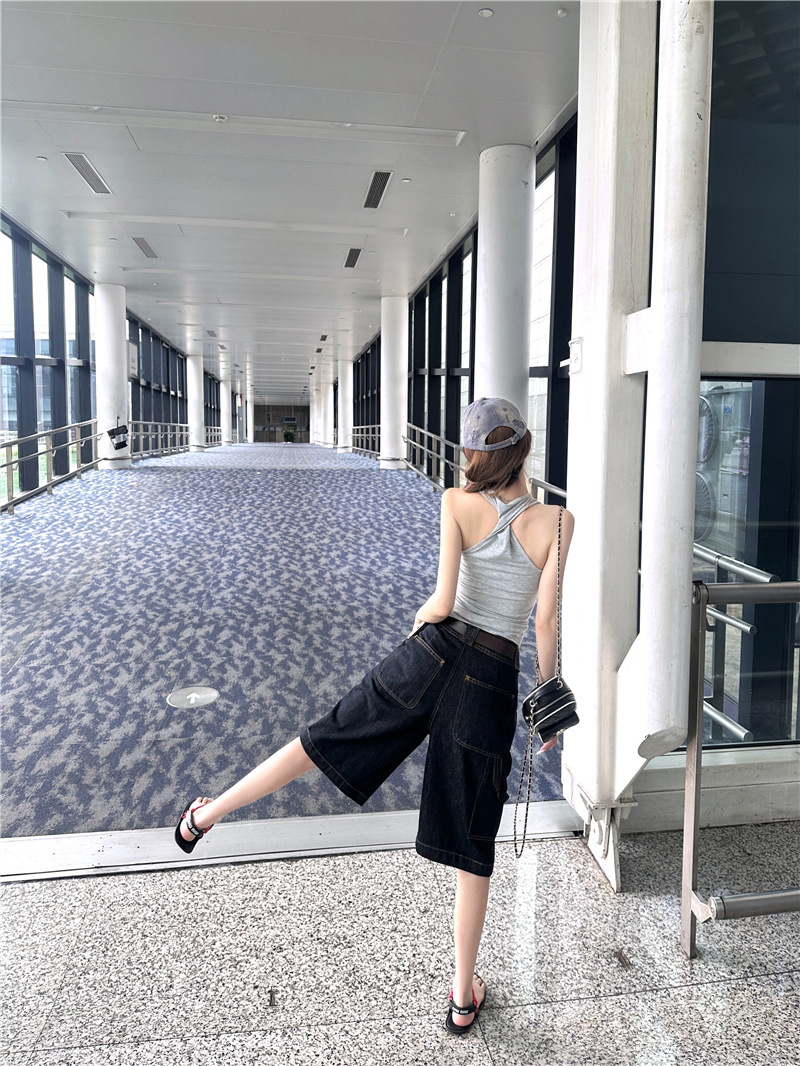 高腰大口袋 五分褲
