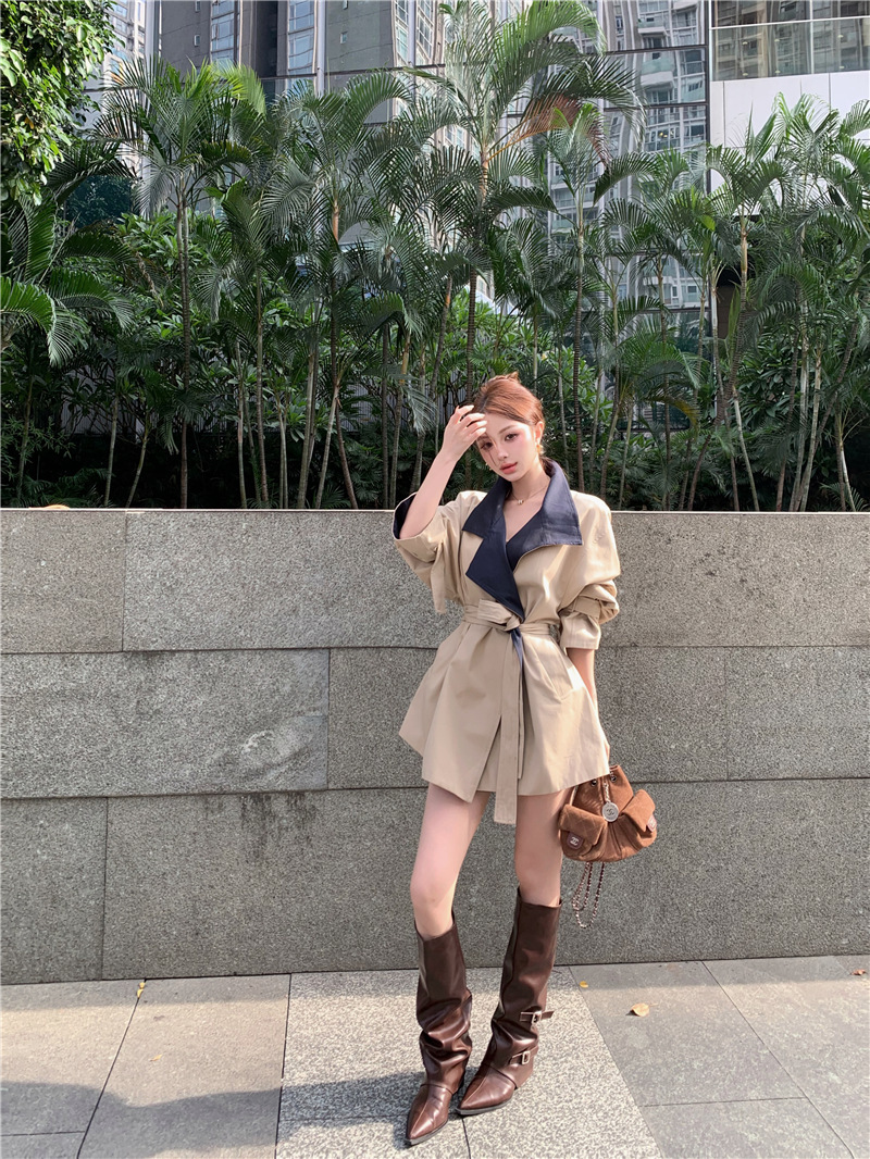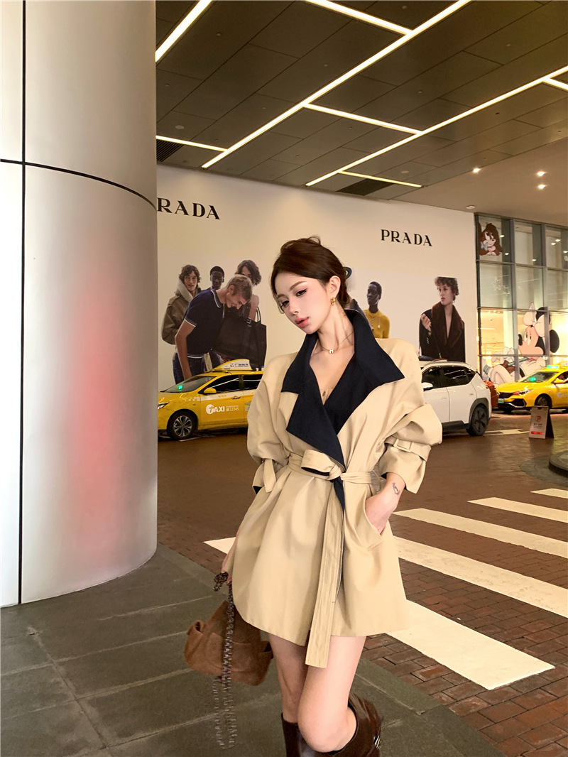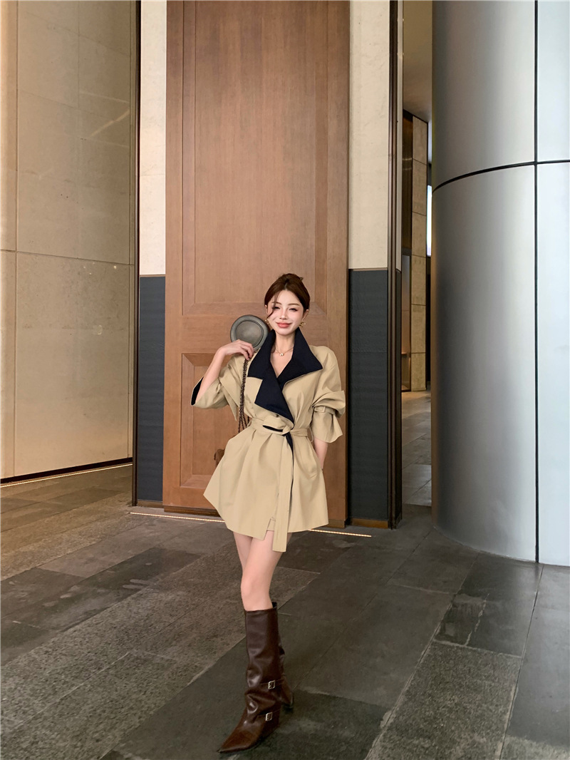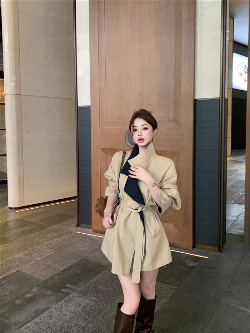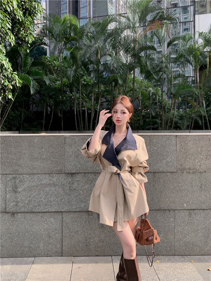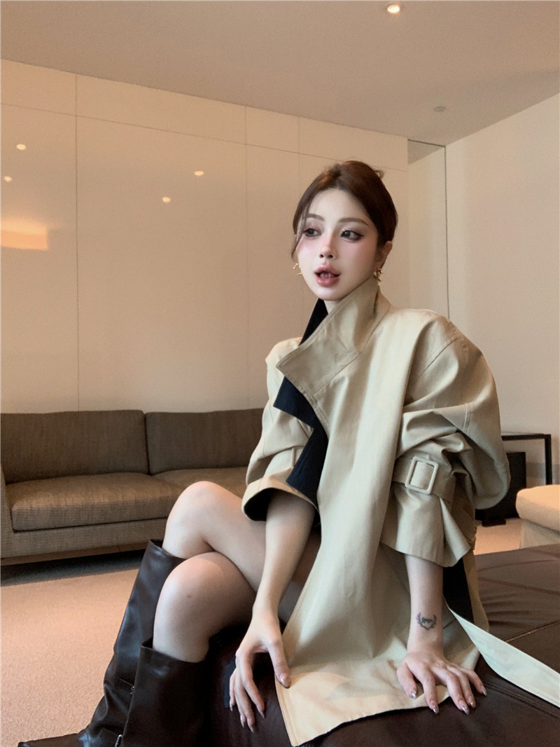 率性英倫撞色翻領 短版風衣/大衣