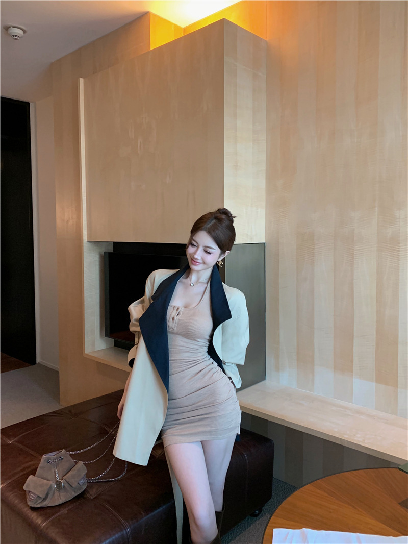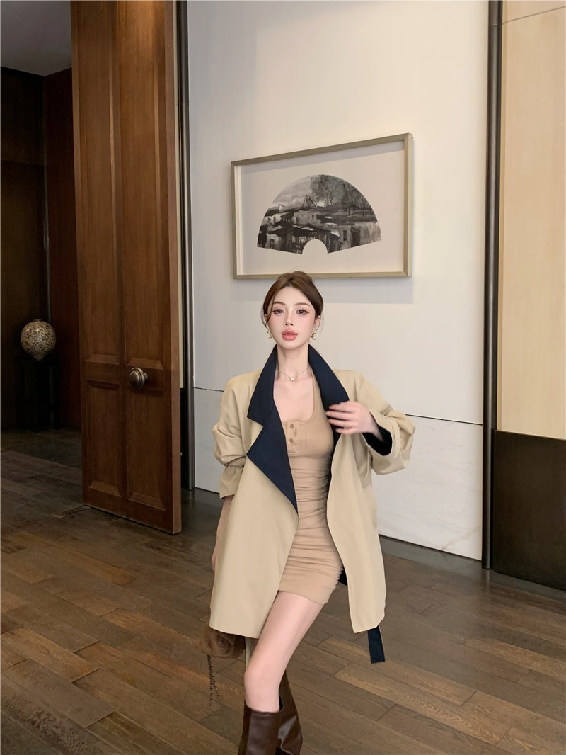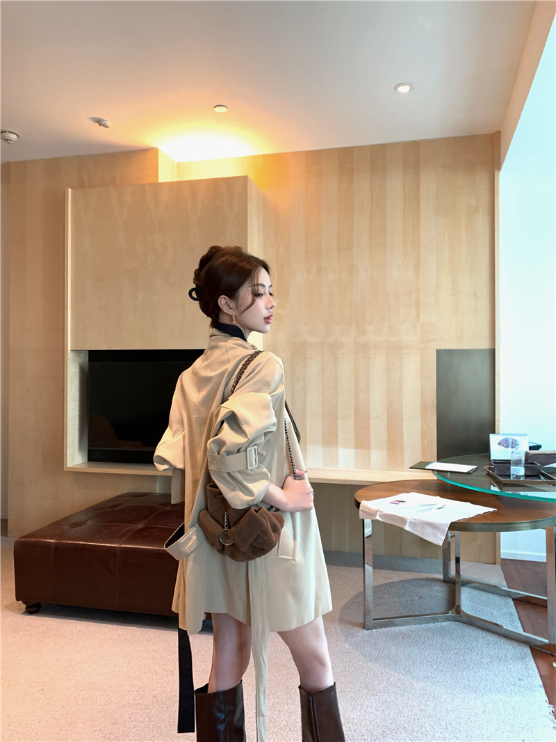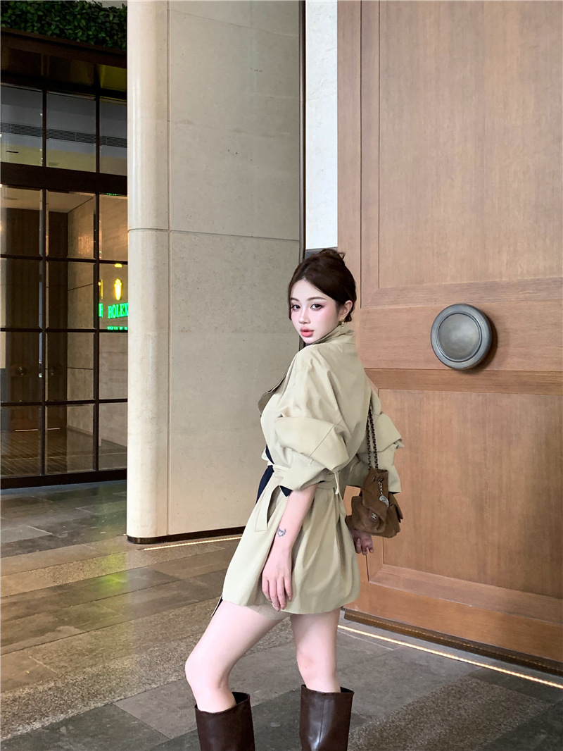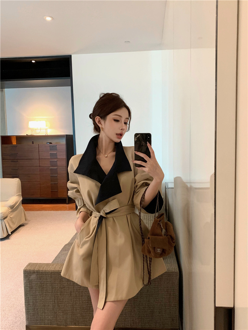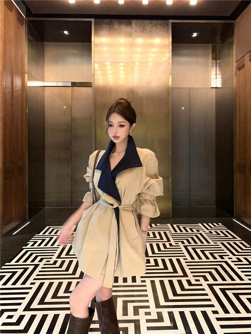 率性英倫撞色翻領 短版風衣/大衣