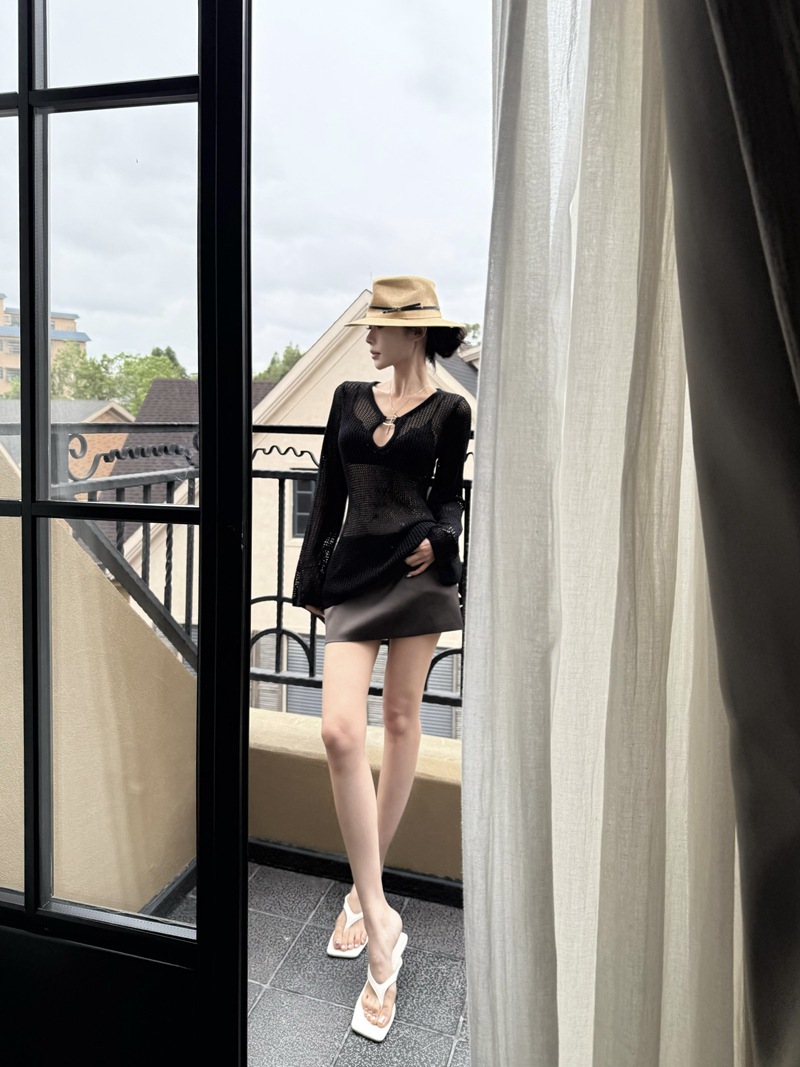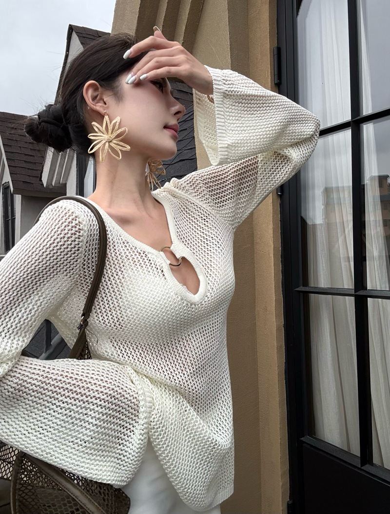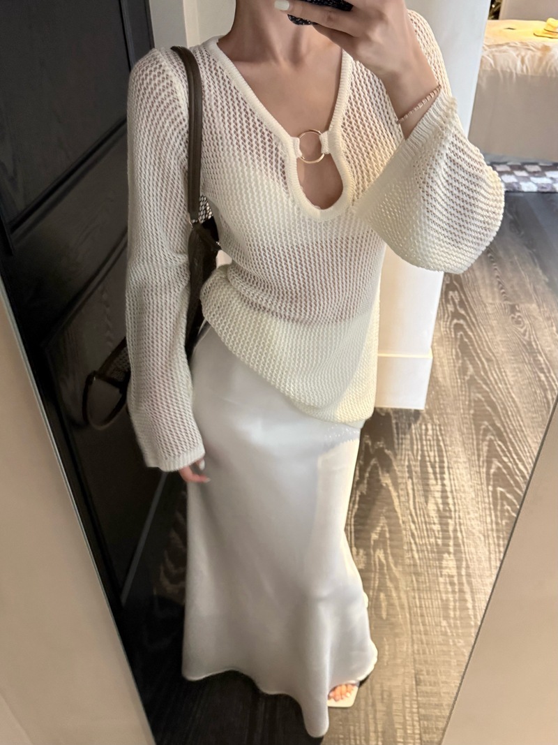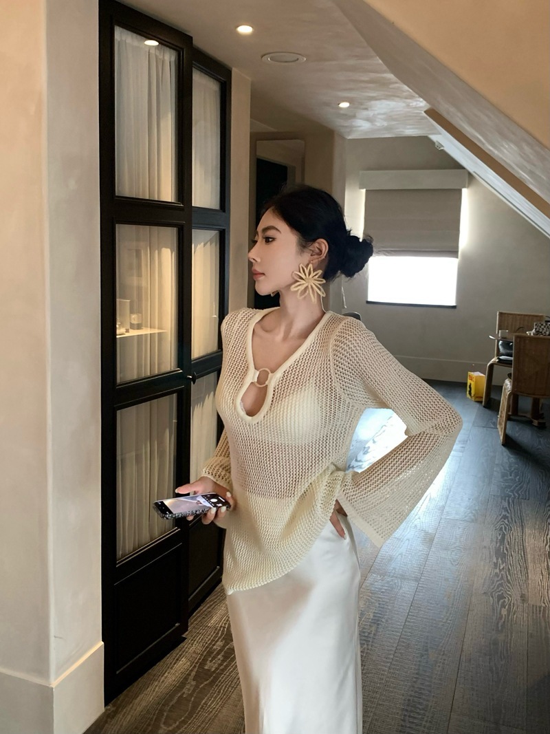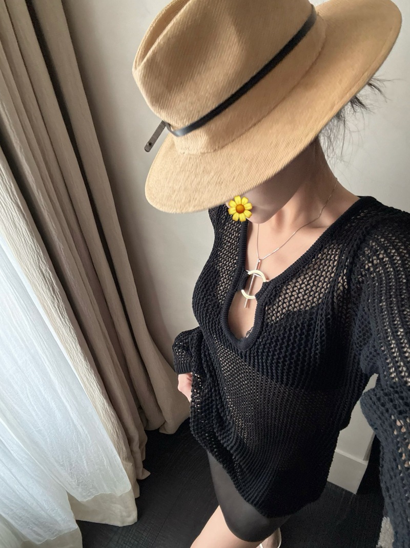 V領簍空針織 寬鬆上衣(黑/白)