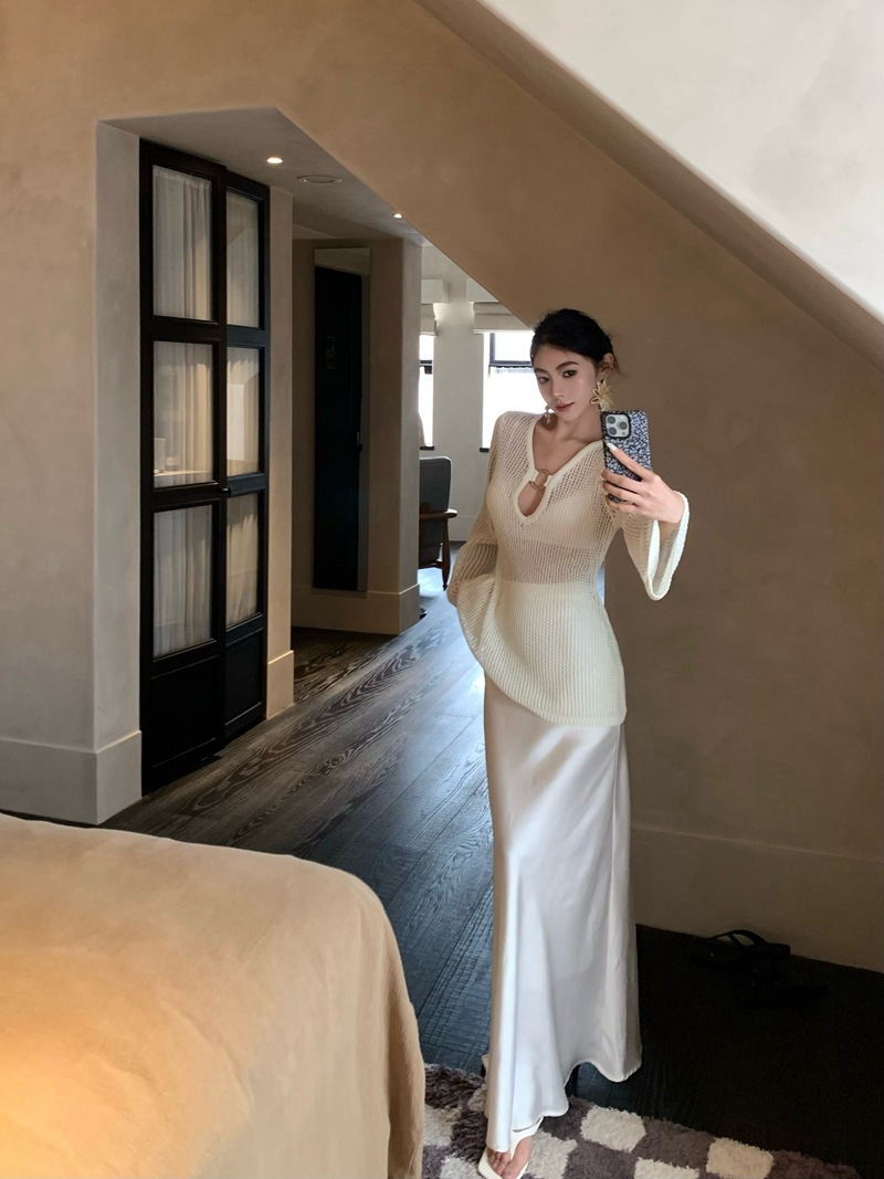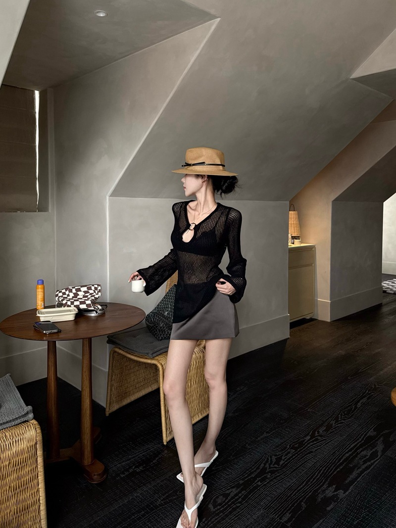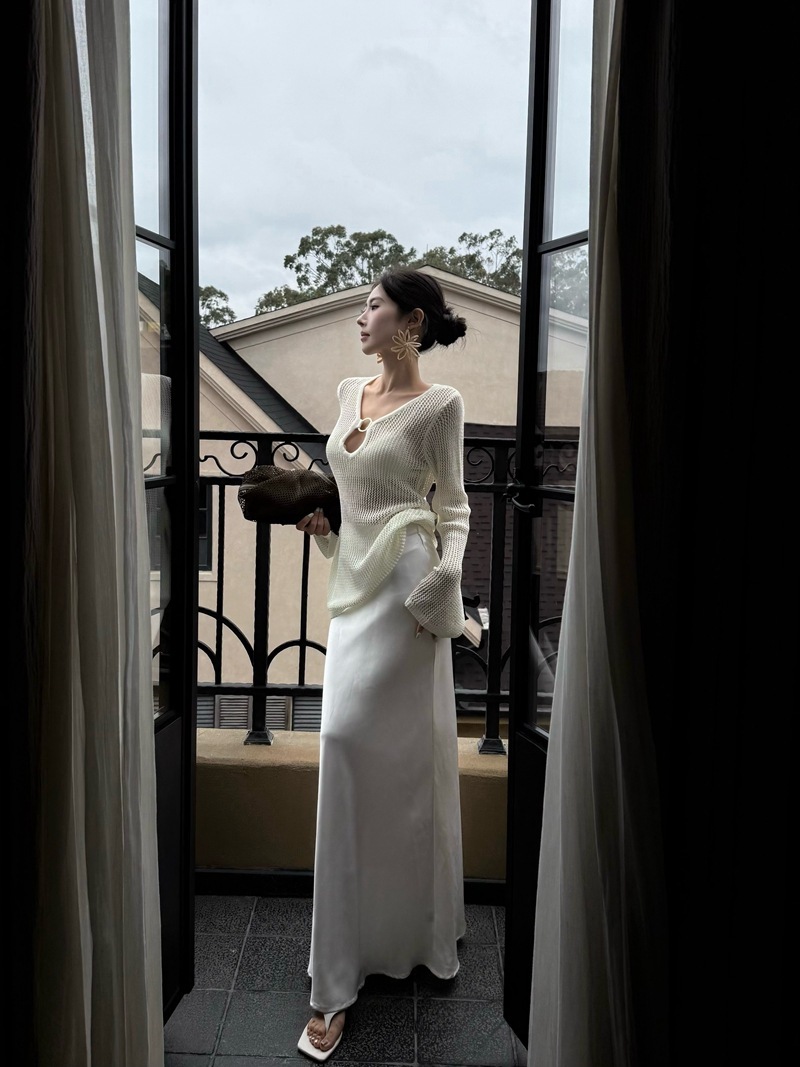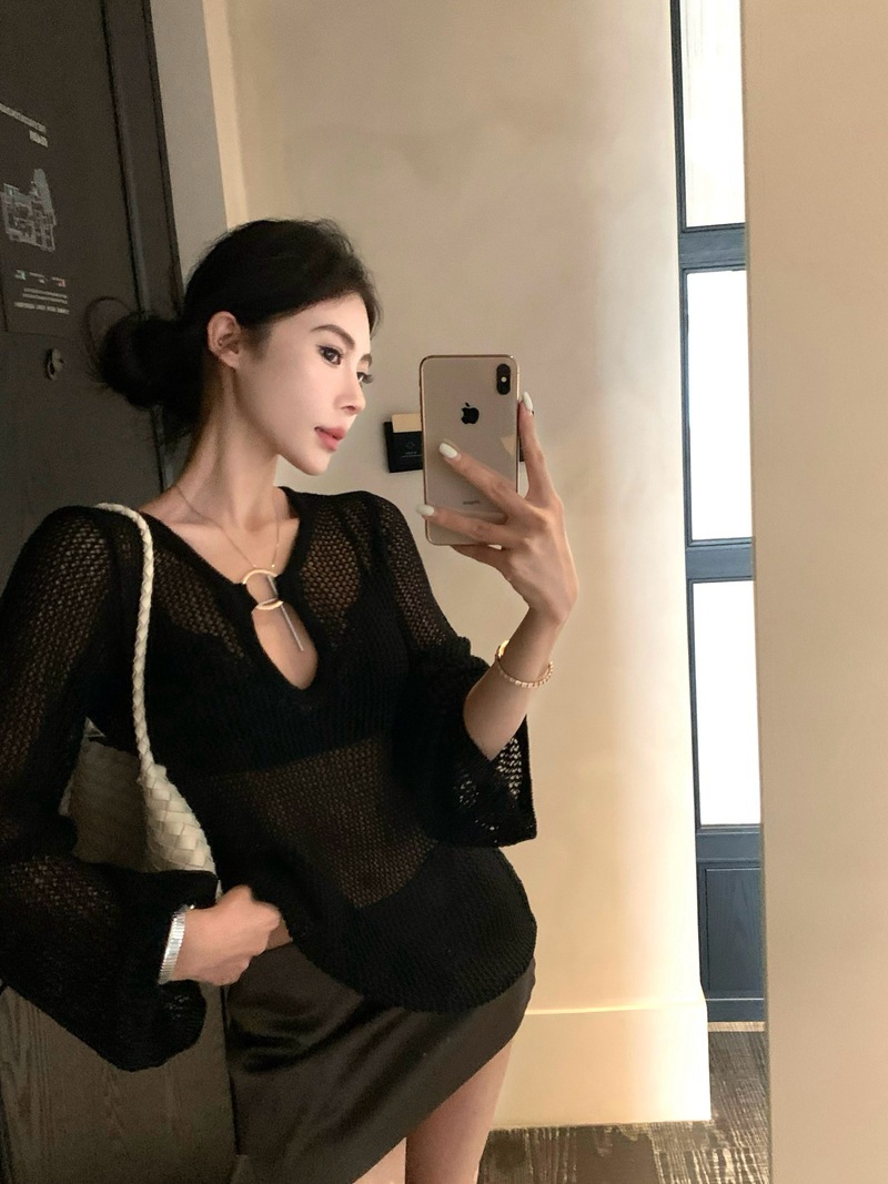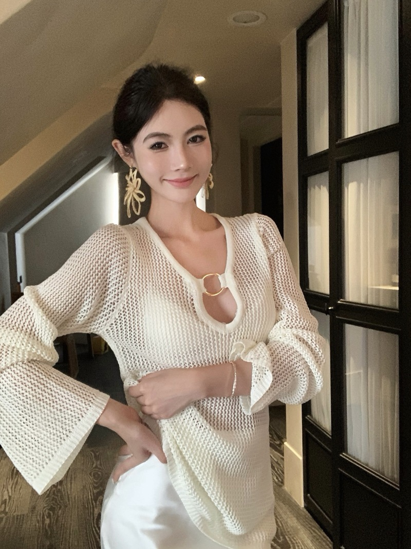 V領簍空針織 寬鬆上衣(黑/白)