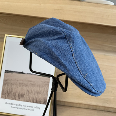 水洗牛仔貝雷帽 (深藍/淺藍)