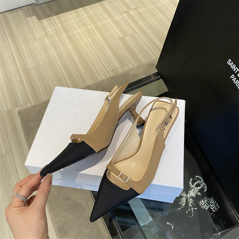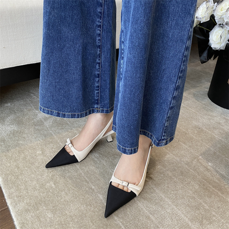 拚色尖頭 低跟跟鞋(35-39)(黑/杏/棕)