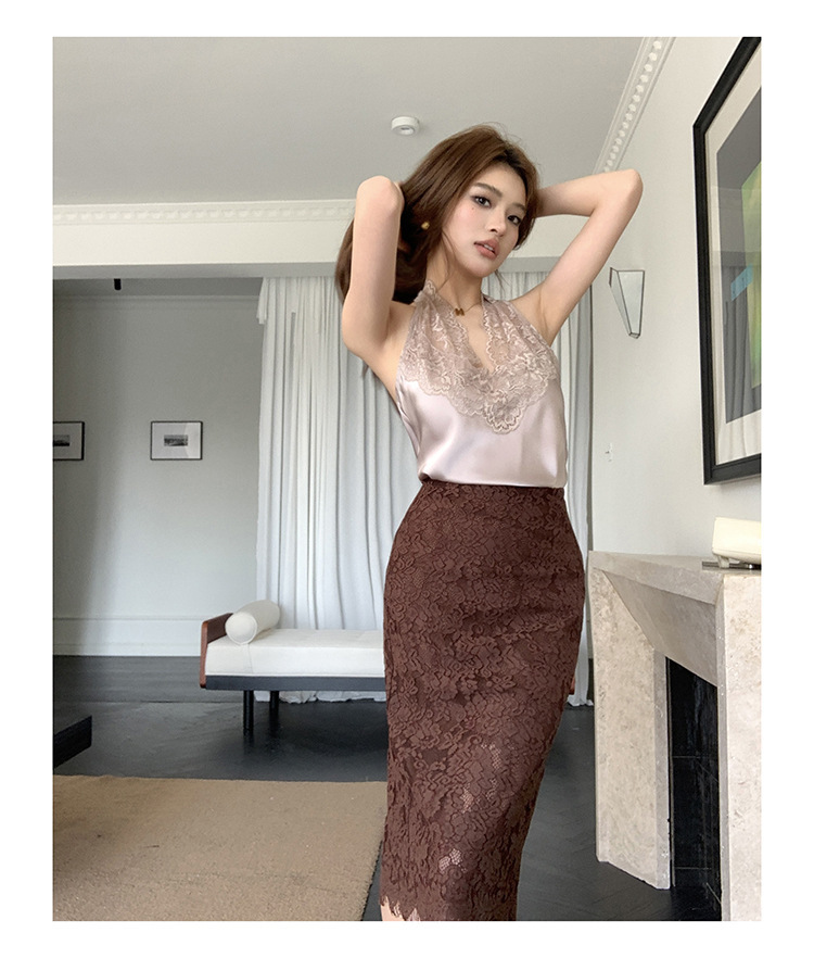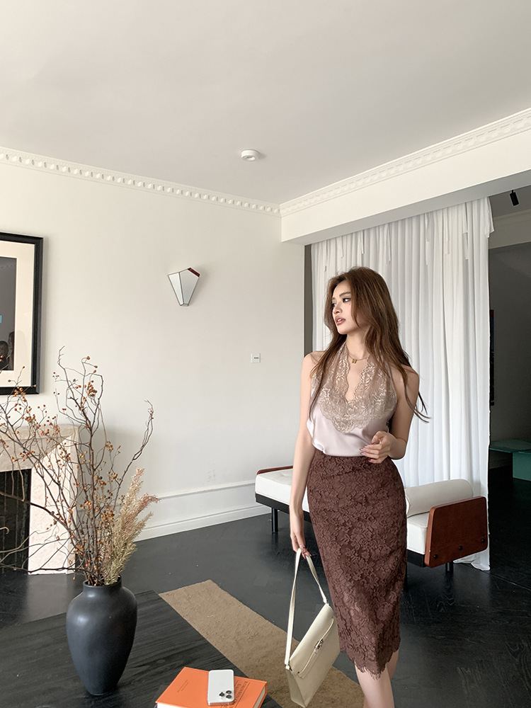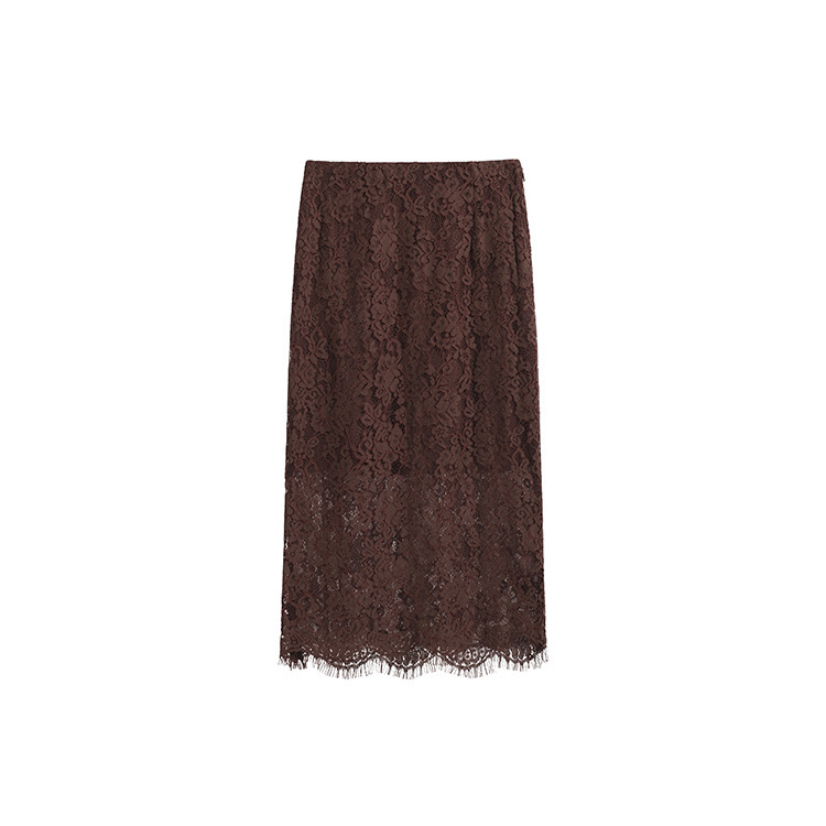 高腰顯瘦 質感咖蕾絲鉛筆裙