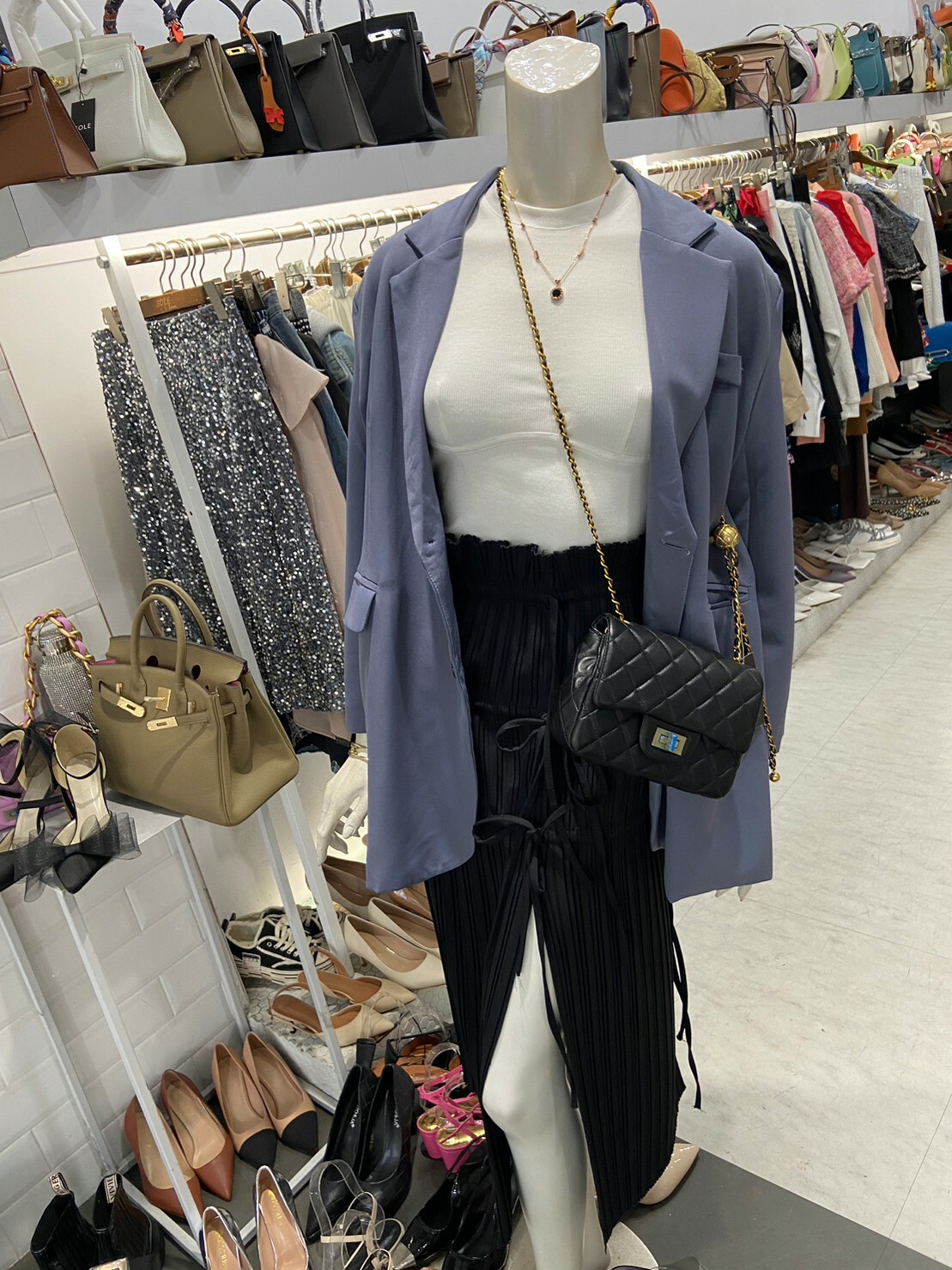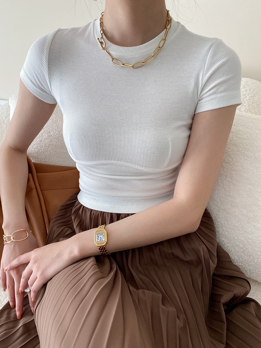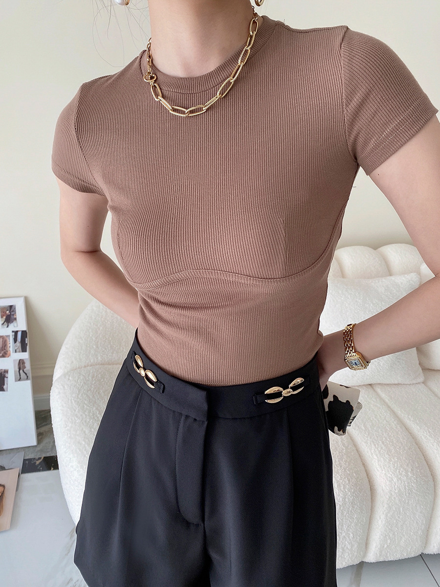 上衣採用柔軟舒適的針織面料,貼身剪裁勾勒出自然的腰線曲線。