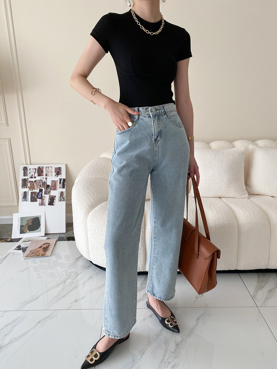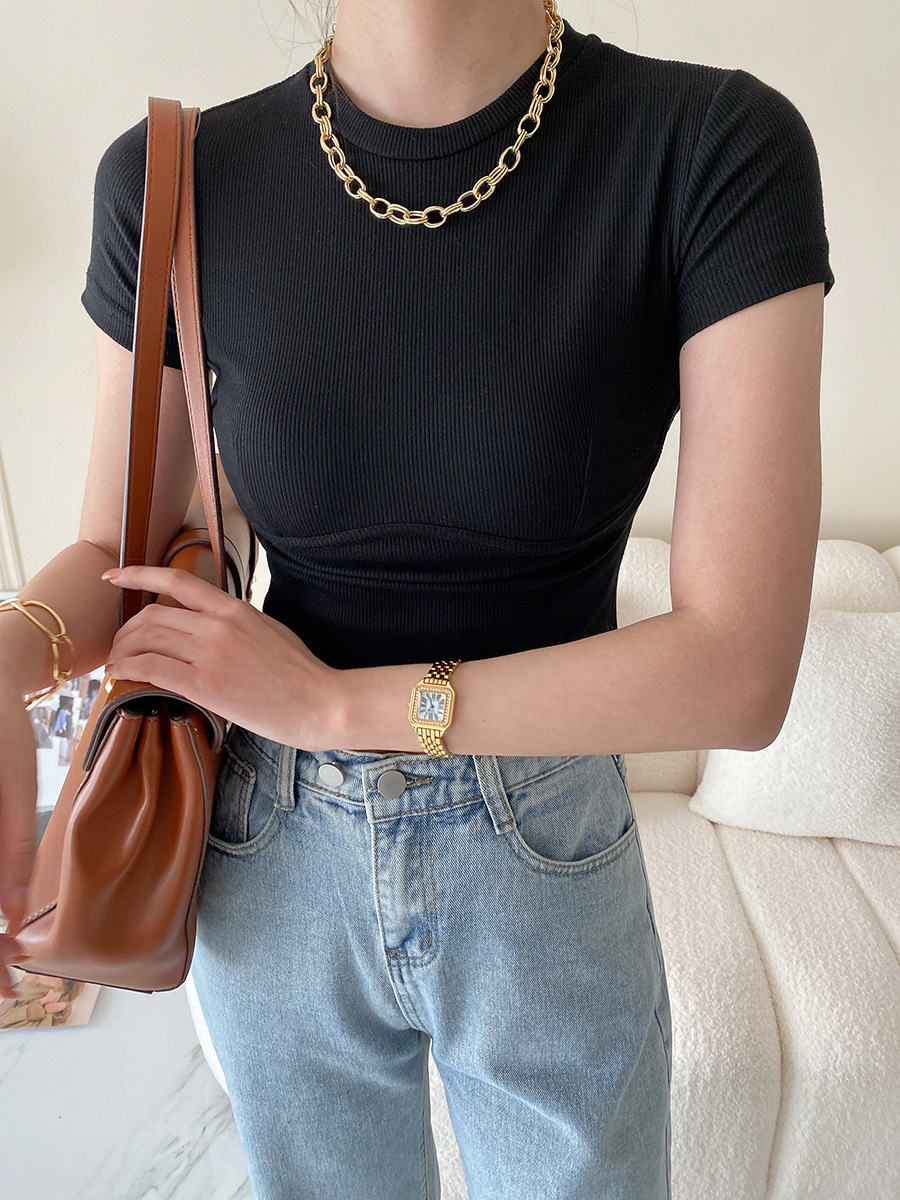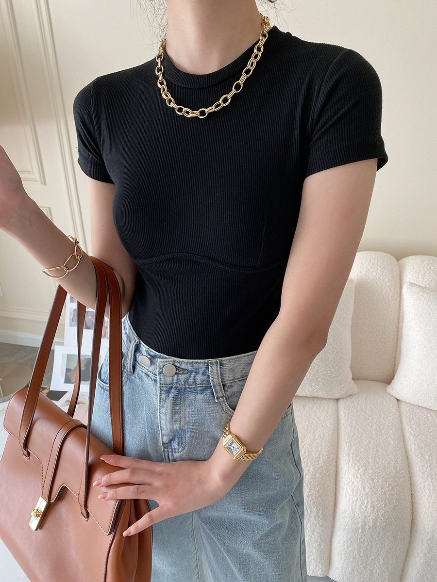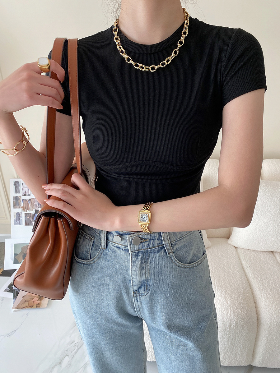 圓領設計簡約大方,袖口與下擺採用羅紋工藝,展現時尚俐落的剪裁。