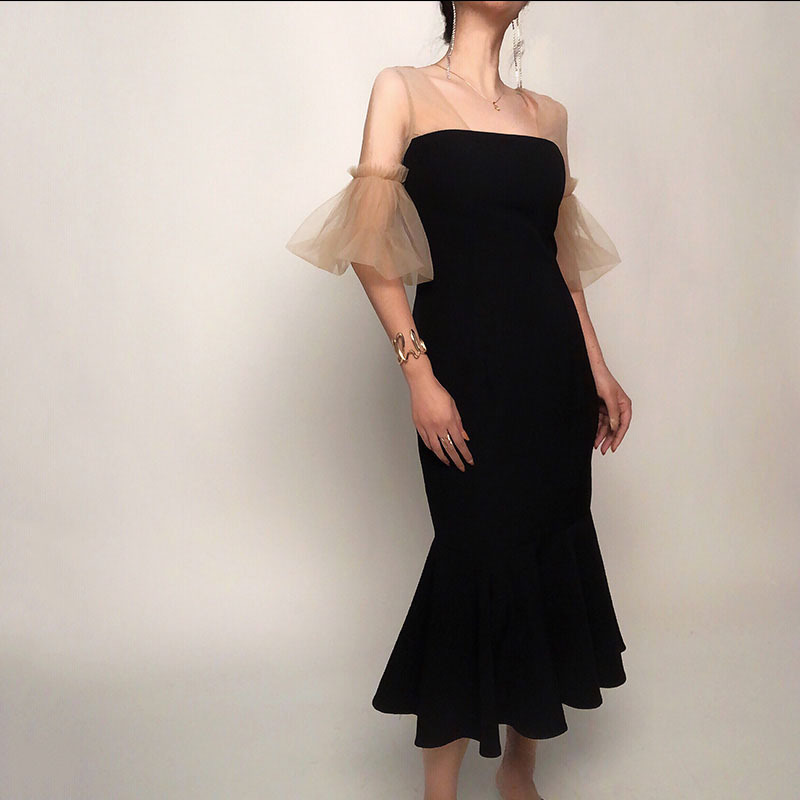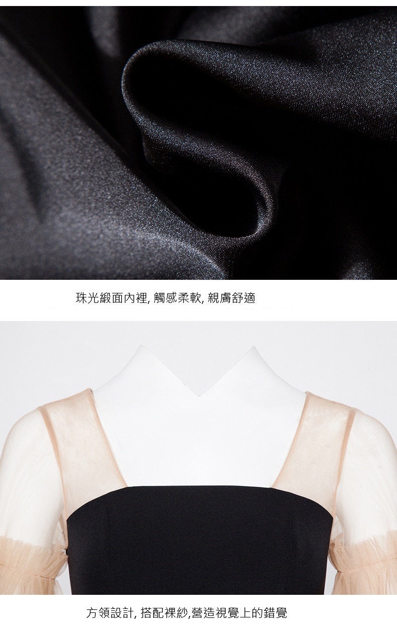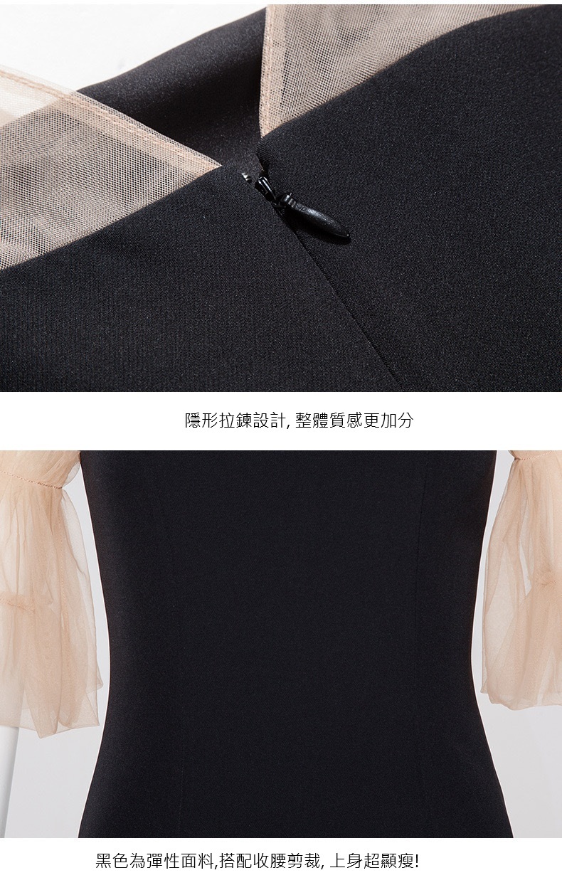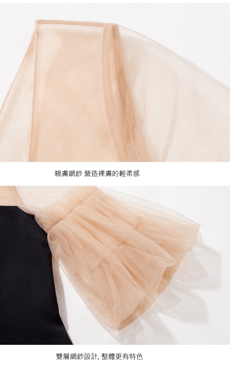 網紗蓬袖 魚尾長洋裝