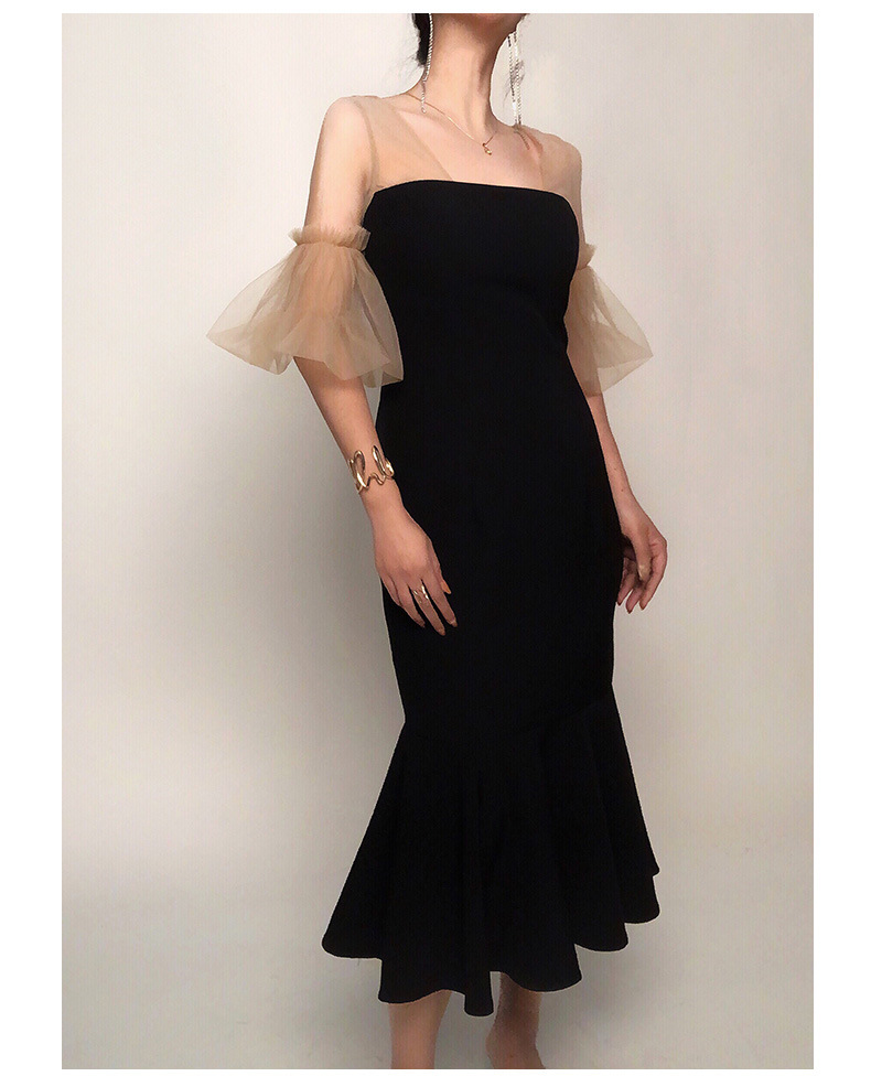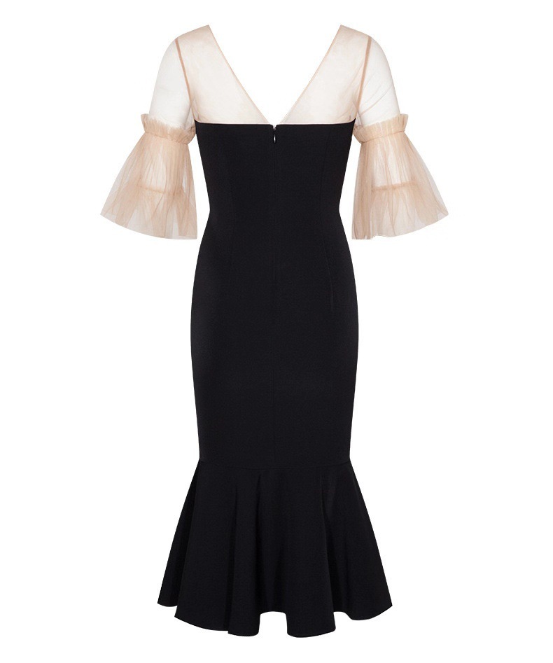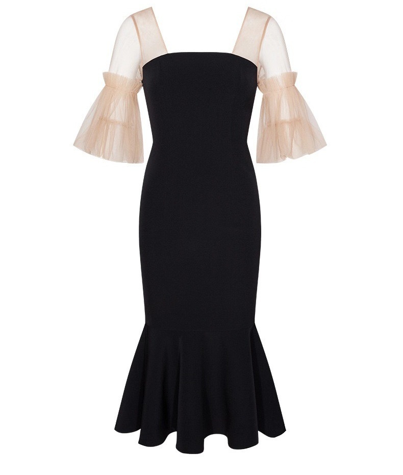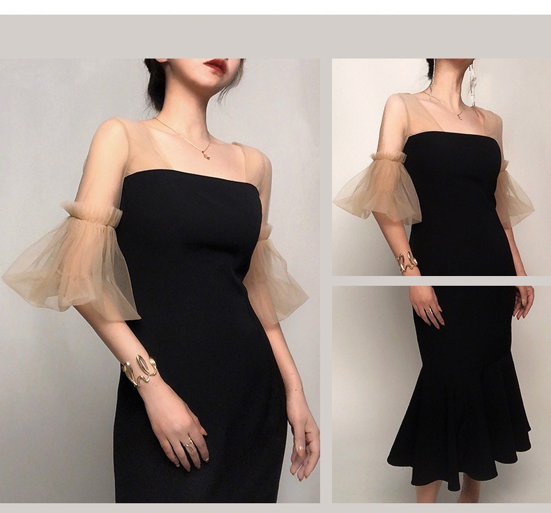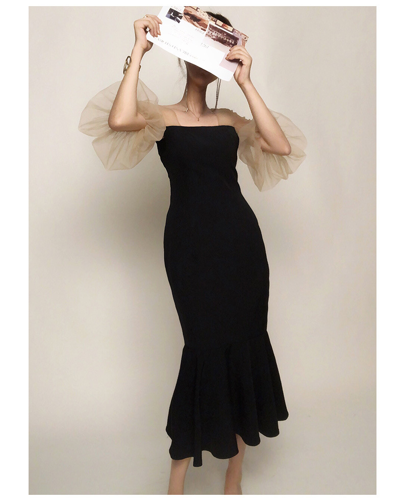 網紗蓬袖 魚尾長洋裝