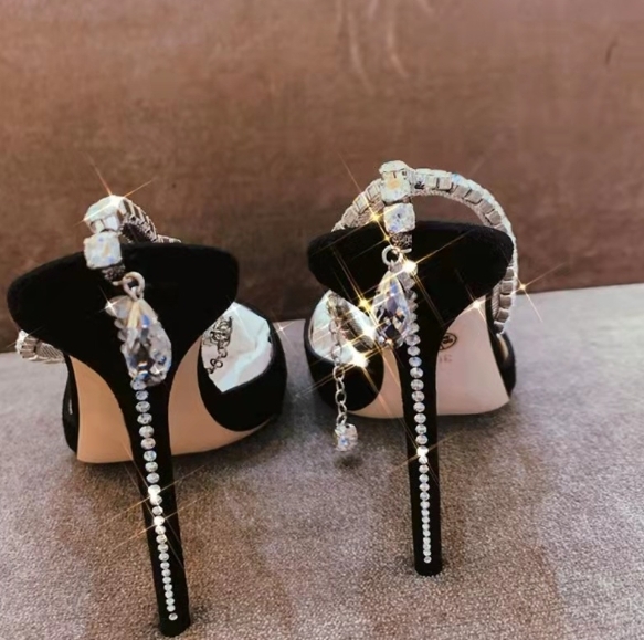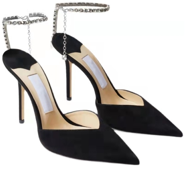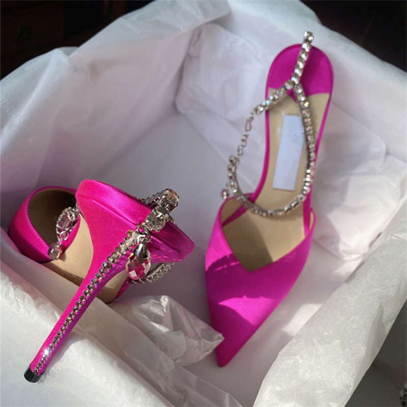 這款水鑽鍊條尖頭緞面跟鞋是時尚精緻的單品。蓬鬆的緞面材質展現高雅氣質,內縱搭配水鑽鍊條點綴,增添優雅迷人的魅力。尖頭設計修飾腳型,細緻剪裁勾勒流線曲線。全尺碼齊全,適合34-40號腳型的女性。黑色與玫紅兩色可供選擇,顯得高雅大方。無論是正式場合或是晚宴佳餚,這雙鞋都能賦予您迷人動人的女性風采。