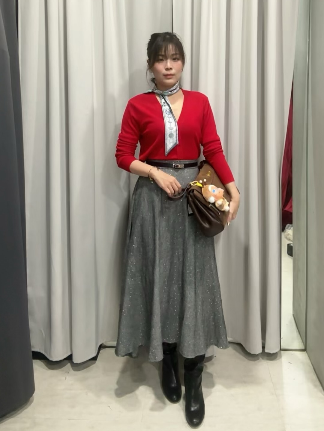 人字紋高腰毛尼長裙