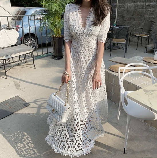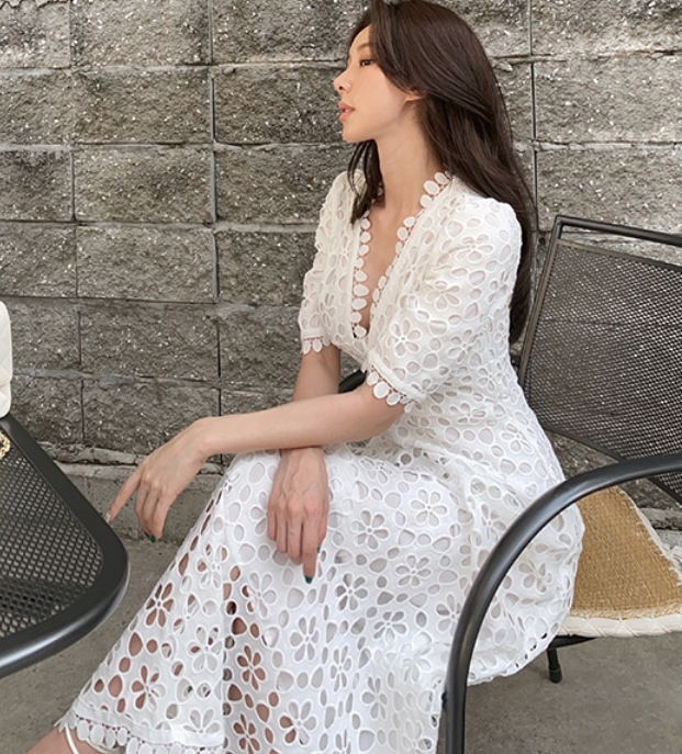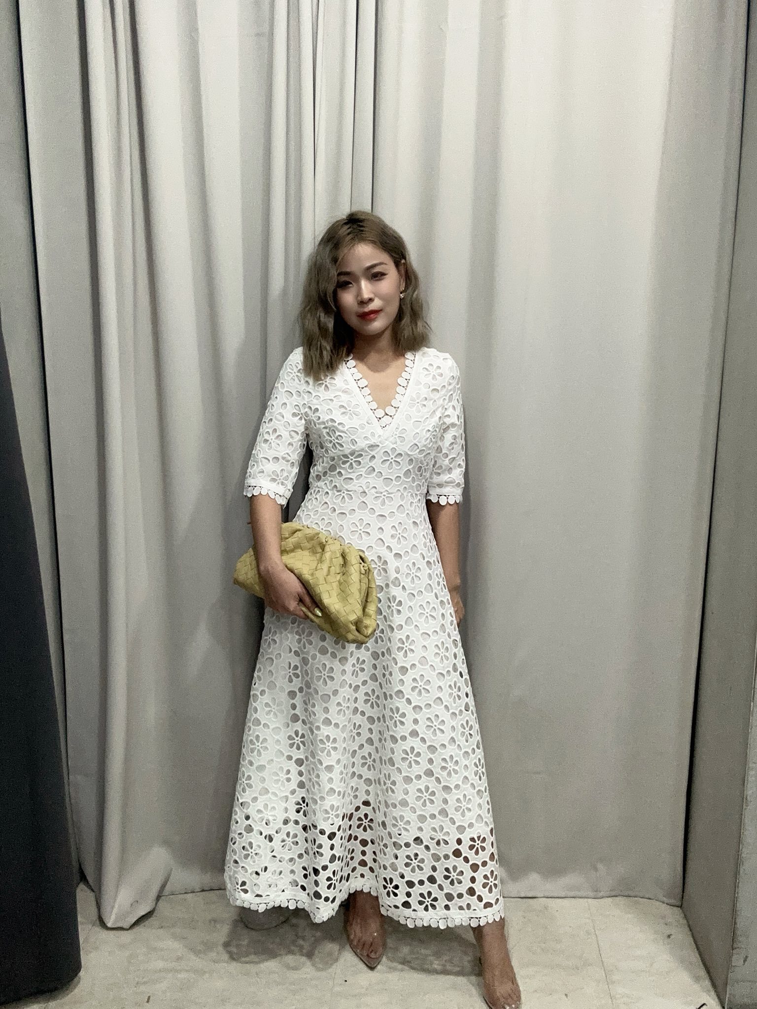 優雅的設計、精緻的刺繡細節,為整體造型增添獨特魅力。舒適版型,適合多種場合穿搭,營造時尚動人的優雅氛圍。優雅的V領線條,修飾上半身線條,搭配收腰設計,展現動人的曲線美。高品質的面料,柔軟舒適,穿著舒適又耐穿。無論是外出逛街或是正式場合,都可以輕鬆駕馭這款洋裝。