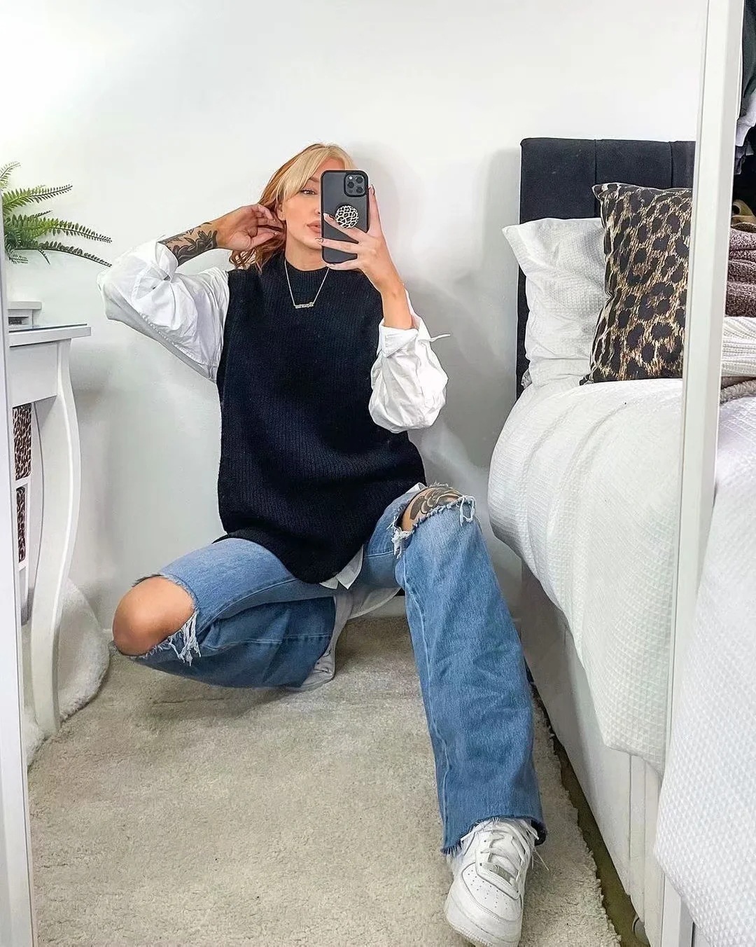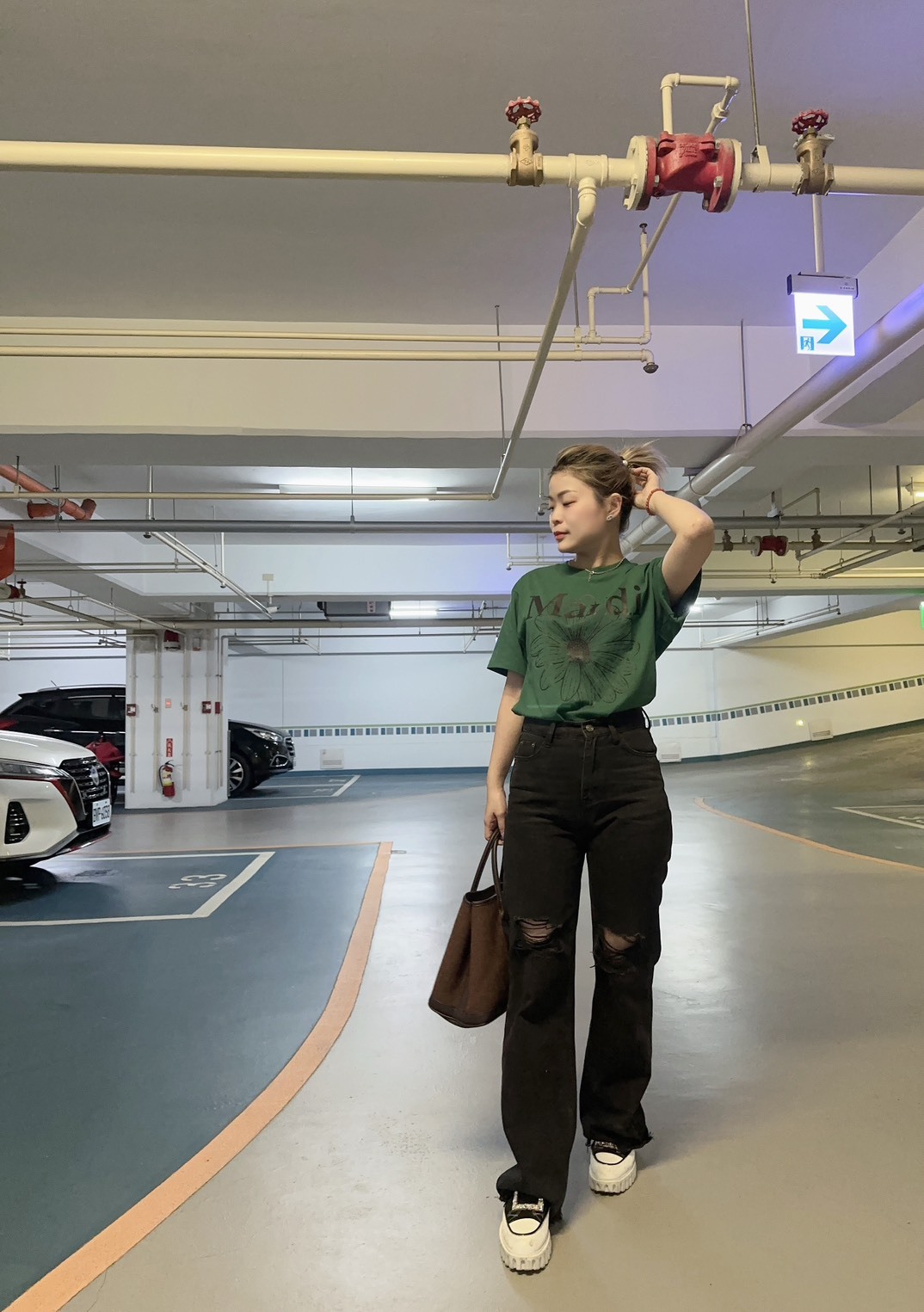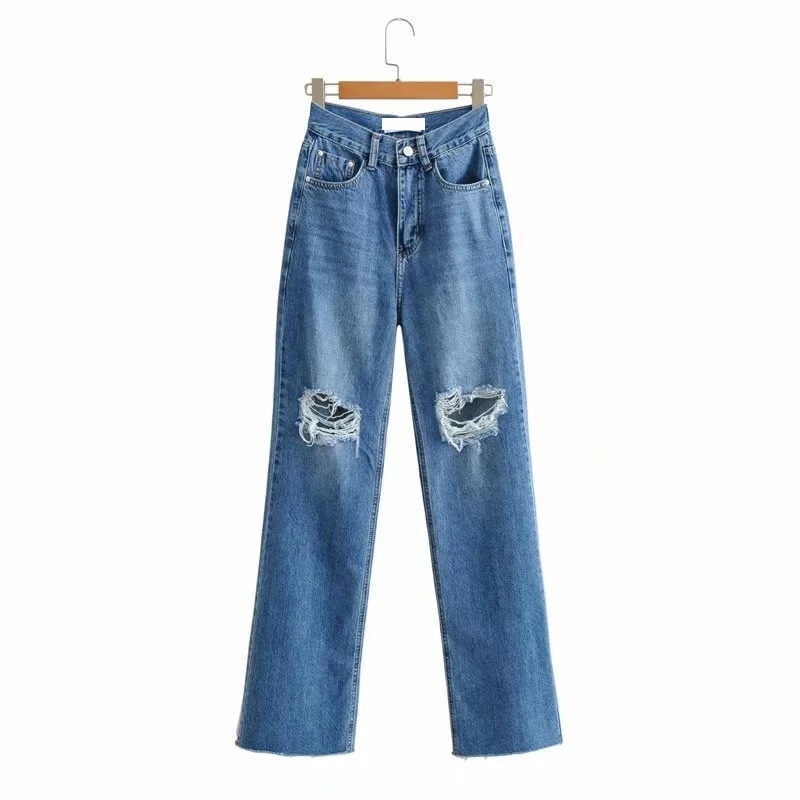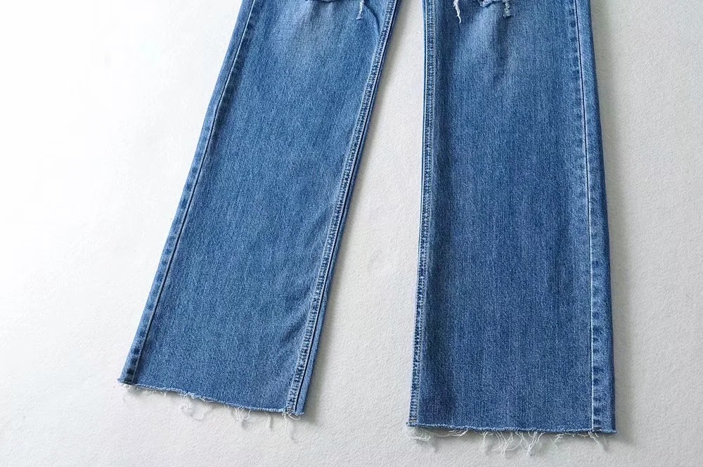 韓國正流行_高腰寬鬆直筒破褲(黑/深藍/淺藍)