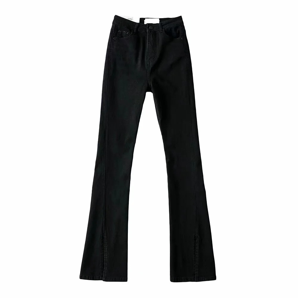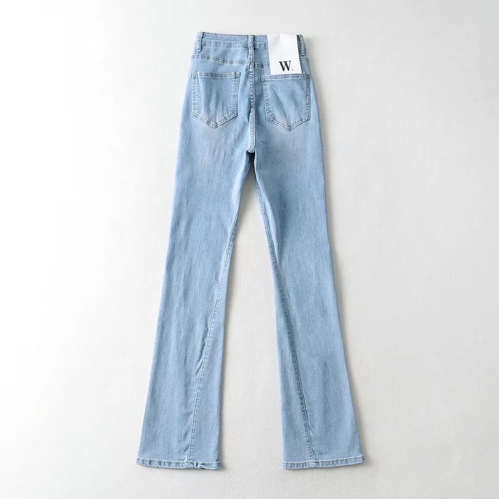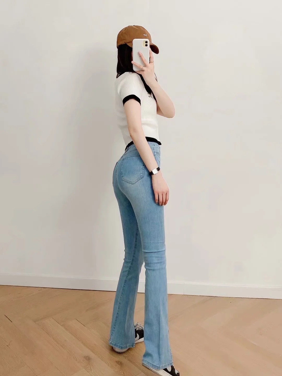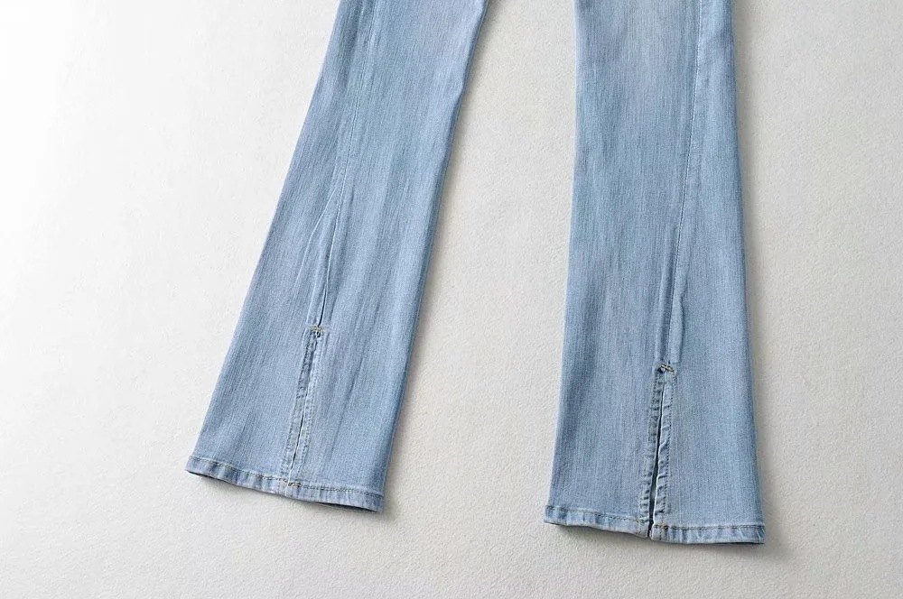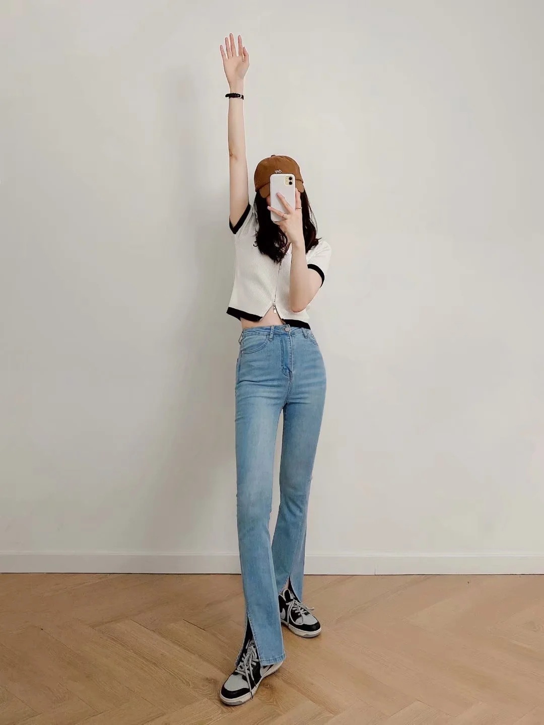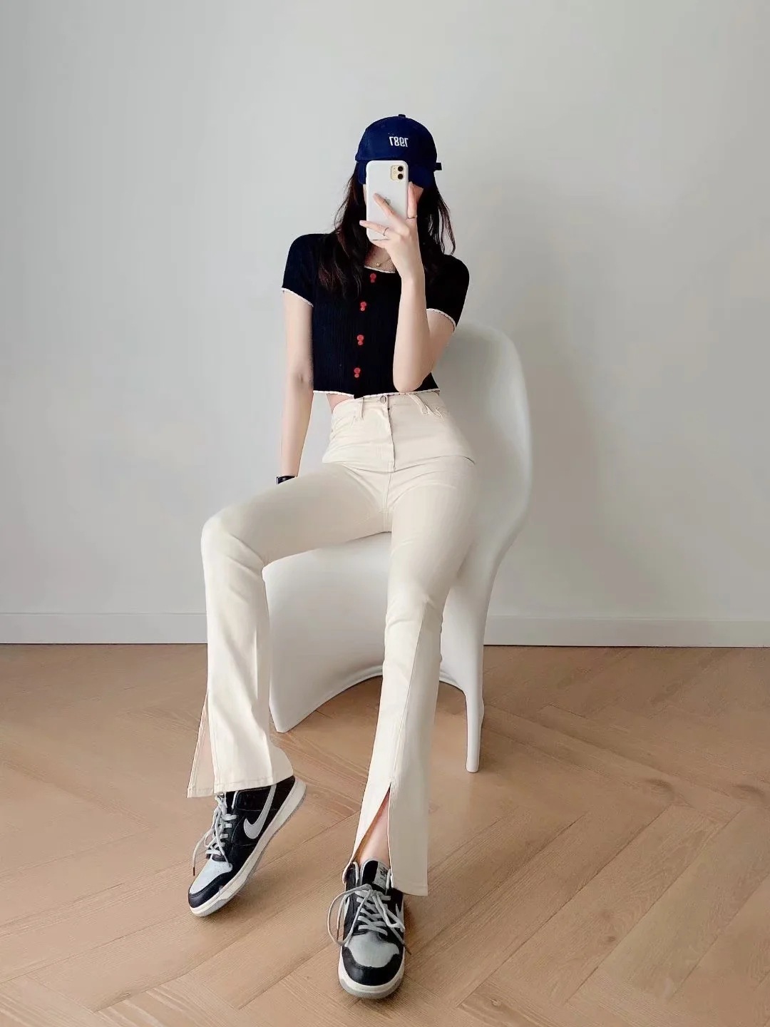 彈性高腰 開衩喇叭褲(黑/米白/深藍/淺藍)