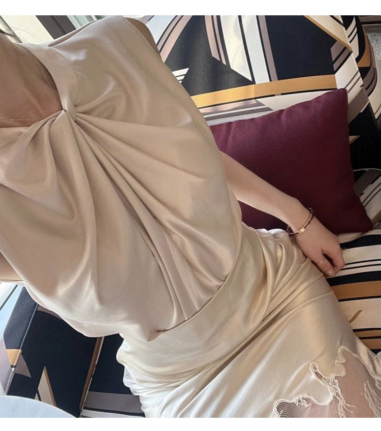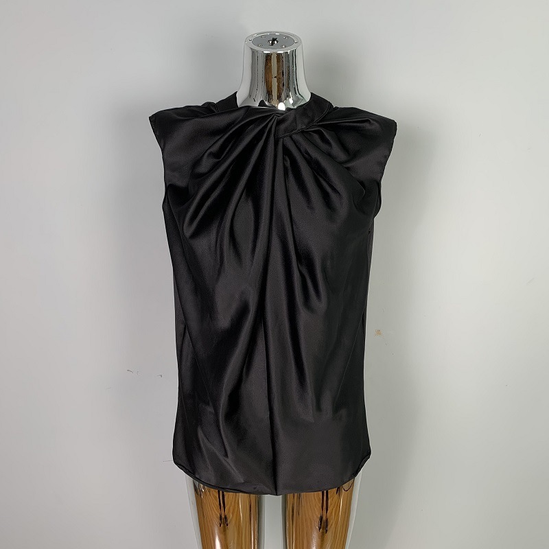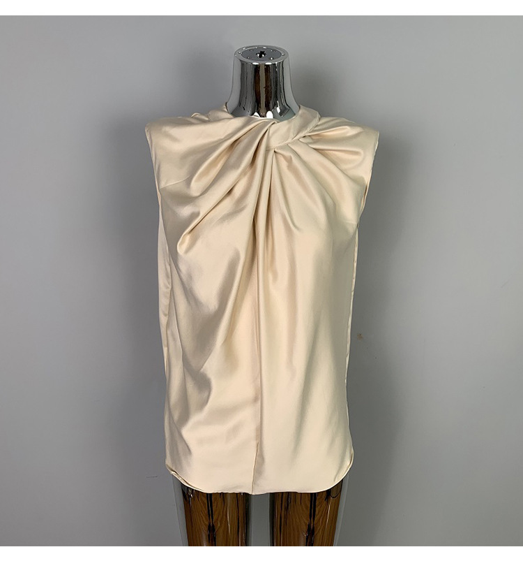 扭結皺褶 緞面無袖上衣(黑/白/香檳)