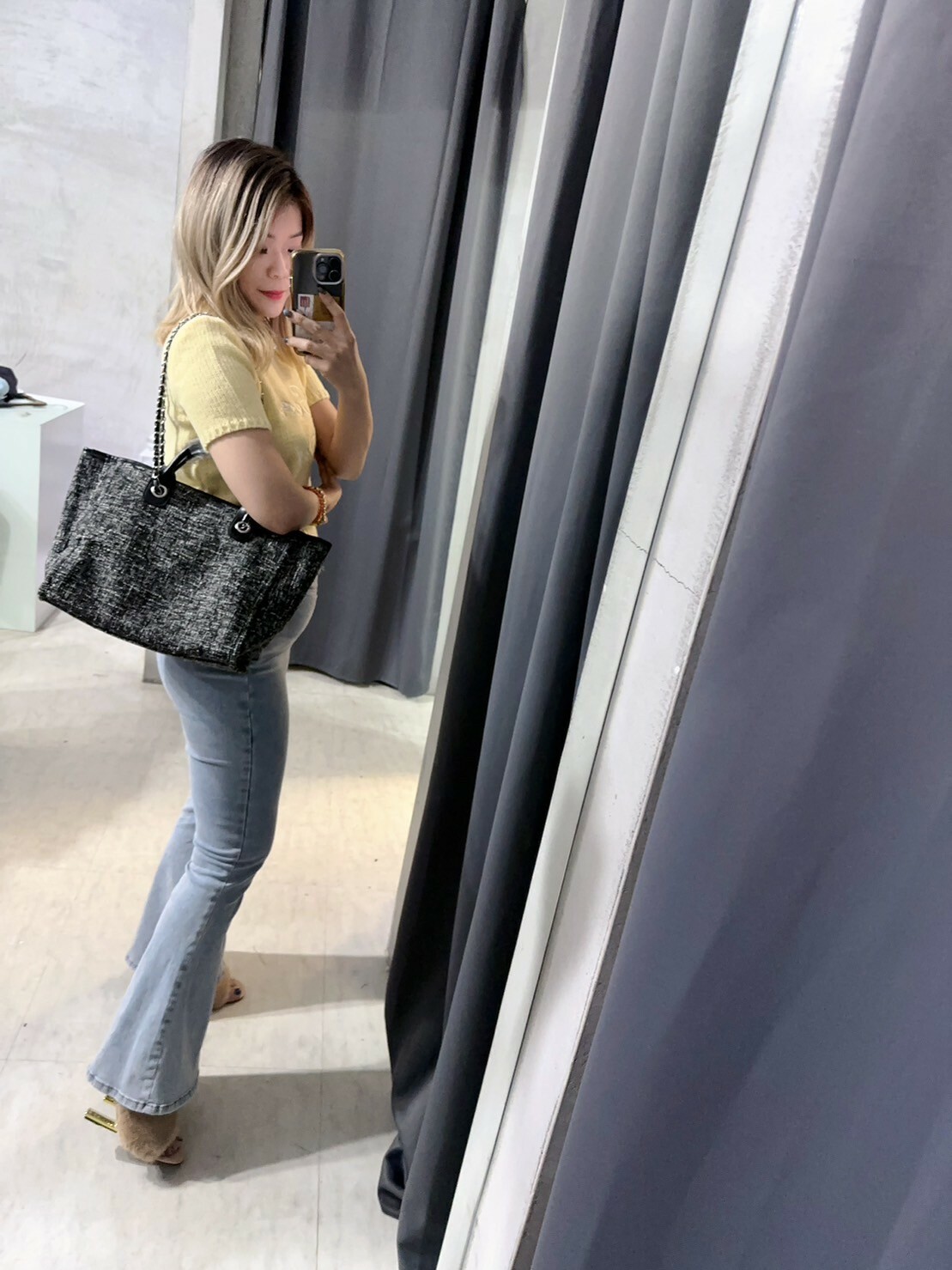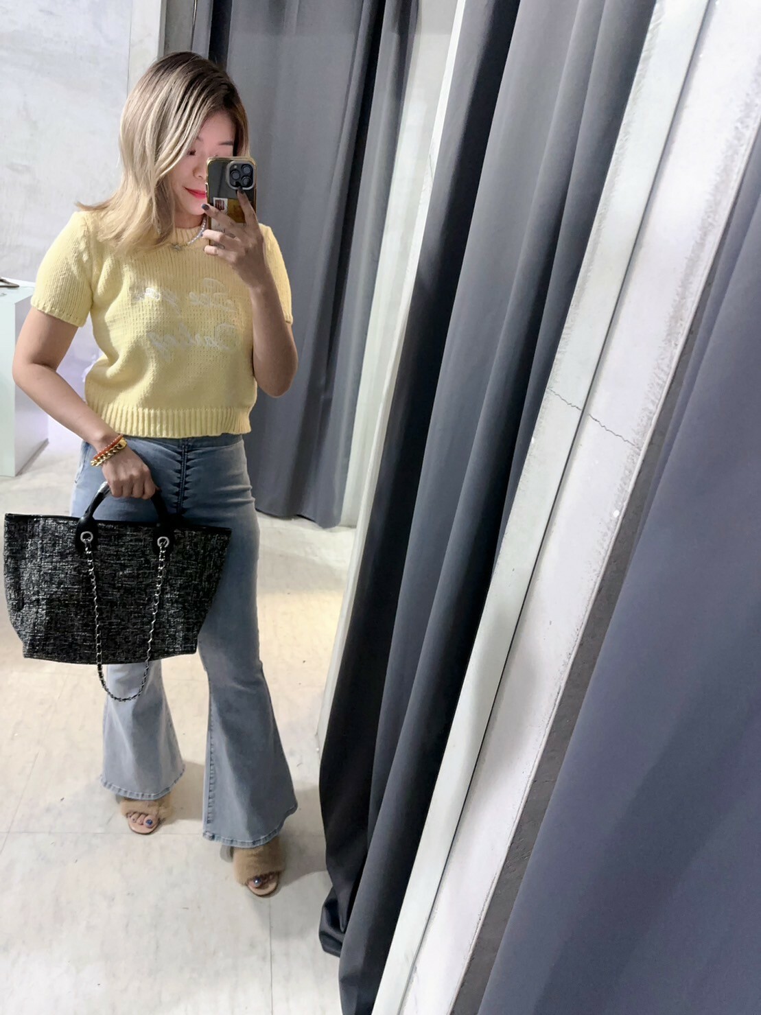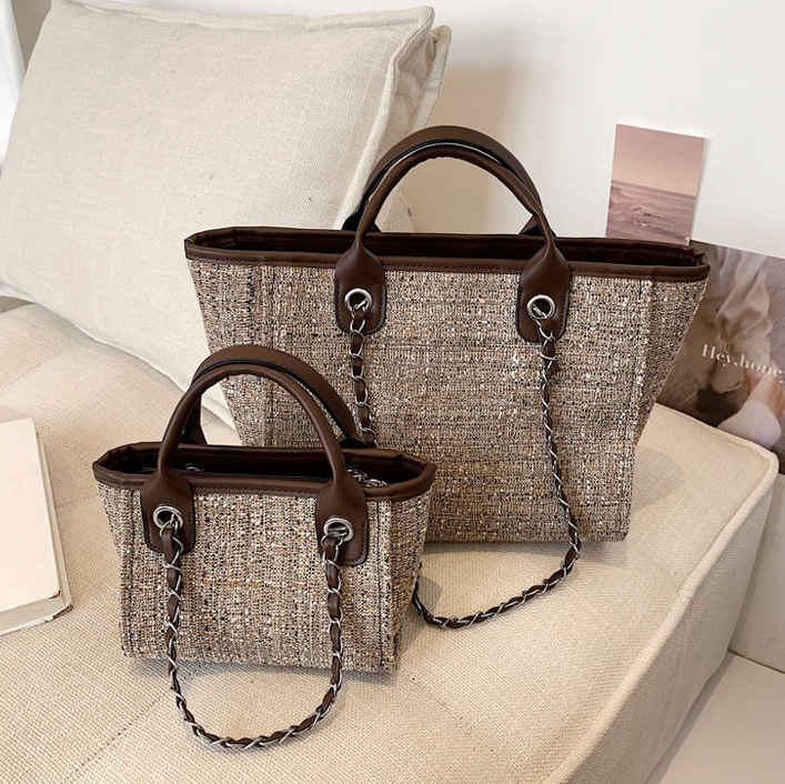 這款毛尼鍊條托特包極具時尚韓系風格,專為追求個性風格的都會女性而設計。