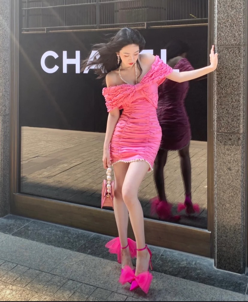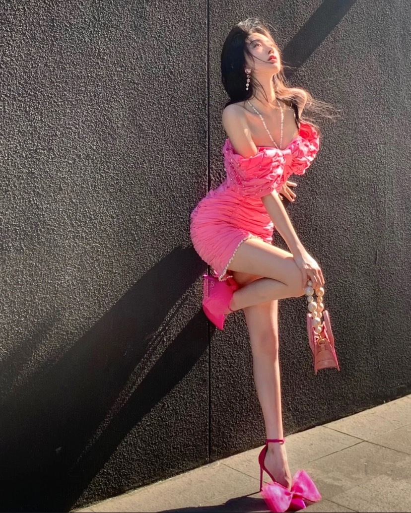 桃粉與黑色相襯,展現優雅時尚的撞色美學