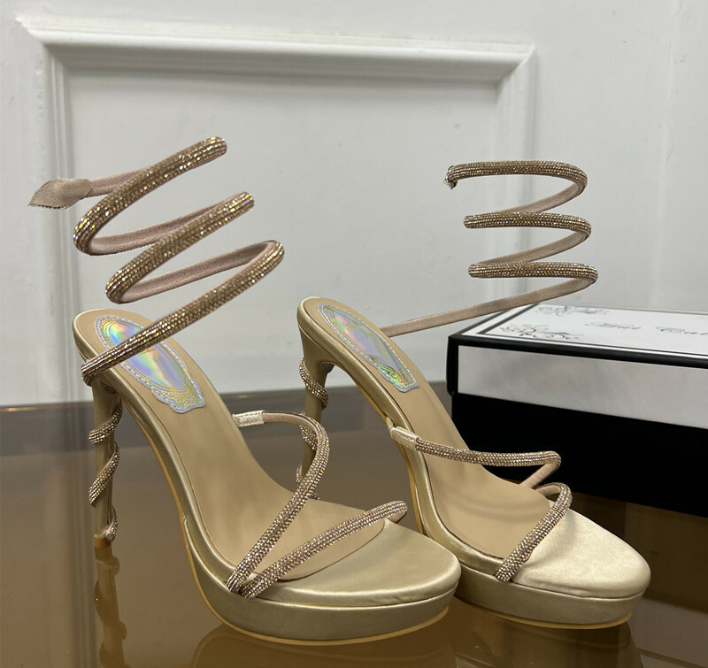 厚底水鑽纏繞 高跟涼鞋(35-40)(金/銀)