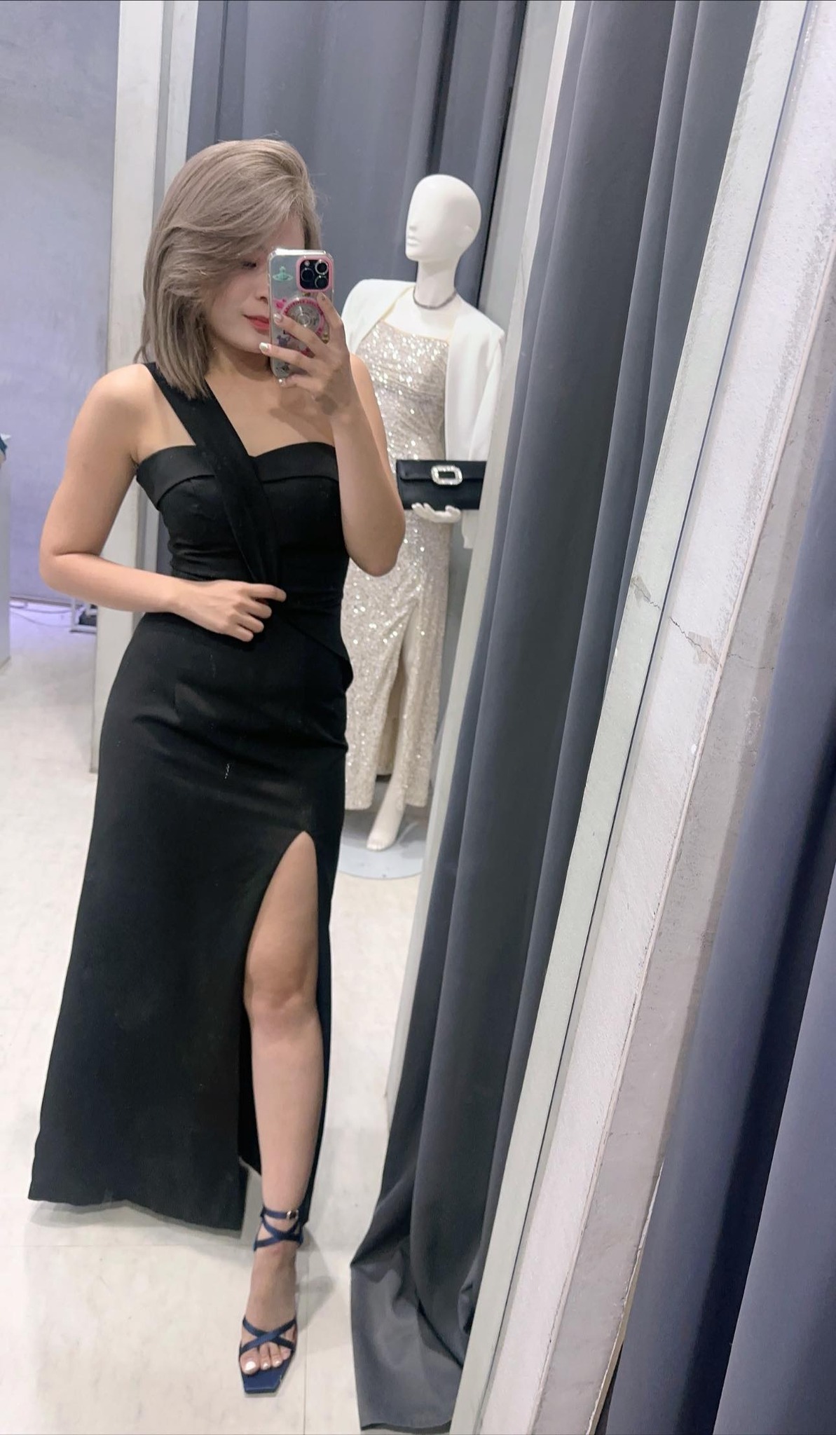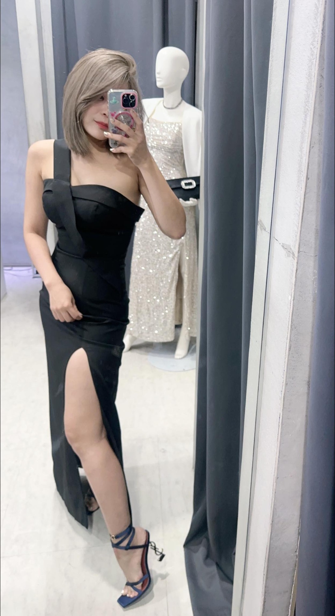 這件時尚優雅的單肩長洋裝是特殊的非對稱設計,散發出獨特的魅力。裙身剪裁修飾身材,高衩設計展現動人曲線。選用高質感的素色布料,簡約俐落卻不失韻味。無論是正式場合或是日常穿搭,這件單肩洋裝都能為妳增添優雅與自信。