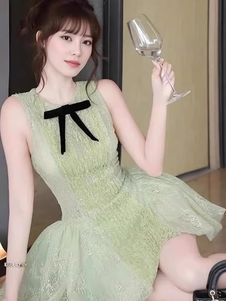 蕾絲堆疊 小公主收腰洋裝(淺綠/米白)