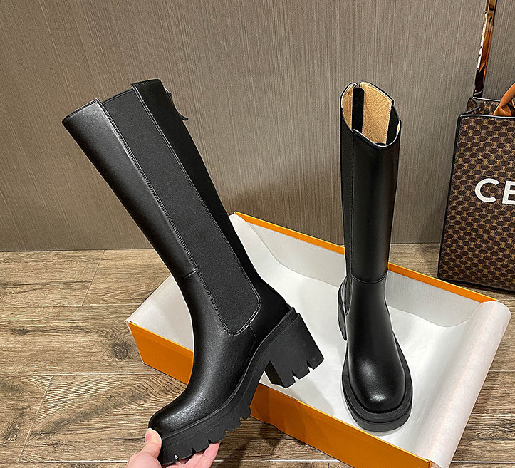 肉肉腿必收! 粗高跟 鬆緊長靴(34-40)