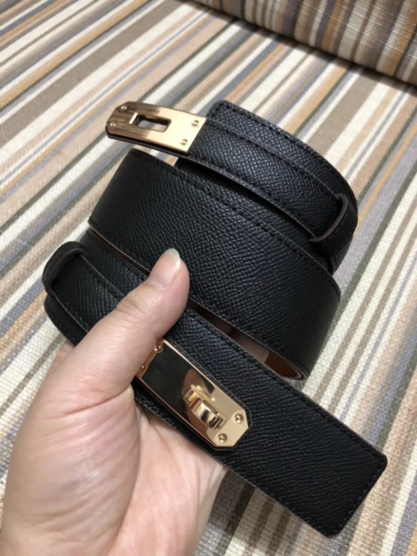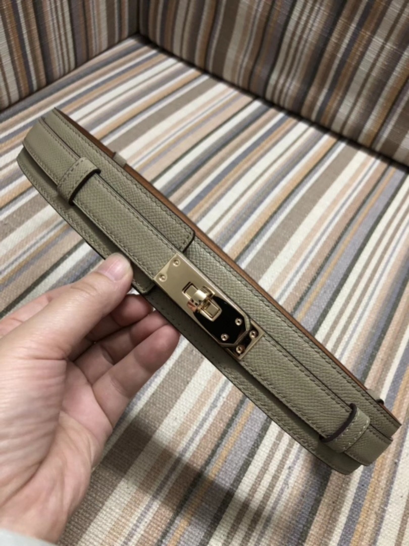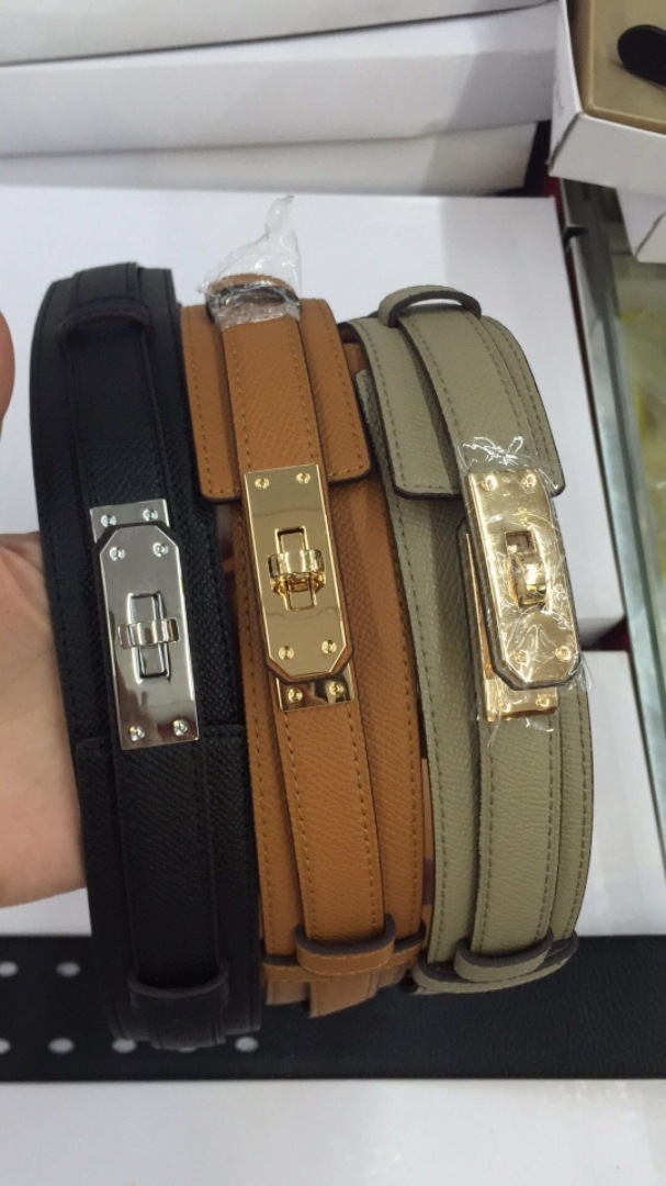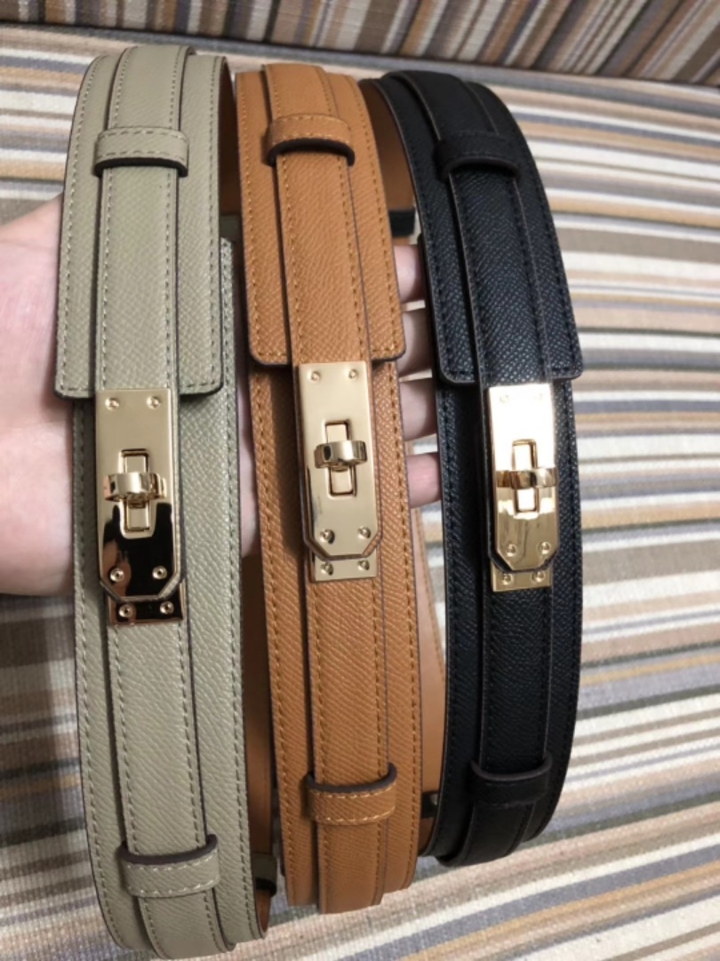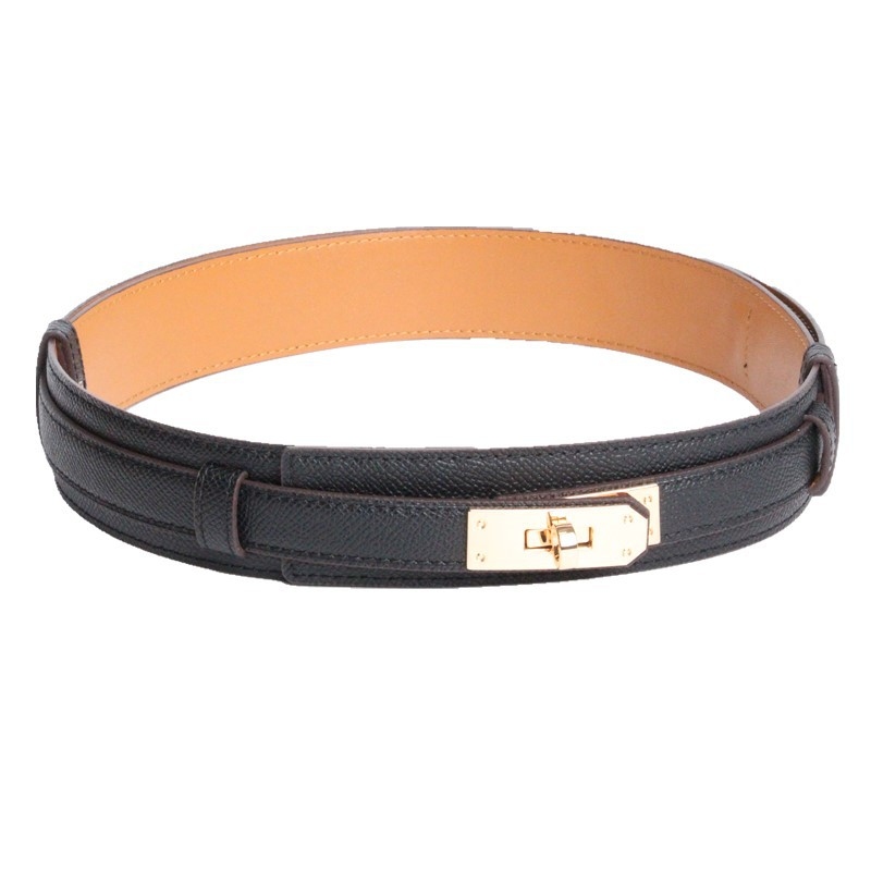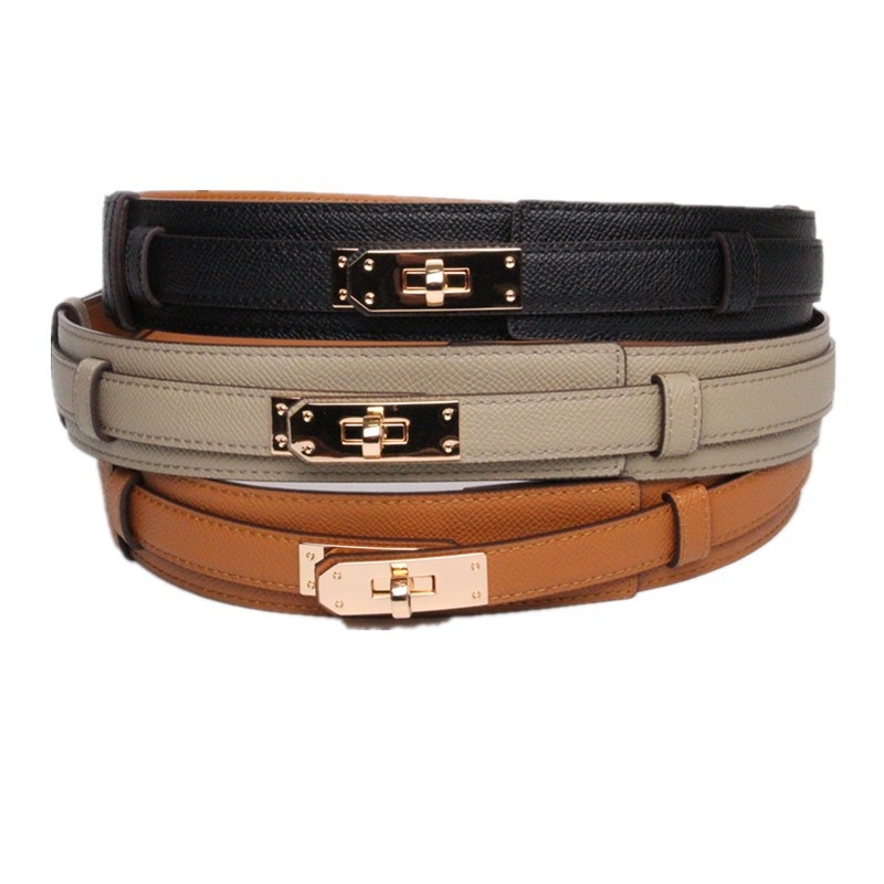 Kelly 鎖頭 牛皮雙層寬腰帶 (黑/灰/駝)