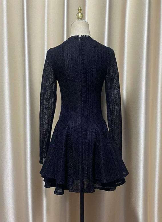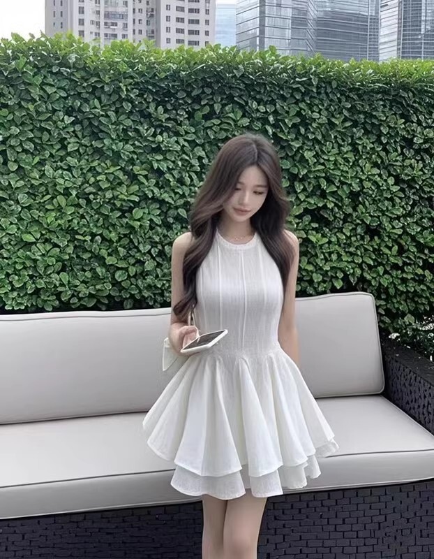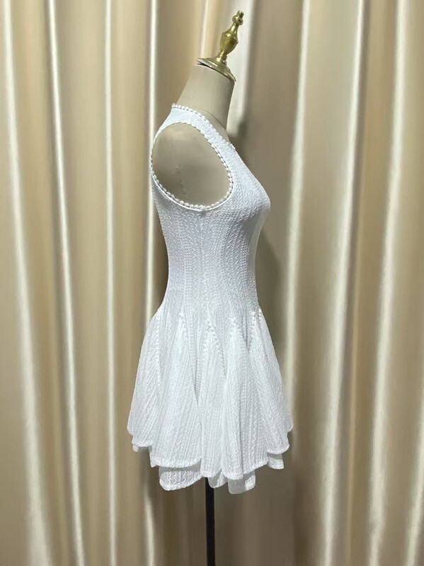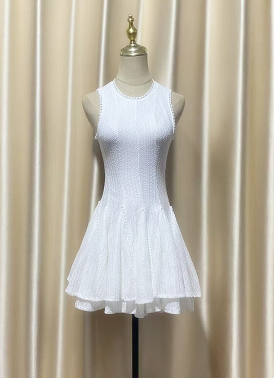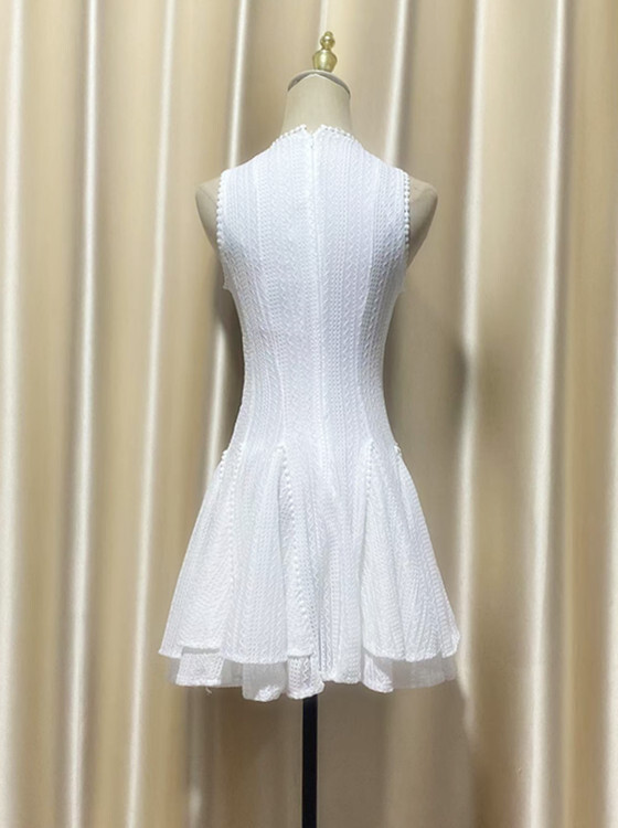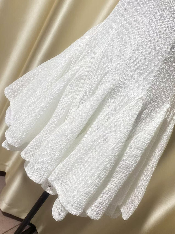 雙層裙襬 特殊面料小洋裝(白/黑)