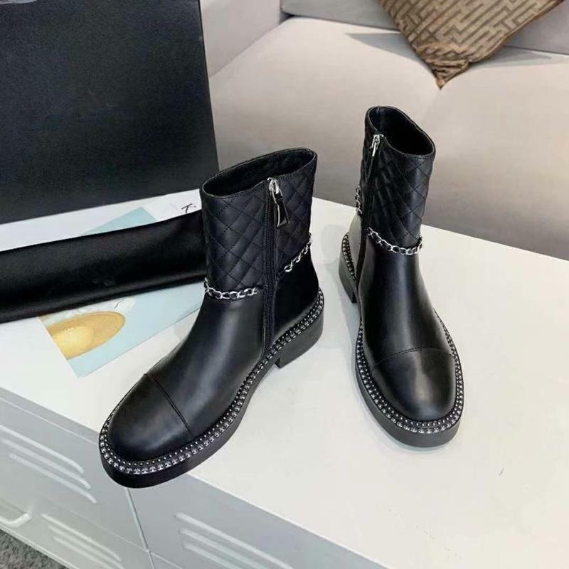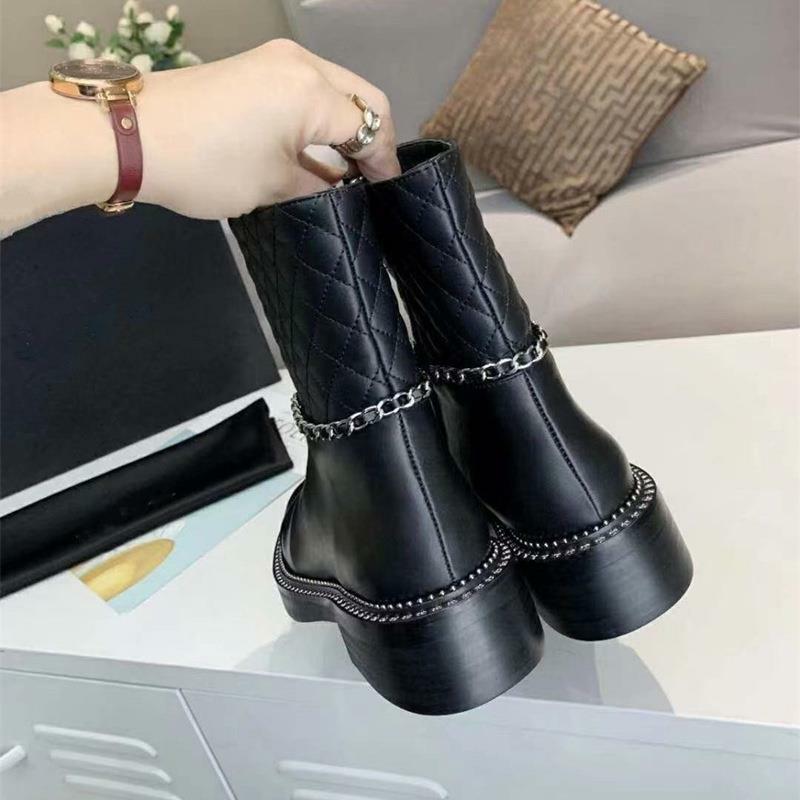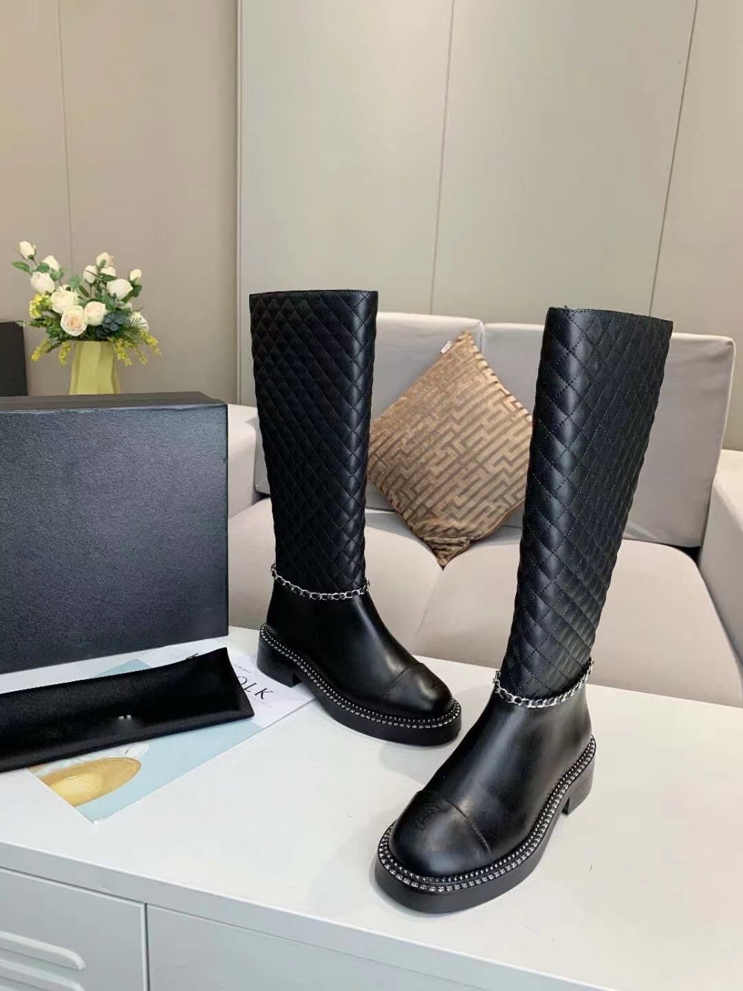 皮穿鏈小香風 小牛皮格紋靴(長靴/短靴)(35-40)