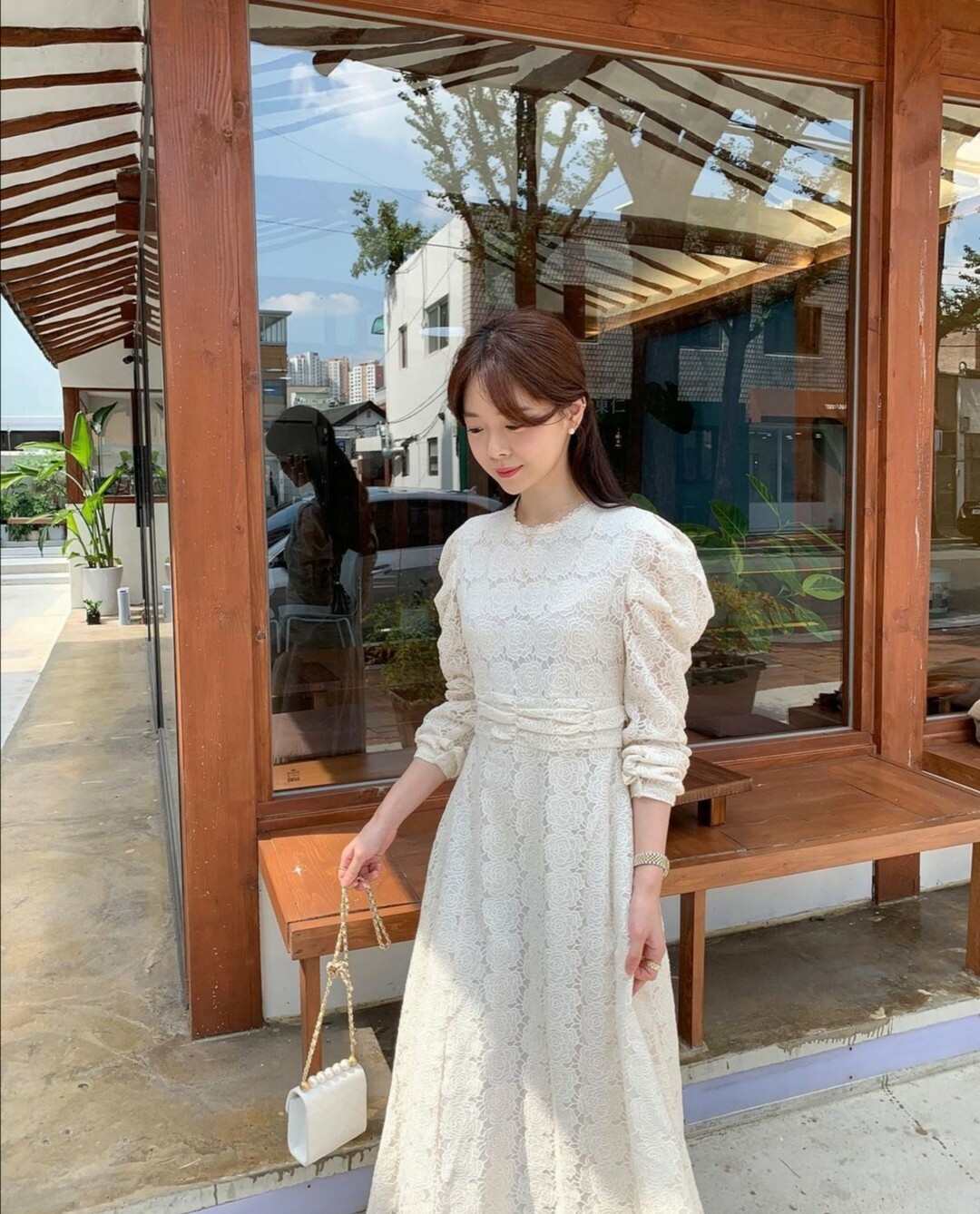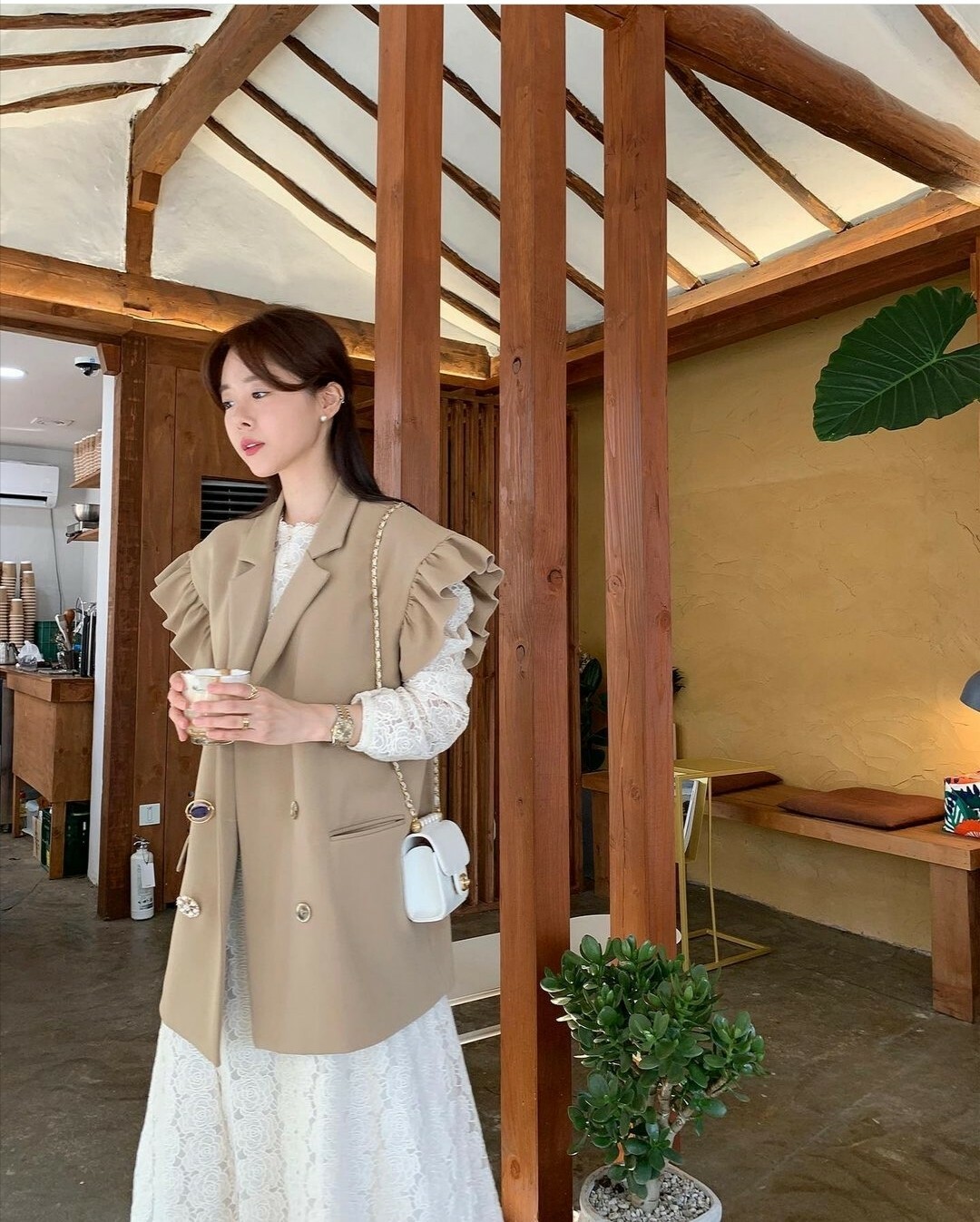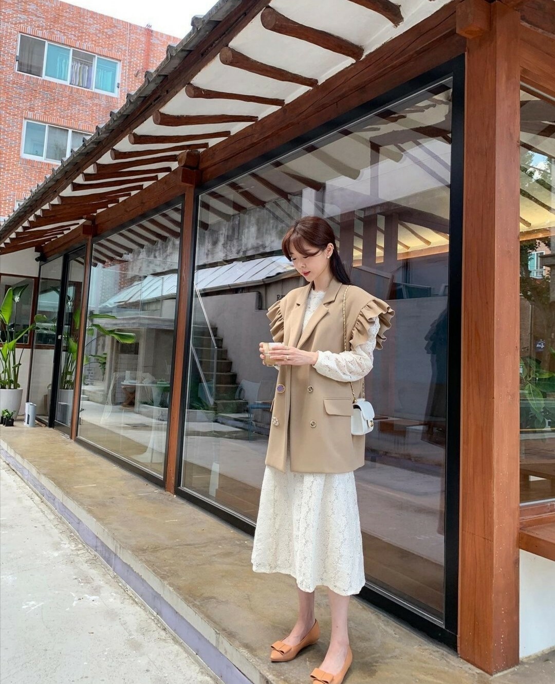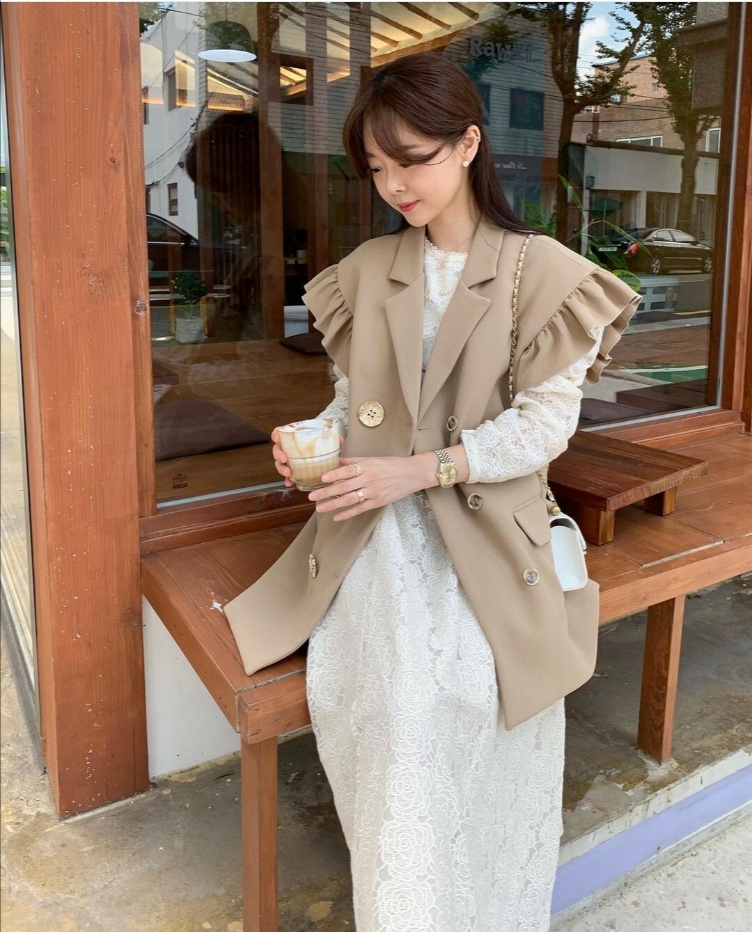 這件套裝搭配整體都呈現一種清新雅緻的氛圍。