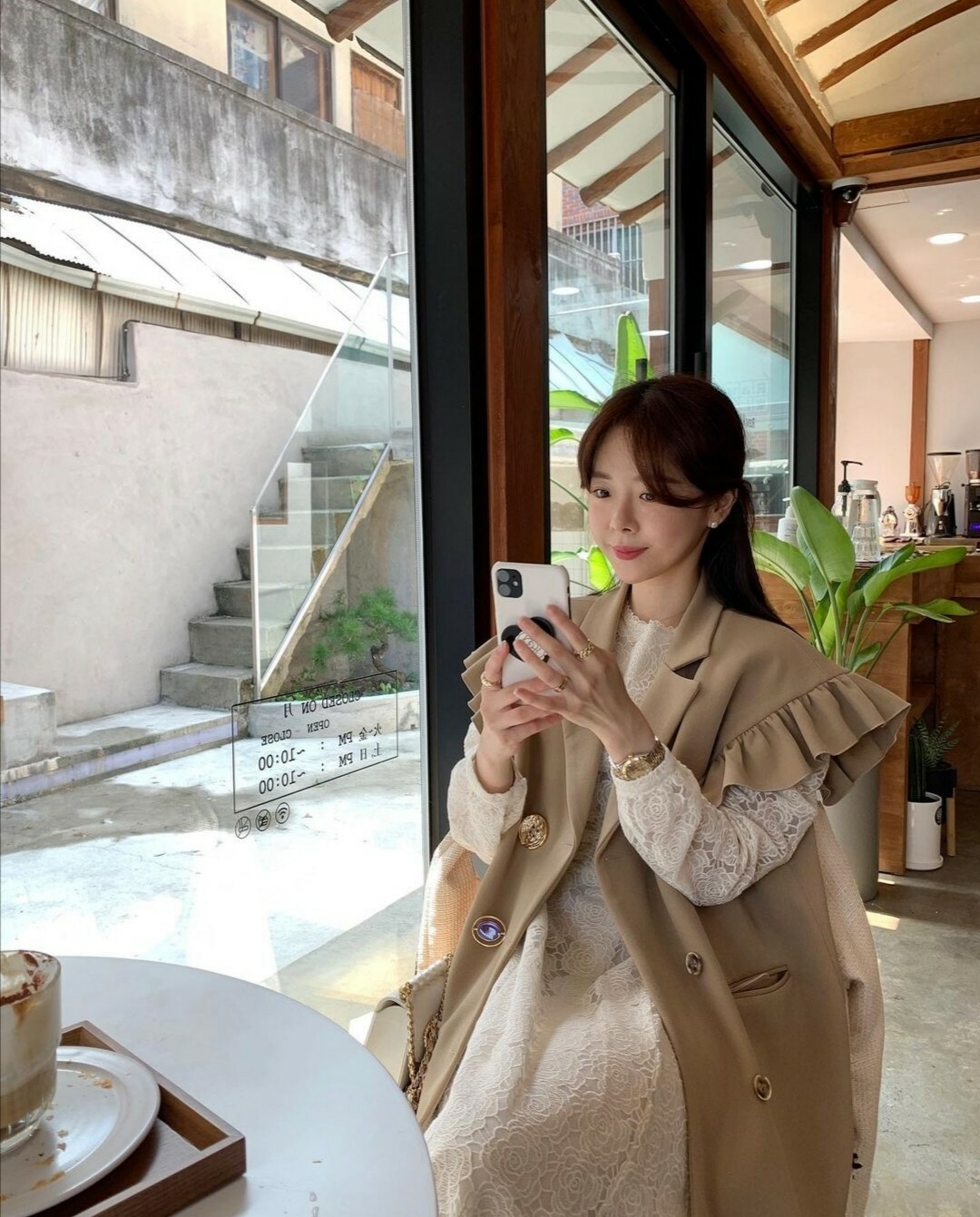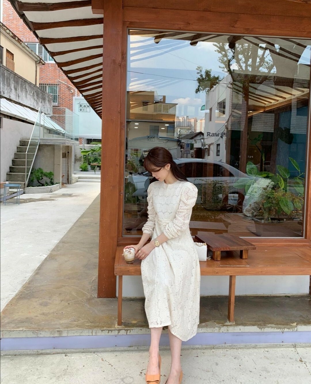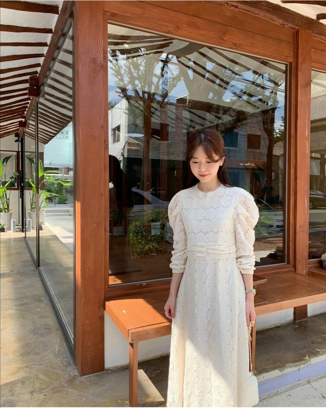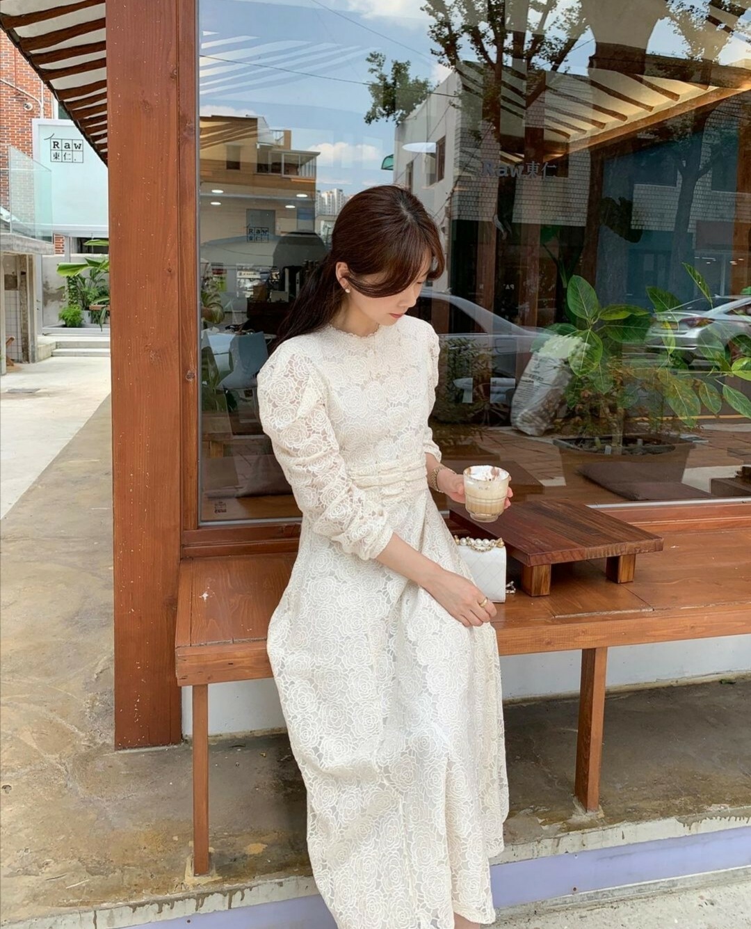 這件套裝搭配整體都呈現一種清新雅緻的氛圍。