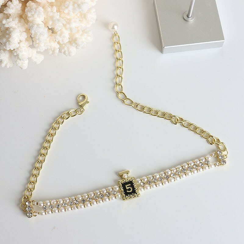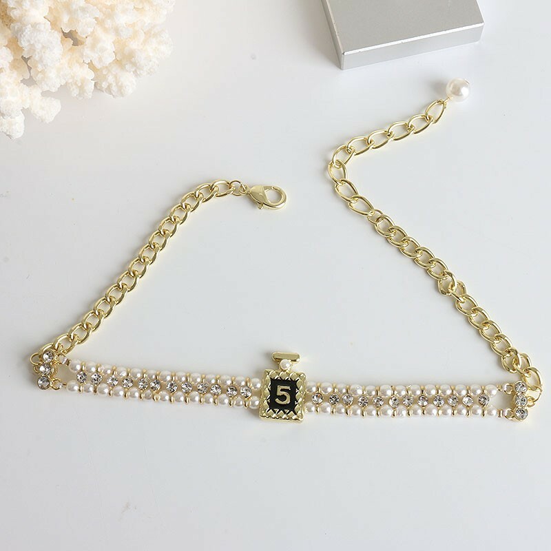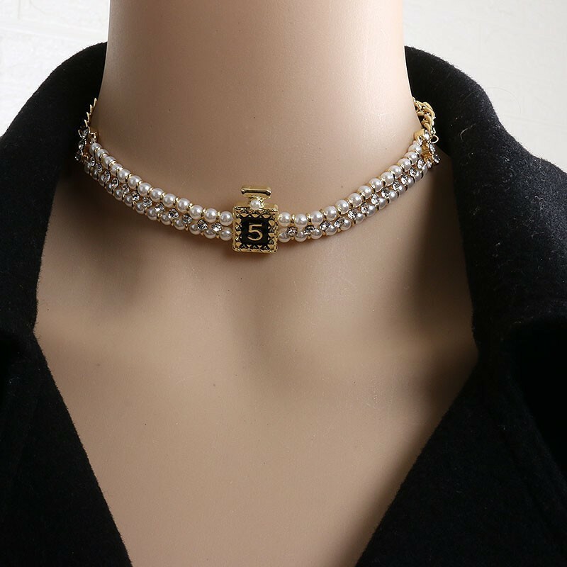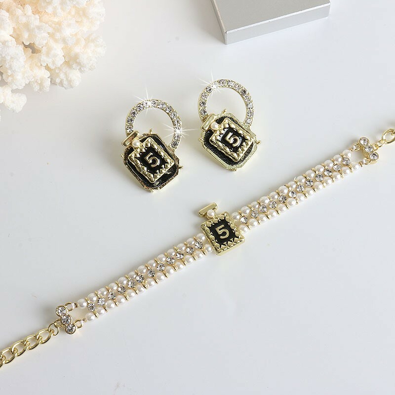 5號香水 珍珠水鑽頸鍊/耳環