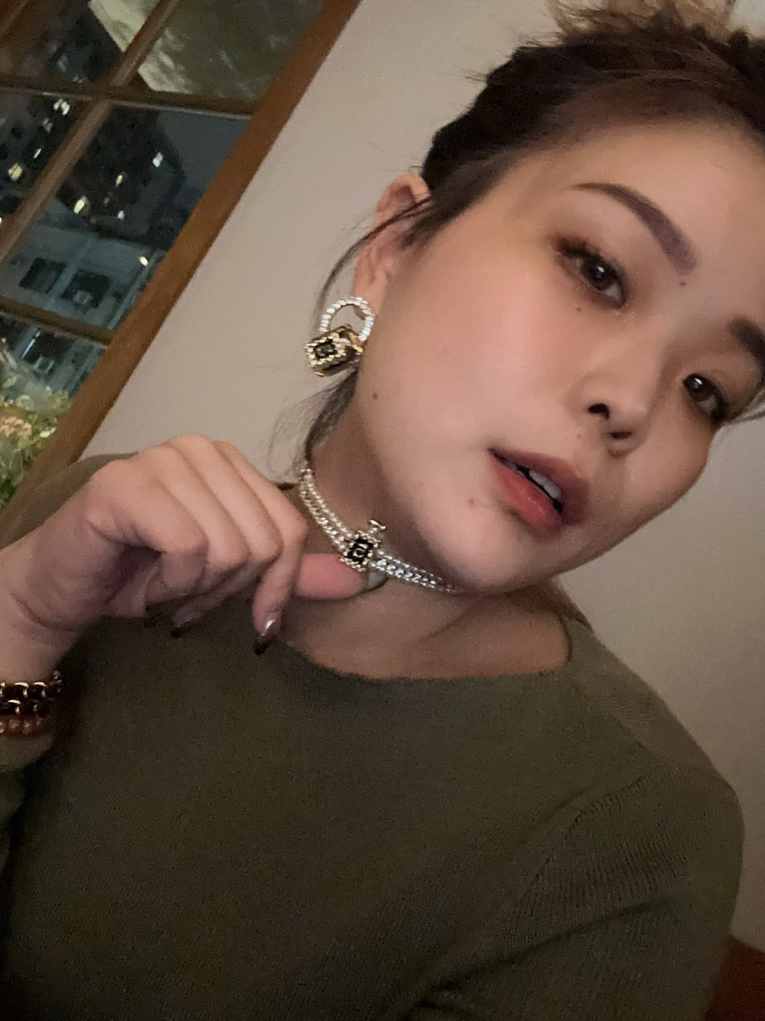 長長的鎖骨鍊設計,垂墜於頸項處恰到好處地凸顯優雅動人的曲線